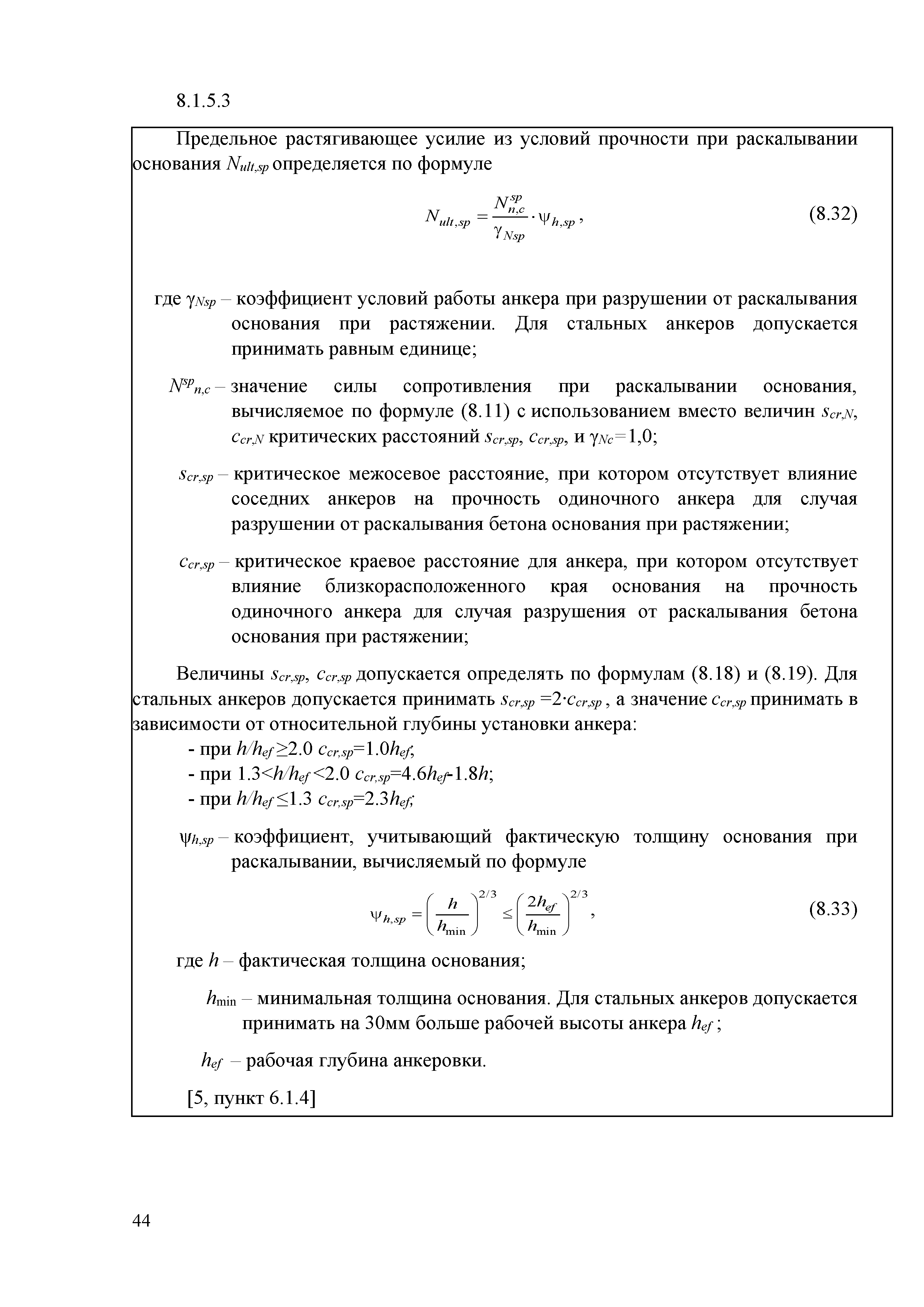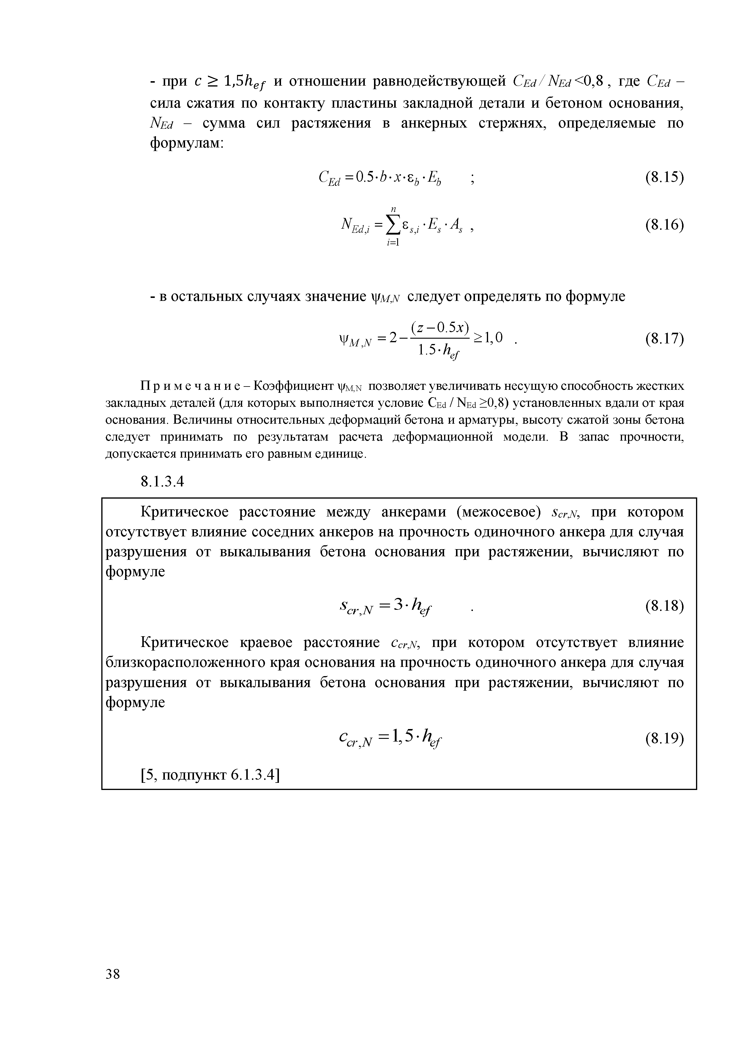 | Область применения: | Пособие содержит основные положения по проектированию сварных закладных деталей для конструкций из тяжелого бетона, требования к материалам, методам расчета, конструктивные требования, а также примеры расчета. Применение положений и расчетных методик настоящего пособия позволит выполнять эффективное проектирование закладных деталей. Методическое пособие распространяются на проектирование сварных закладных деталей для конструкций из тяжелого бетона классов по прочности В15 — В60 с нормальными и/или наклонными анкерами. Допускается применение пособия для проектирования в бетоне класса по прочности выше В60, при этом расчетные характеристики бетона следует принимать как для класса В60. Методическое пособие устанавливает требования к расчету закладных деталей с одиночным анкером и с группой анкеров, воспринимающих действие статических нагрузок растяжения и сдвига, в том числе при совместном их действии. Рекомендации настоящего методического пособия распространяются на проектирование зданий и сооружений нормального (КС-2) и пониженного (КС-З) уровней ответственности, согласно ГОСТ 27751, могут применяться также для сооружений уровня КС- 1 при соответствующем обосновании, учитывающем повышенные требования к надежности и долговечности конструкций и их соединений. |