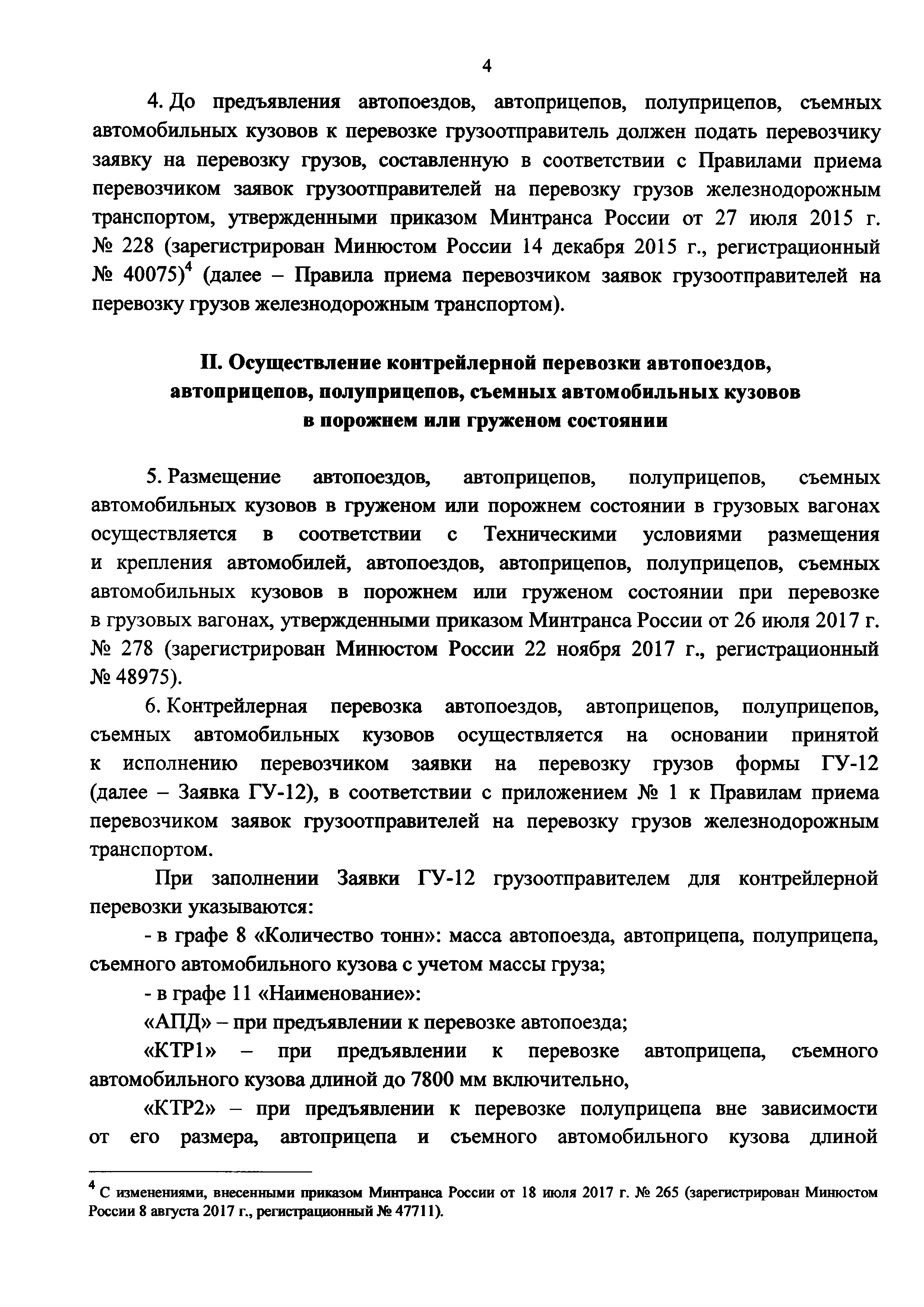 | Область применения: | Правила определяют порядок и условия перевозки железнодорожным транспортом автопоездов, автоприцепов, полуприцепов, съемных автомобильных кузовов в порожнем или груженом состоянии в грузовых вагонах |