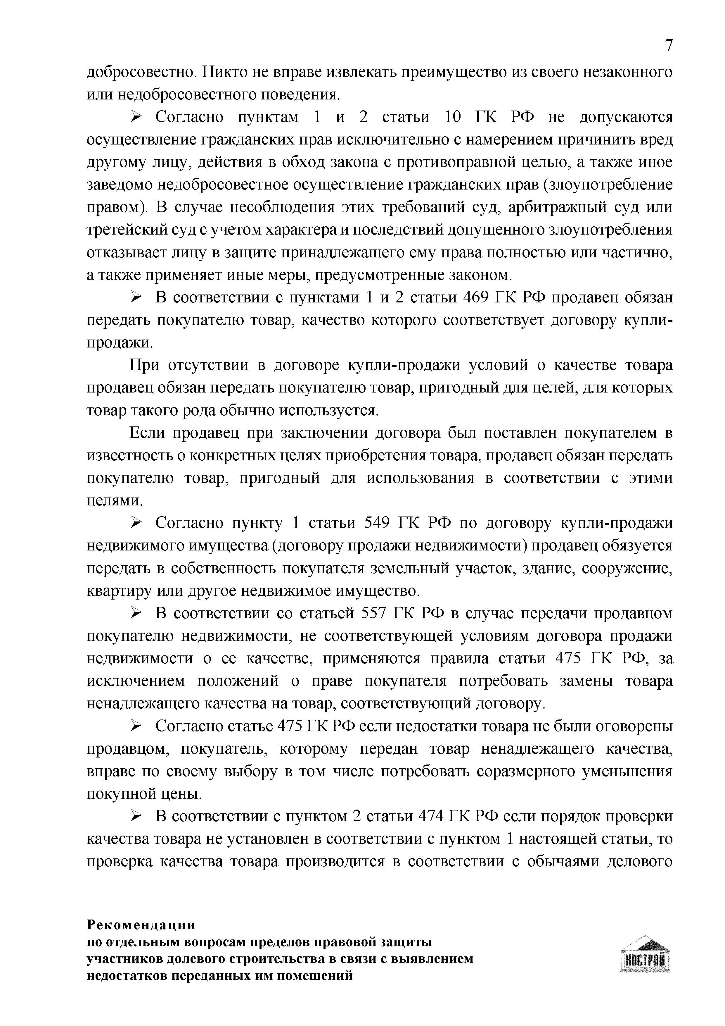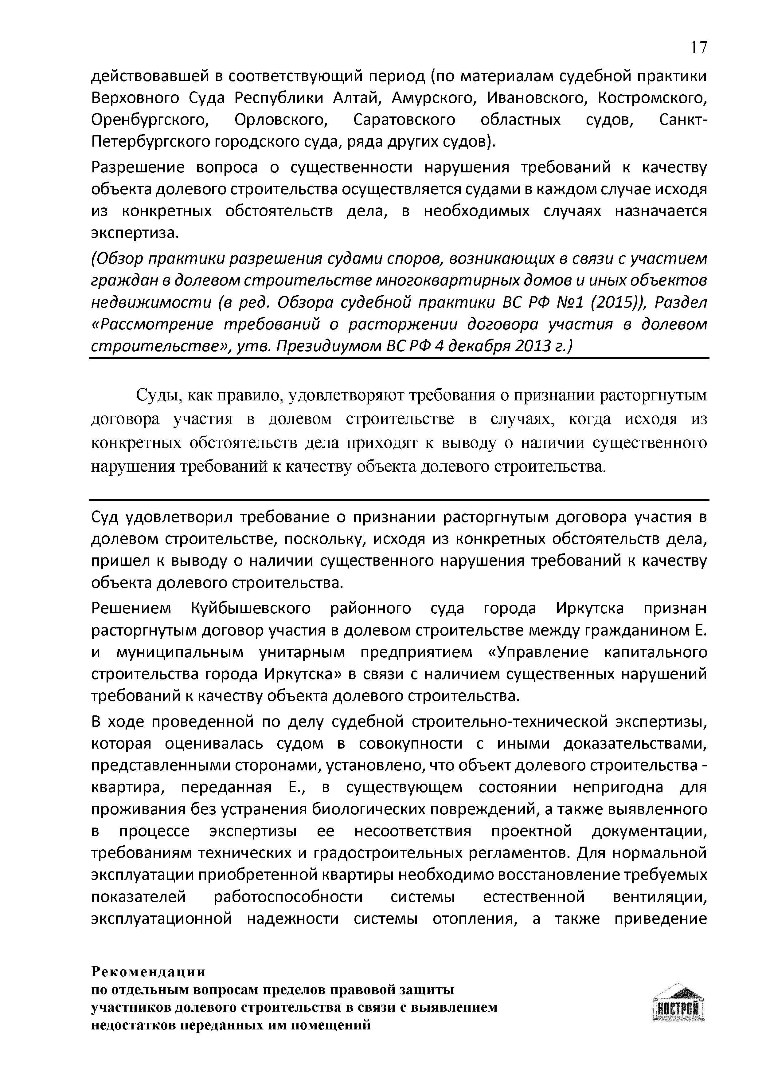 | Название рус.: | Рекомендации по отдельным вопросам пределов правовой защиты участников долевого строительства в связи с выявлением недостатков переданных им помещений |