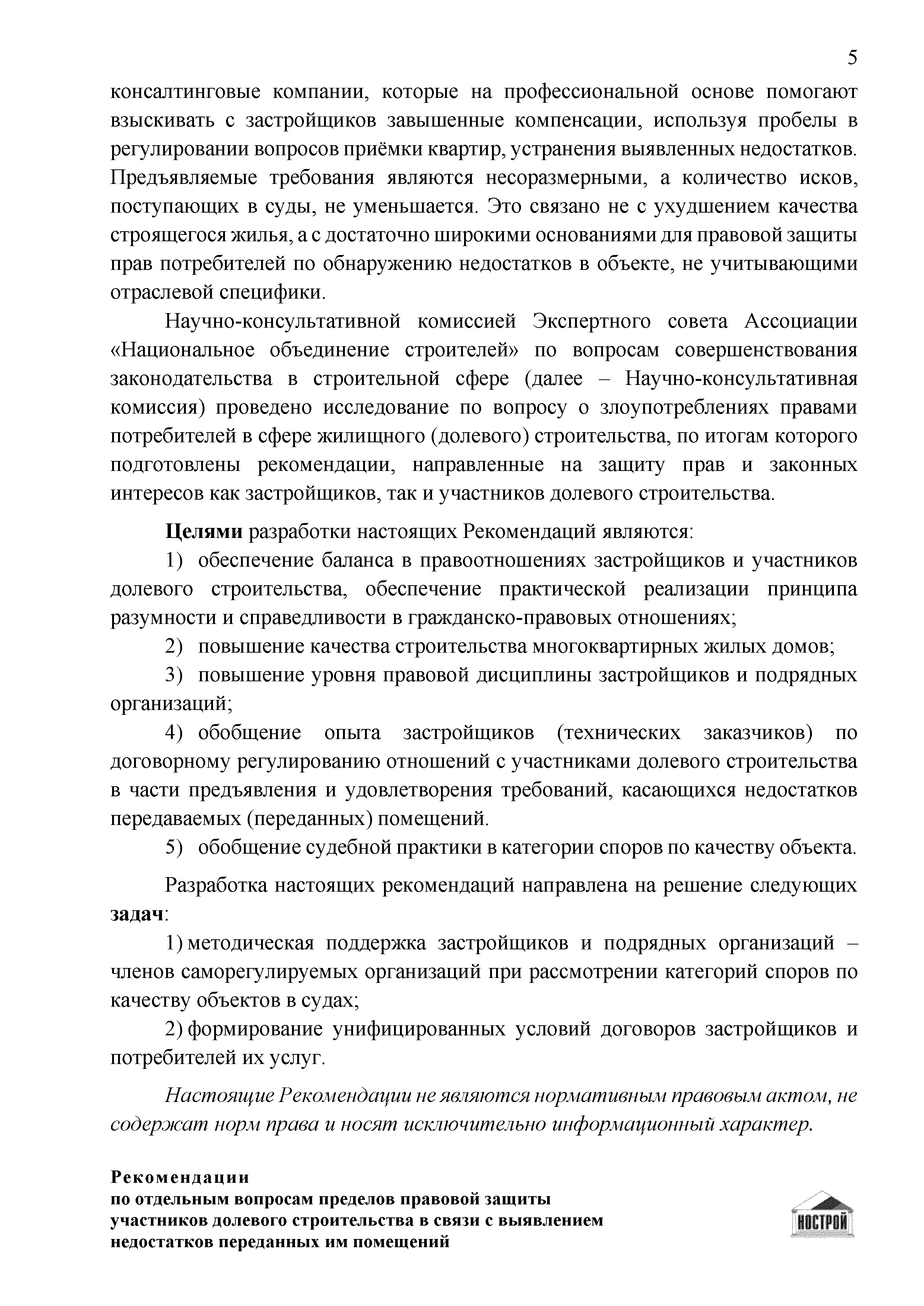 | Область применения: | Целями разработки Рекомендаций являются: обеспечение баланса в правоотношениях застройщиков и участников долевого строительства, обеспечение практической реализации принципа разумности и справедливости в гражданско-правовых отношениях, повышение качества строительства многоквартирных жилых домов; повышение уровня правовой дисциплины застройщиков и подрядных организаций; обобщение опыта застройщиков (технических заказчиков) по договорному регулированию отношений с участниками долевого строительства в части предъявления и удовлетворения требований, касающихся недостатков передаваемых (переданных) помещений; обобщение судебной практики в категории споров по качеству объекта. |