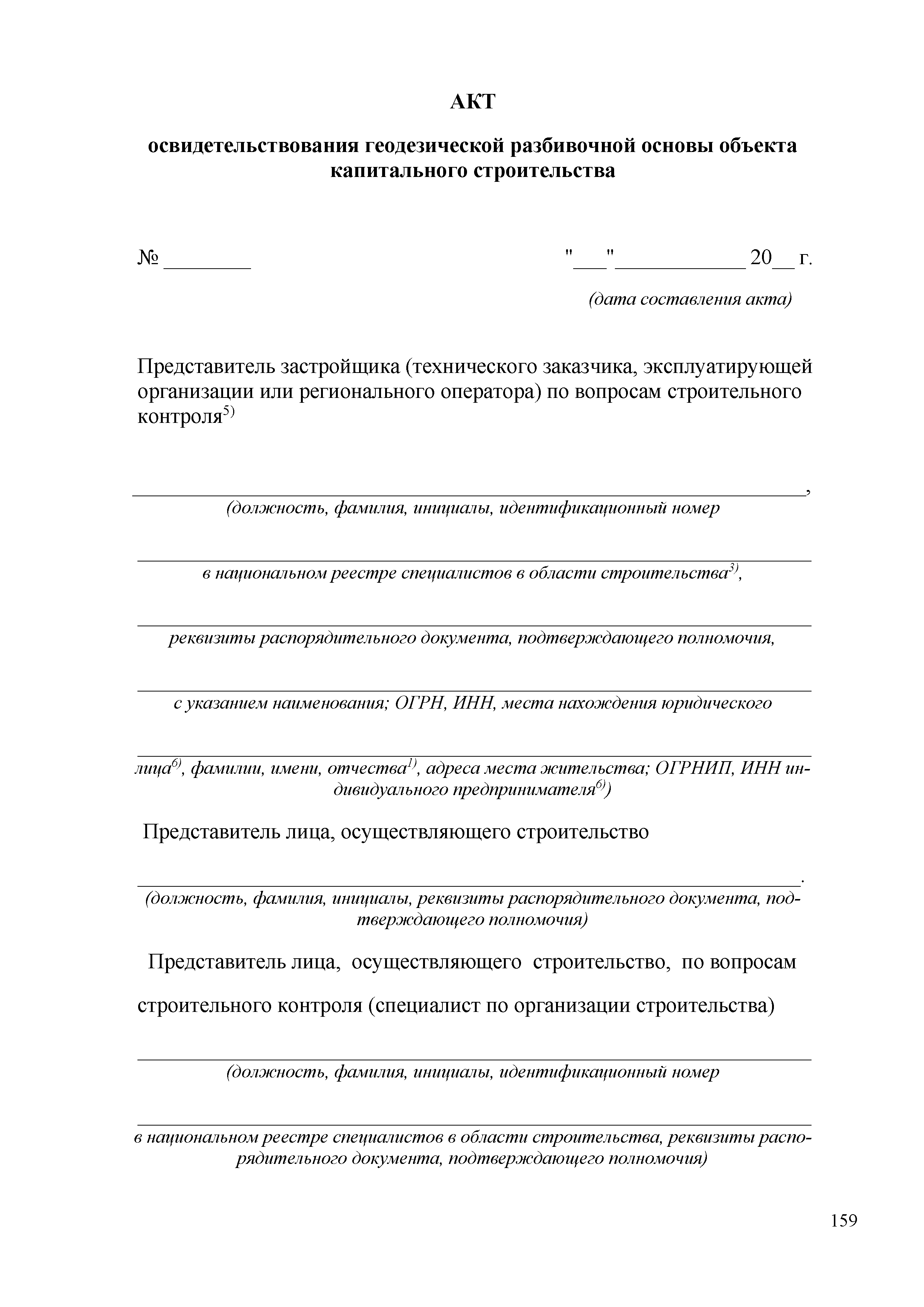 Скачать Акт освидетельствования геодезической разбивочной основы объекта капитального строительства (2020)Дата актуализации: 01.01.2021