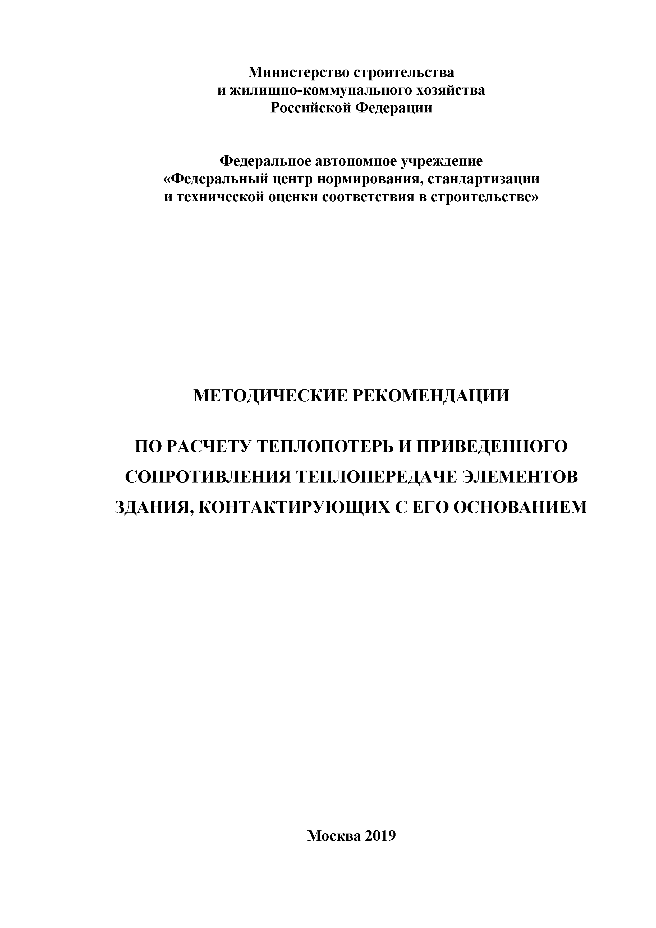 | Название рус.: | Методические рекомендации по расчету теплопотерь и приведенного сопротивления теплопередаче элементов здания, контактирующих с его основанием |
