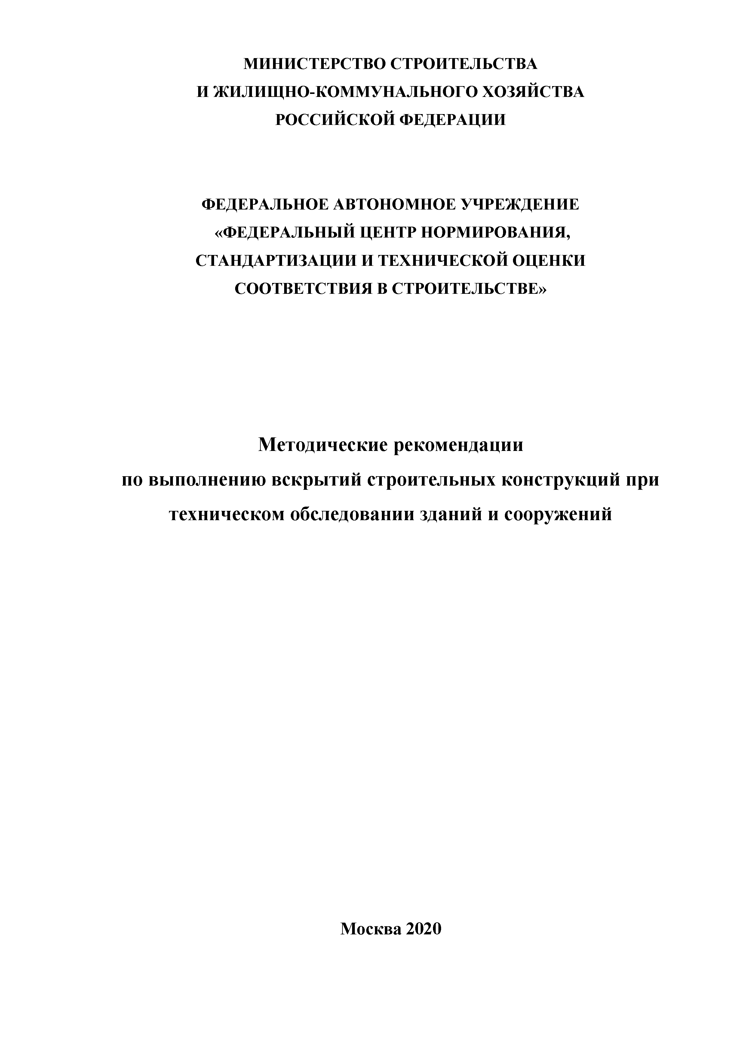 | Название рус.: | Методические рекомендации по выполнению вскрытий строительных конструкций при техническом обследовании зданий и сооружений |