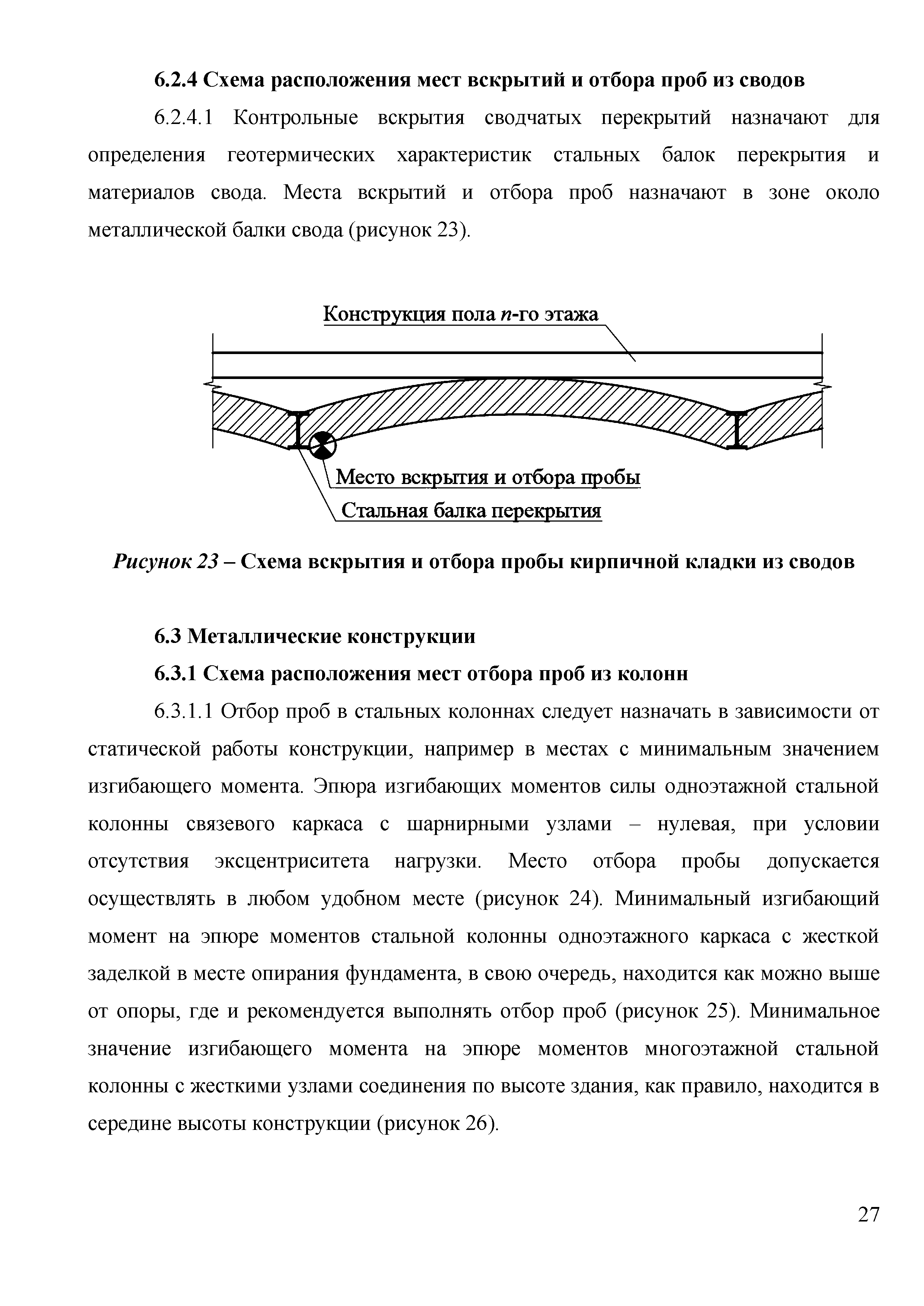 | Оглавление: | 1 Область применения 2 Нормативные ссылки 3 Термины и определения 4 Общие положения 5 Требования к расположению мест вскрытий и отбора образцов материалов конструкций 5.1 Железобетонные конструкции 5.2 Каменные конструкции 5.3 Металлические конструкции 5.4 Деревянные конструкции 6 Схемы расположений мест вскрытий и отбора образцов материалов наиболее распространенных конструкций 6.1 Железобетонные конструкции 6.2 Каменные конструкции 6.3 Металлические конструкции 6.4 Деревянные конструкции 7 Рекомендации по выполнению вскрытий и отбору образов материалов 7.1 Железобетонные конструкции 7.2 Каменные конструкции 7.3 Металлические конструкции 7.4 Деревянные конструкции 8 Правила безопасности при выполнении вскрытий и отборе образцов Библиография |
