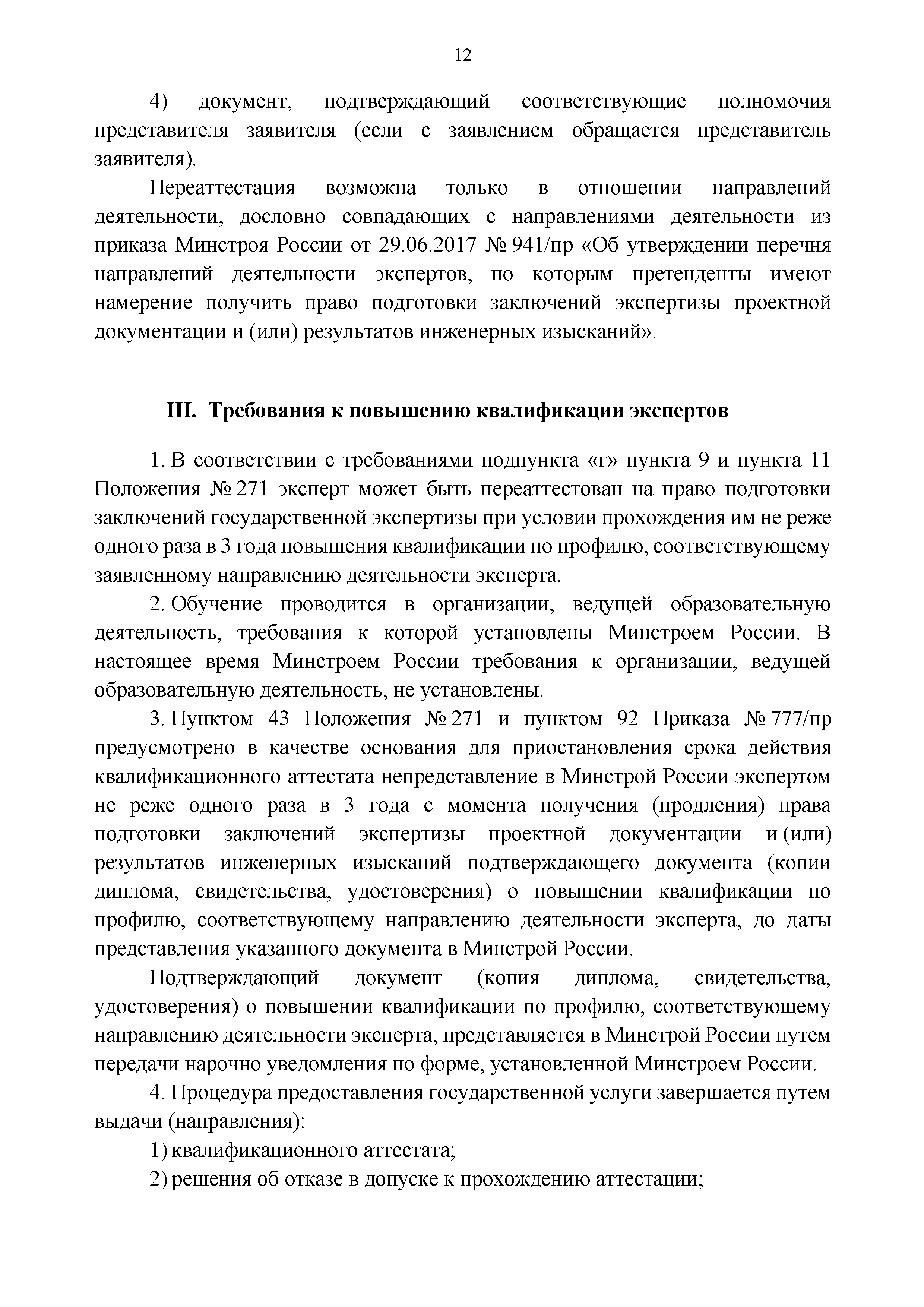 I Правовое регулирование II Требования к государственной услуге по аттестации и переаттестации III Требования к повышению квалификации экспертов Приложение. Форма справки с исчерпывающим перечнем должностных обязанностей