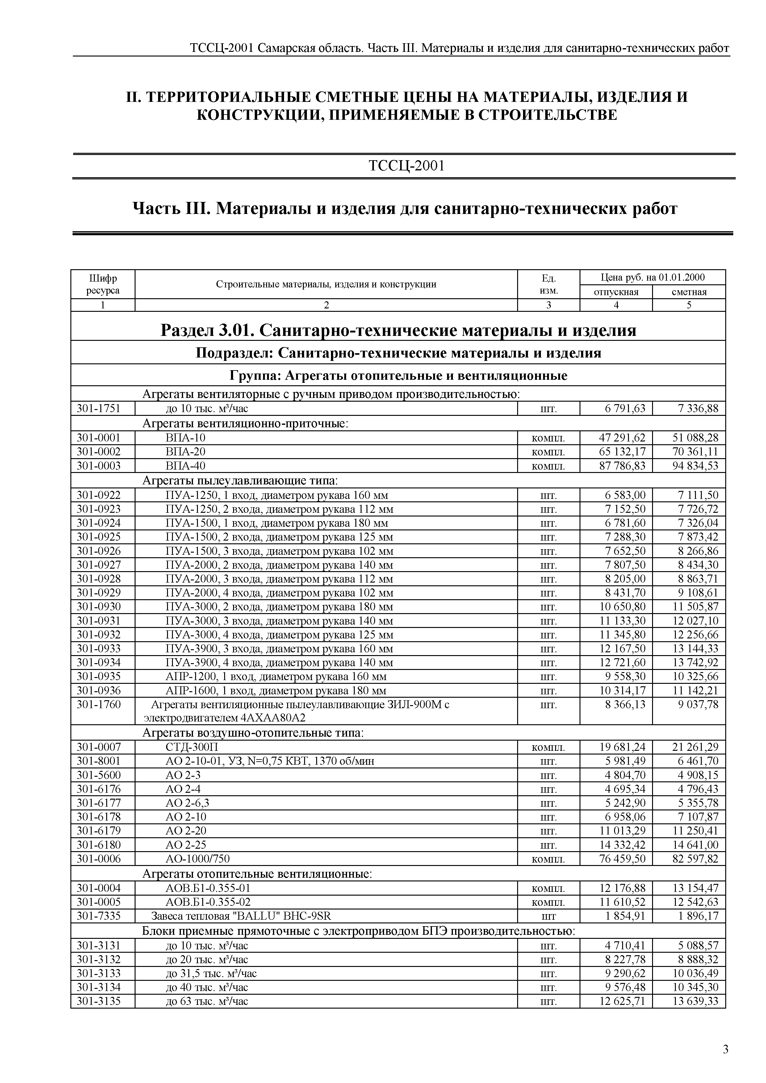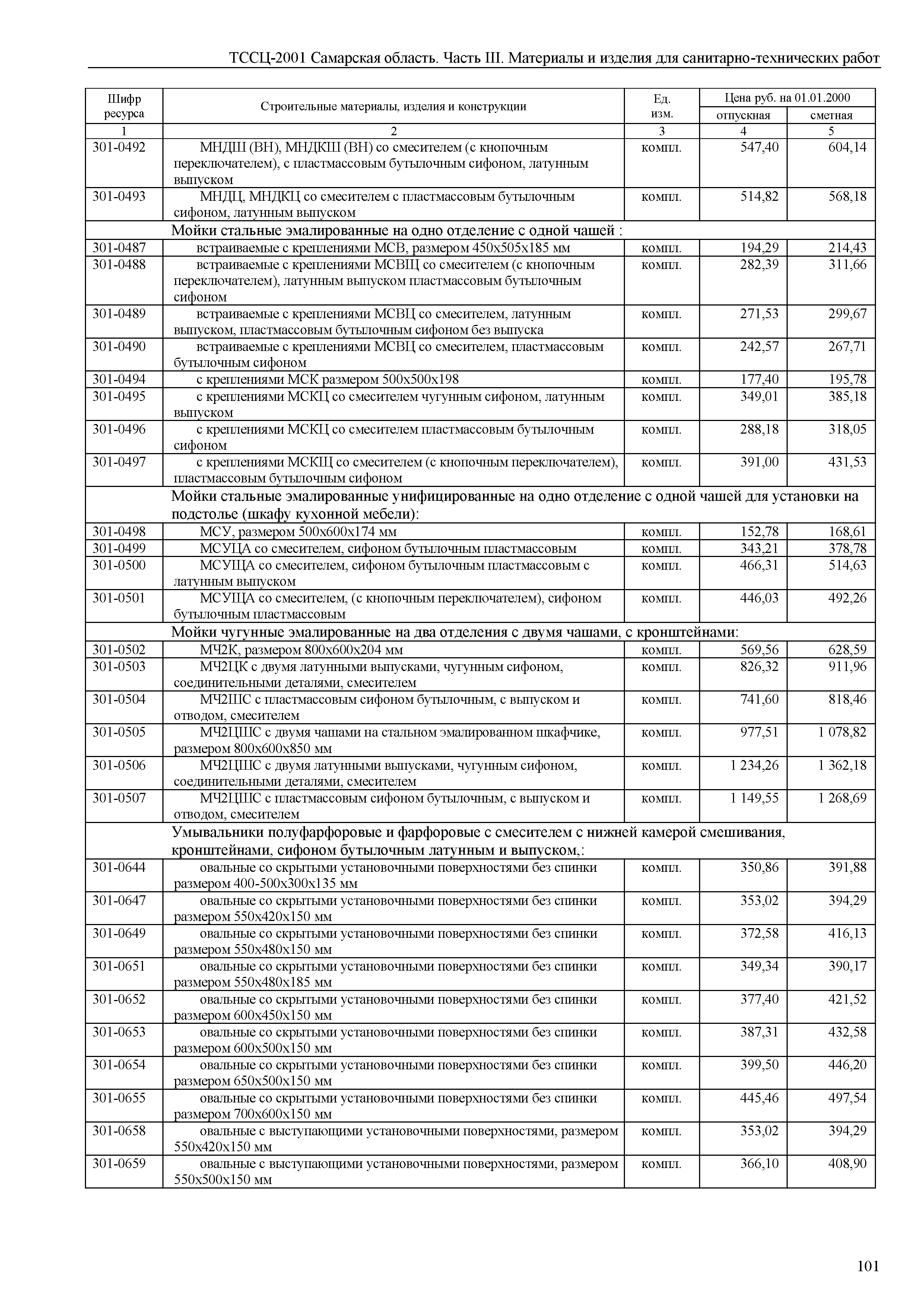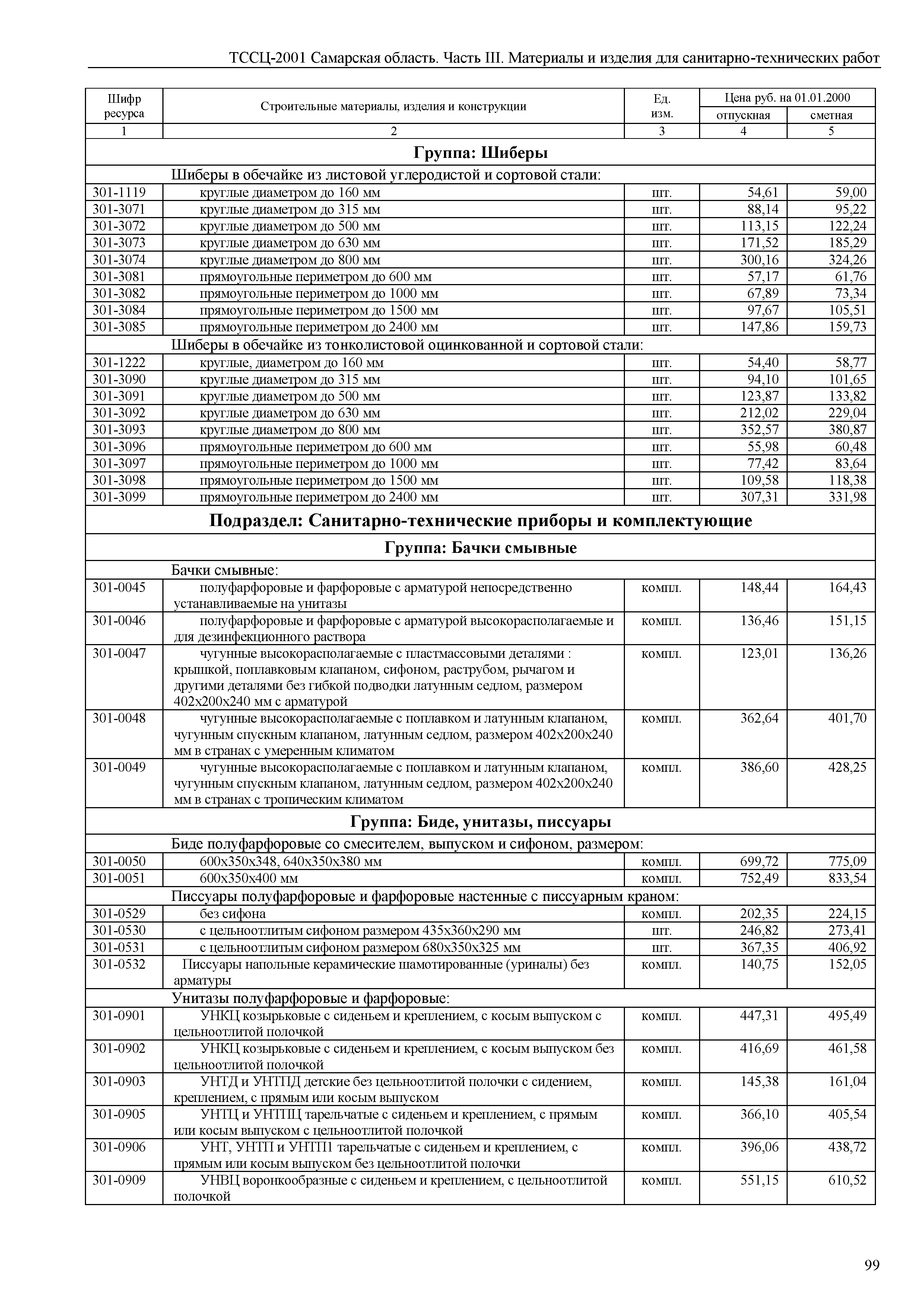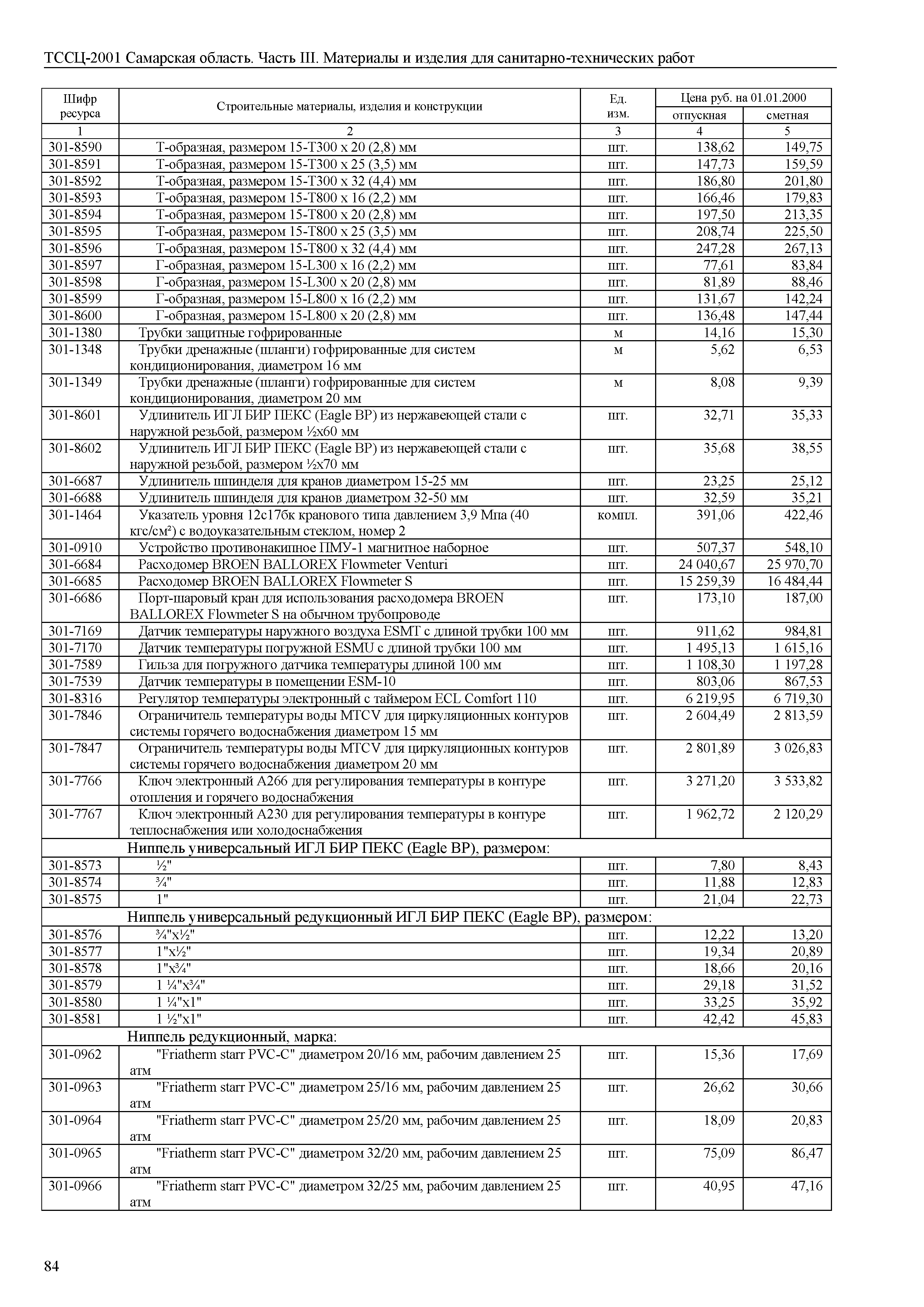Скачать ТССЦ Самарская область 81-01-2001 Часть III. Материалы и изделия для санитарно-технических работ. Территориальные сметные цены на материалы, изделия и конструкции, применяемые в строительствеДата актуализации: 01.01.2021