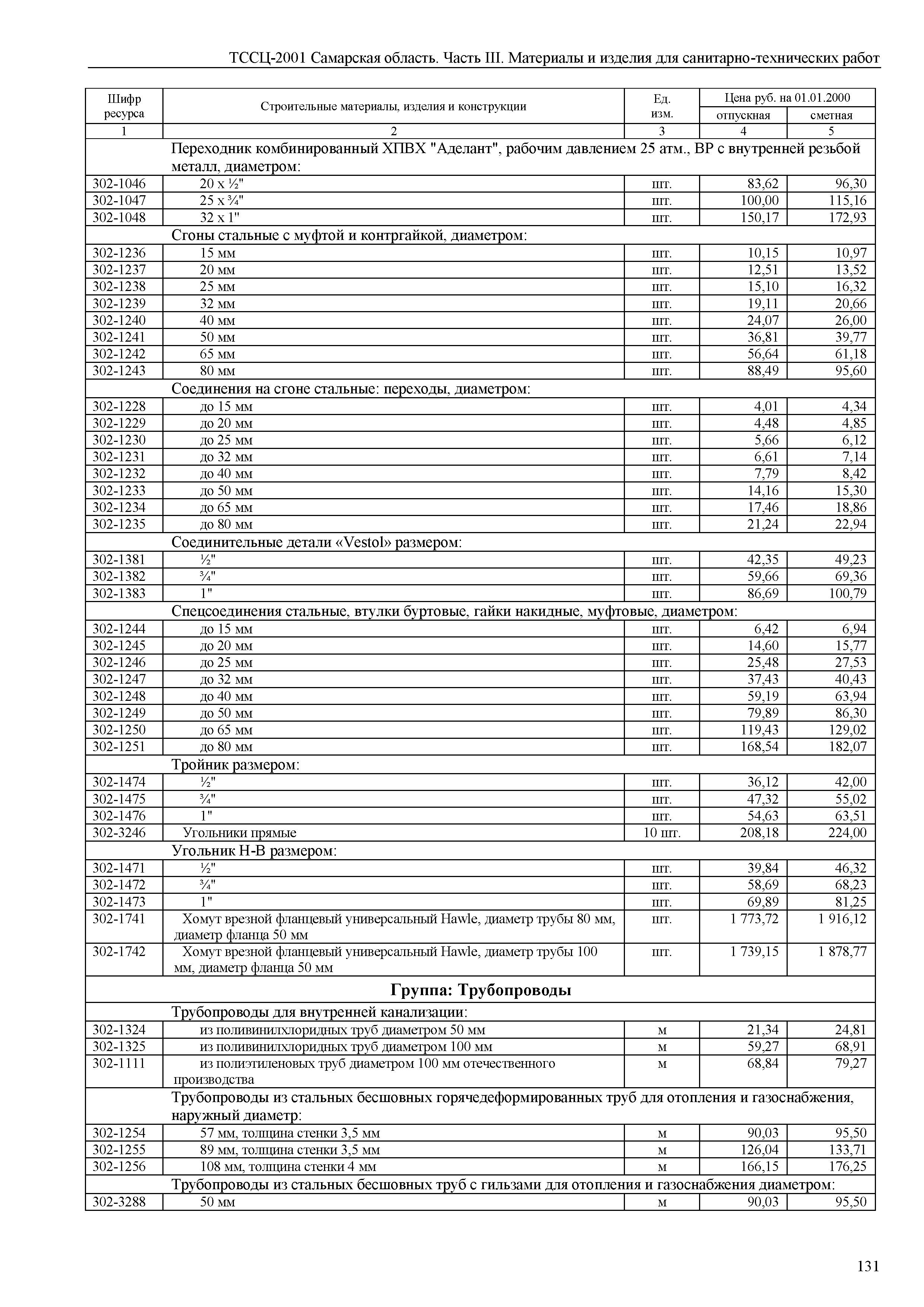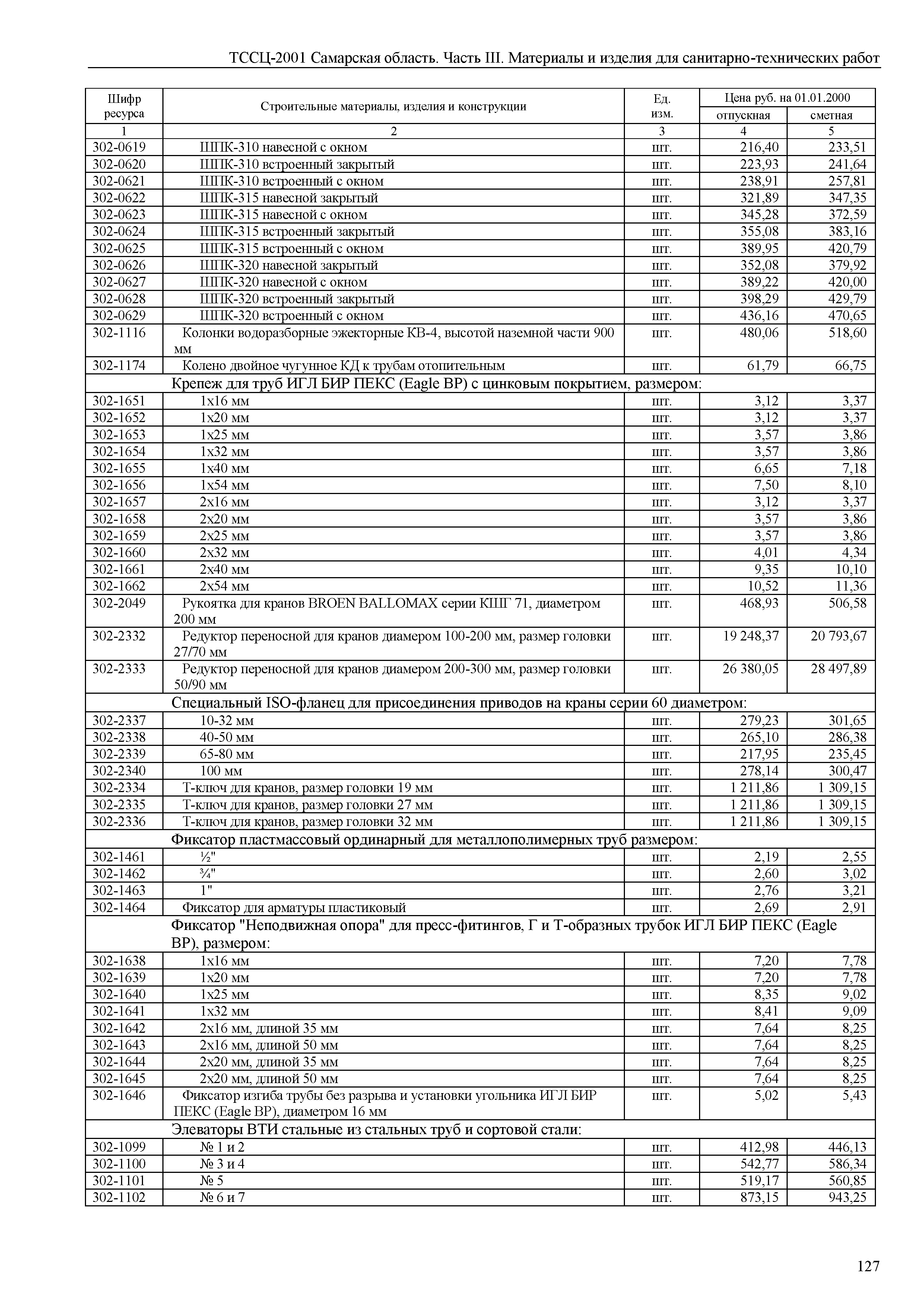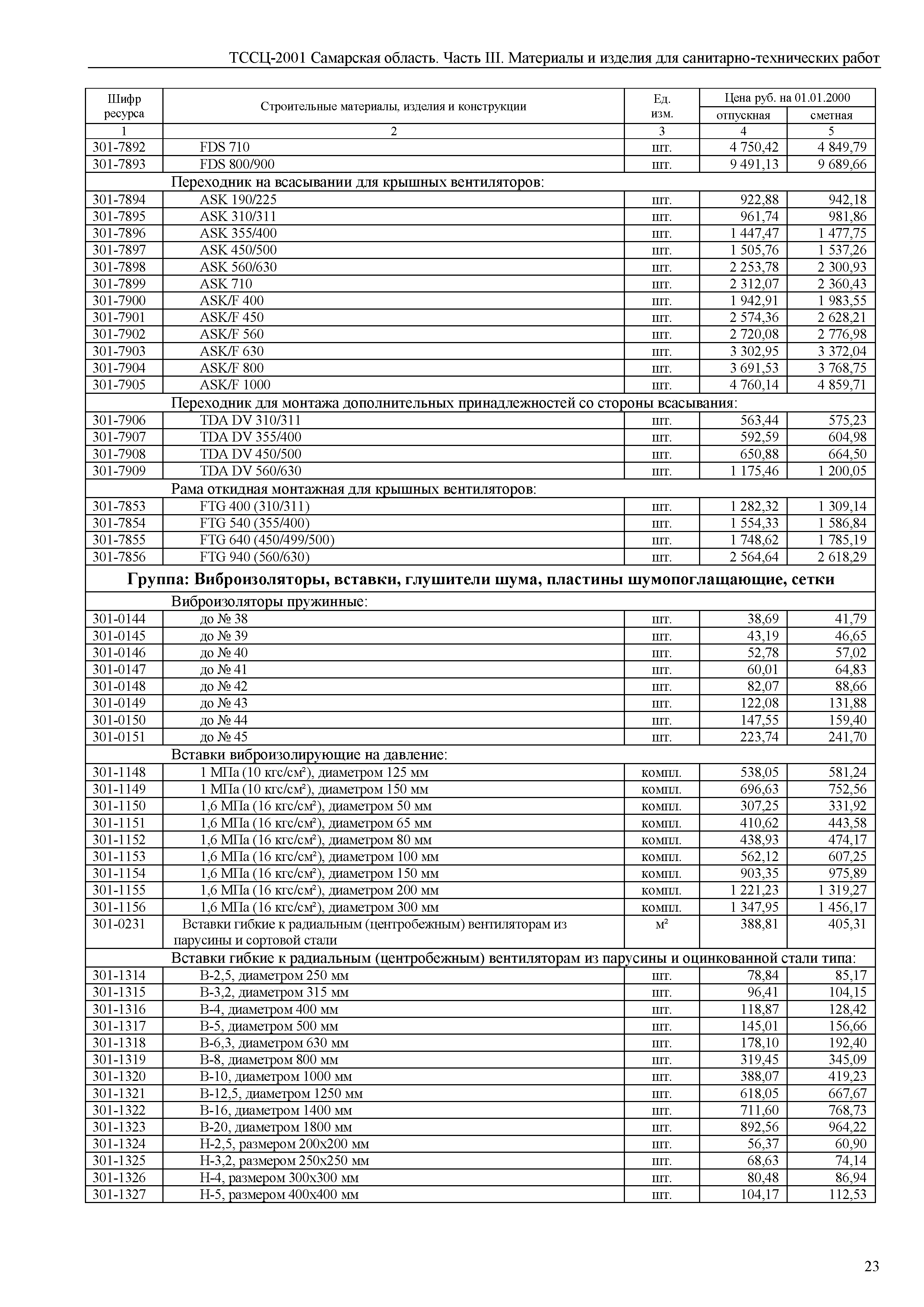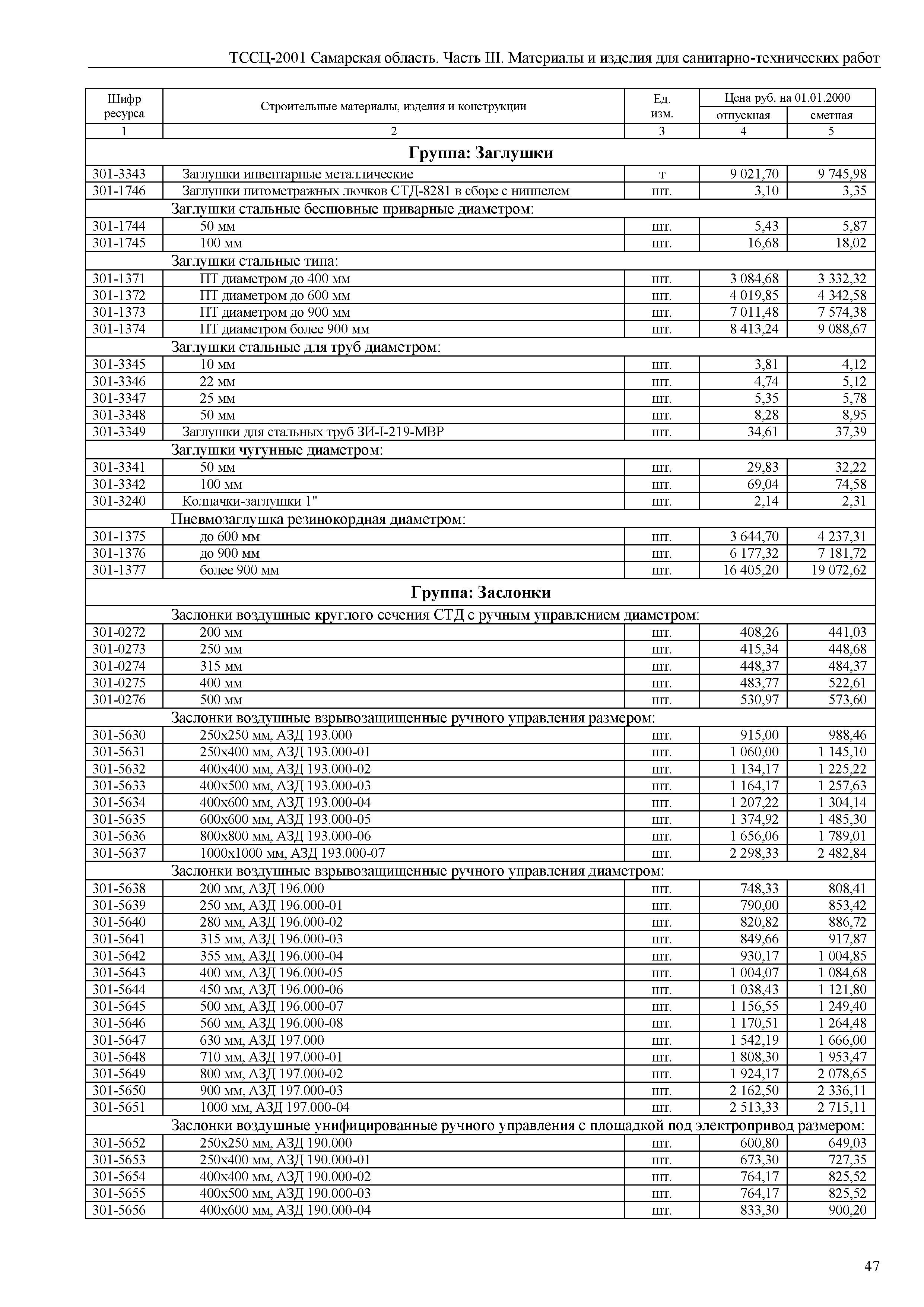 Скачать ТССЦ Самарская область 81-01-2001 Часть III. Материалы и изделия для санитарно-технических работ. Территориальные сметные цены на материалы, изделия и конструкции, применяемые в строительствеДата актуализации: 01.01.2021