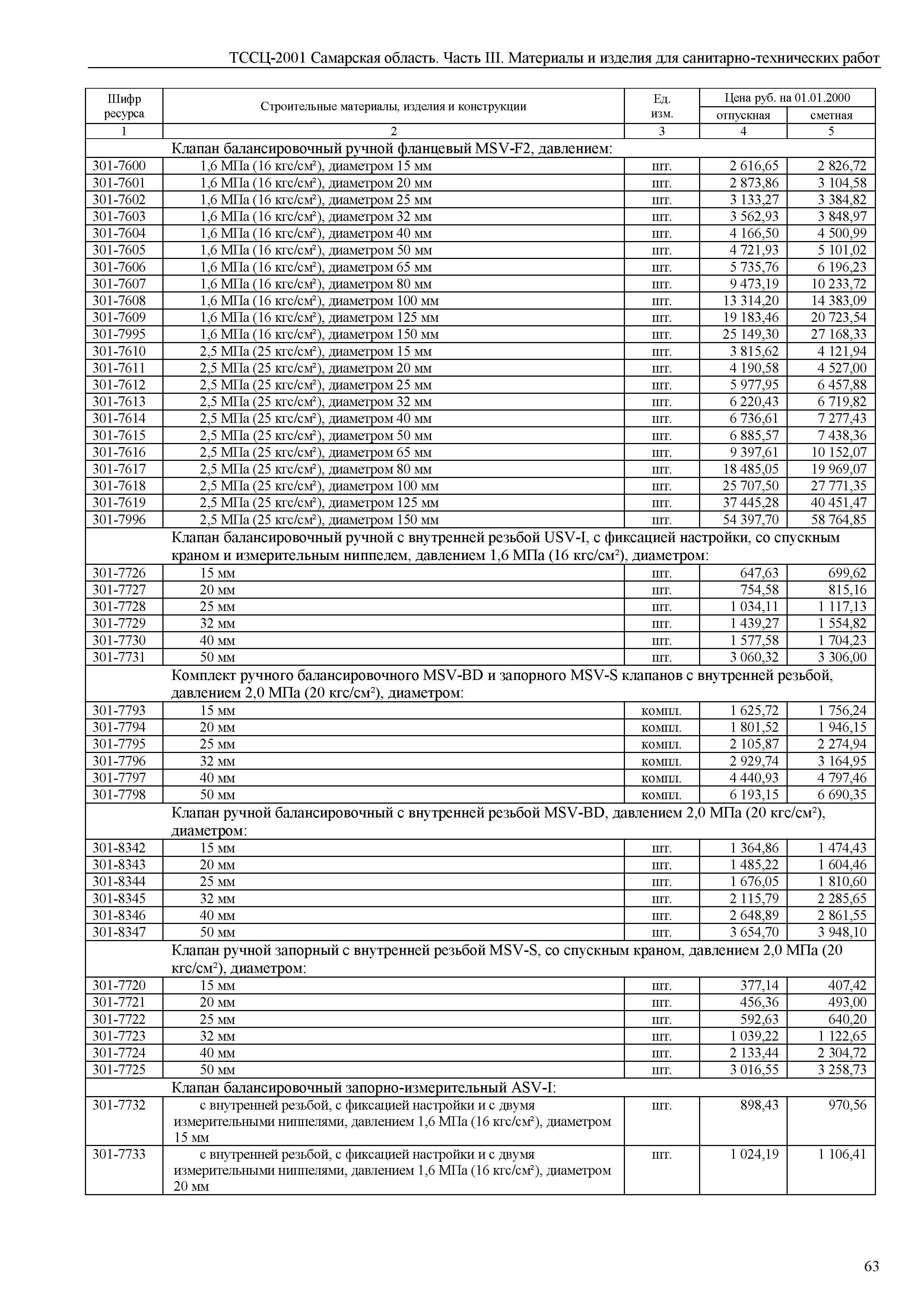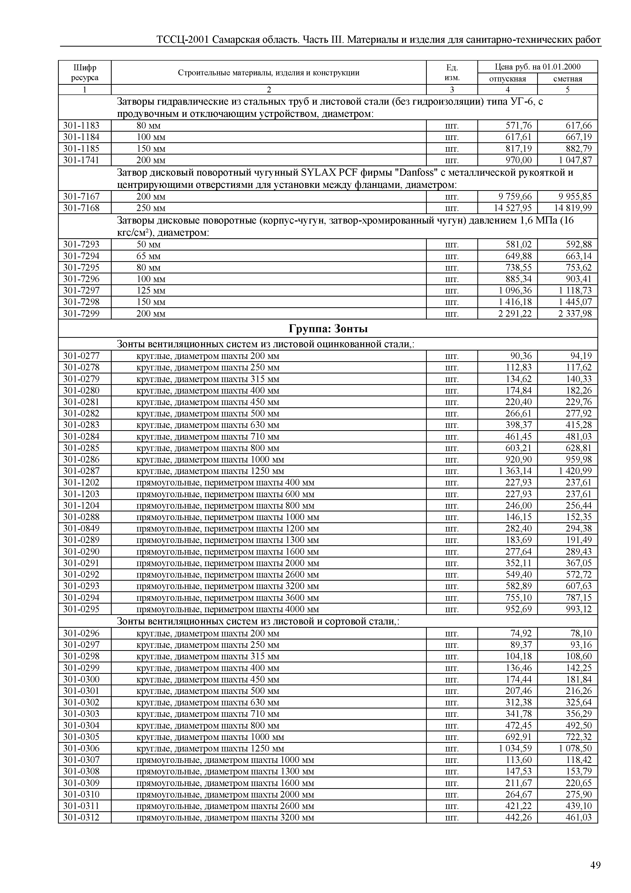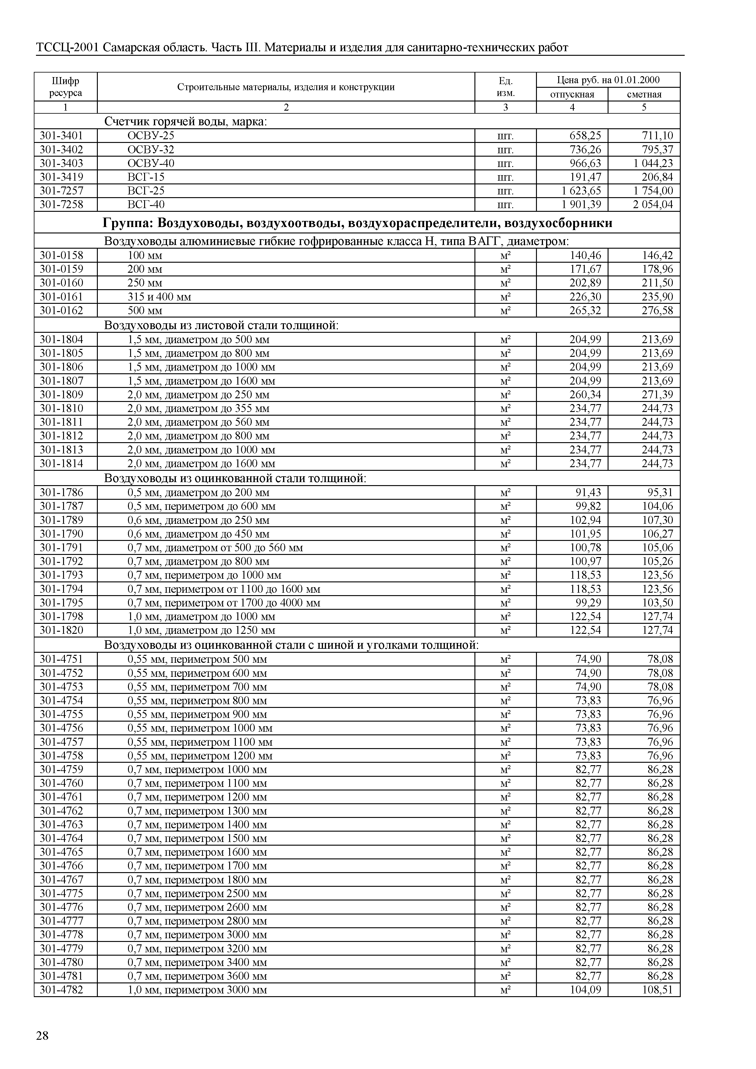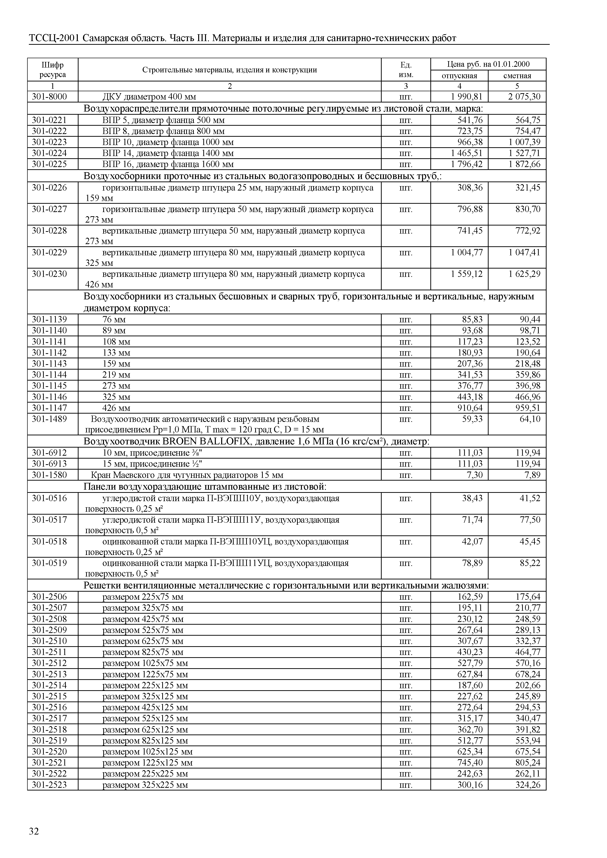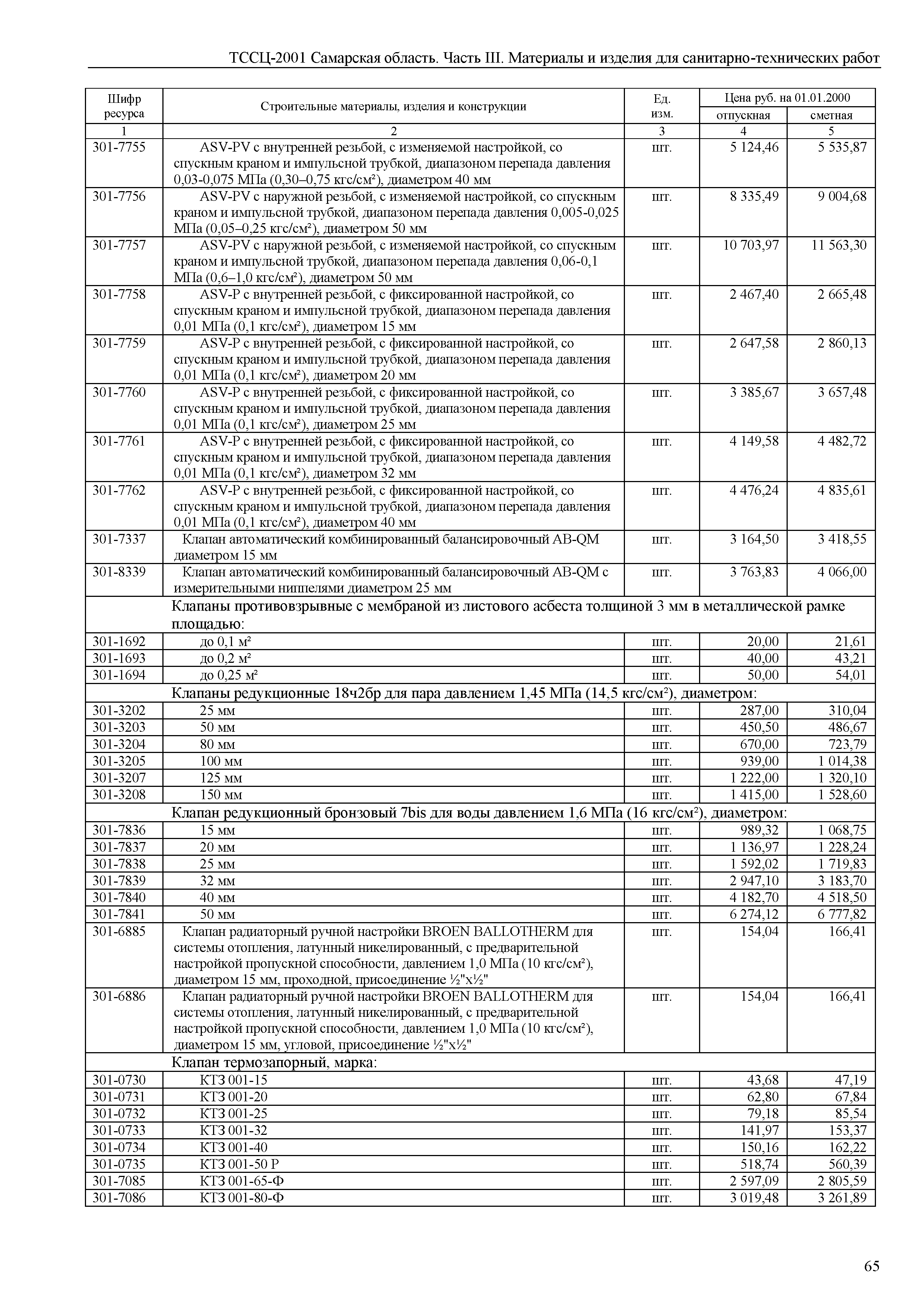Скачать ТССЦ Самарская область 81-01-2001 Часть III. Материалы и изделия для санитарно-технических работ. Территориальные сметные цены на материалы, изделия и конструкции, применяемые в строительствеДата актуализации: 01.01.2021