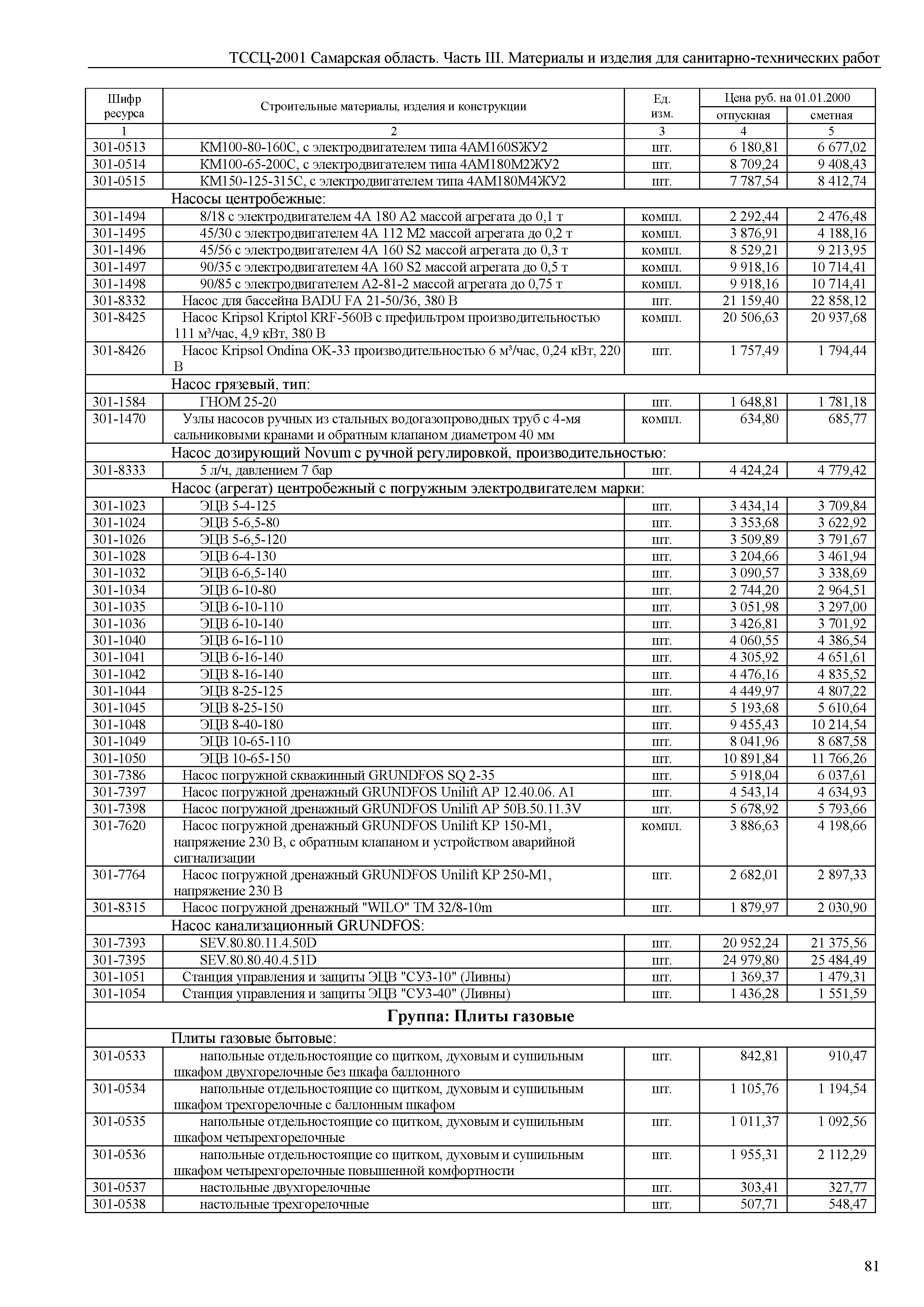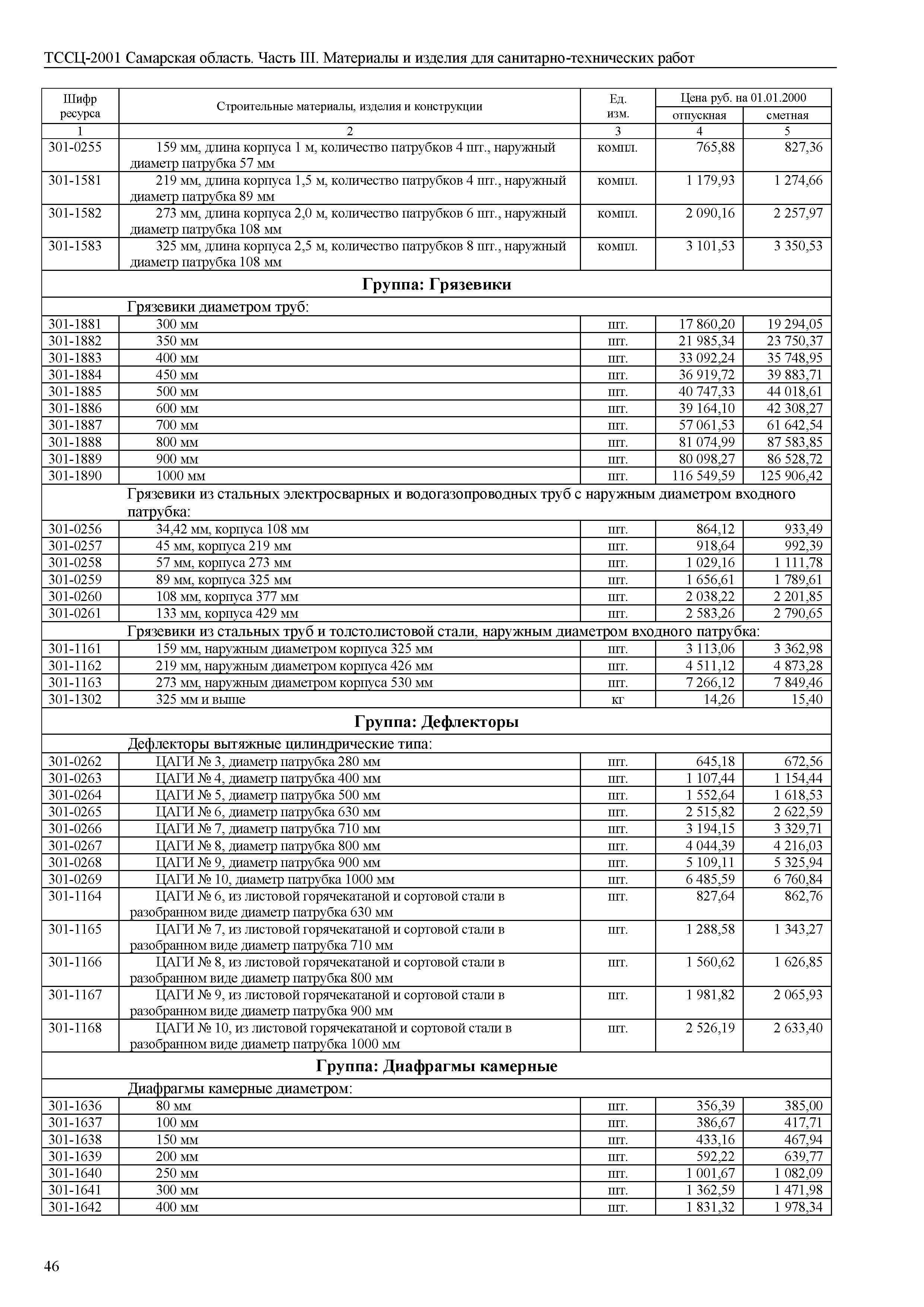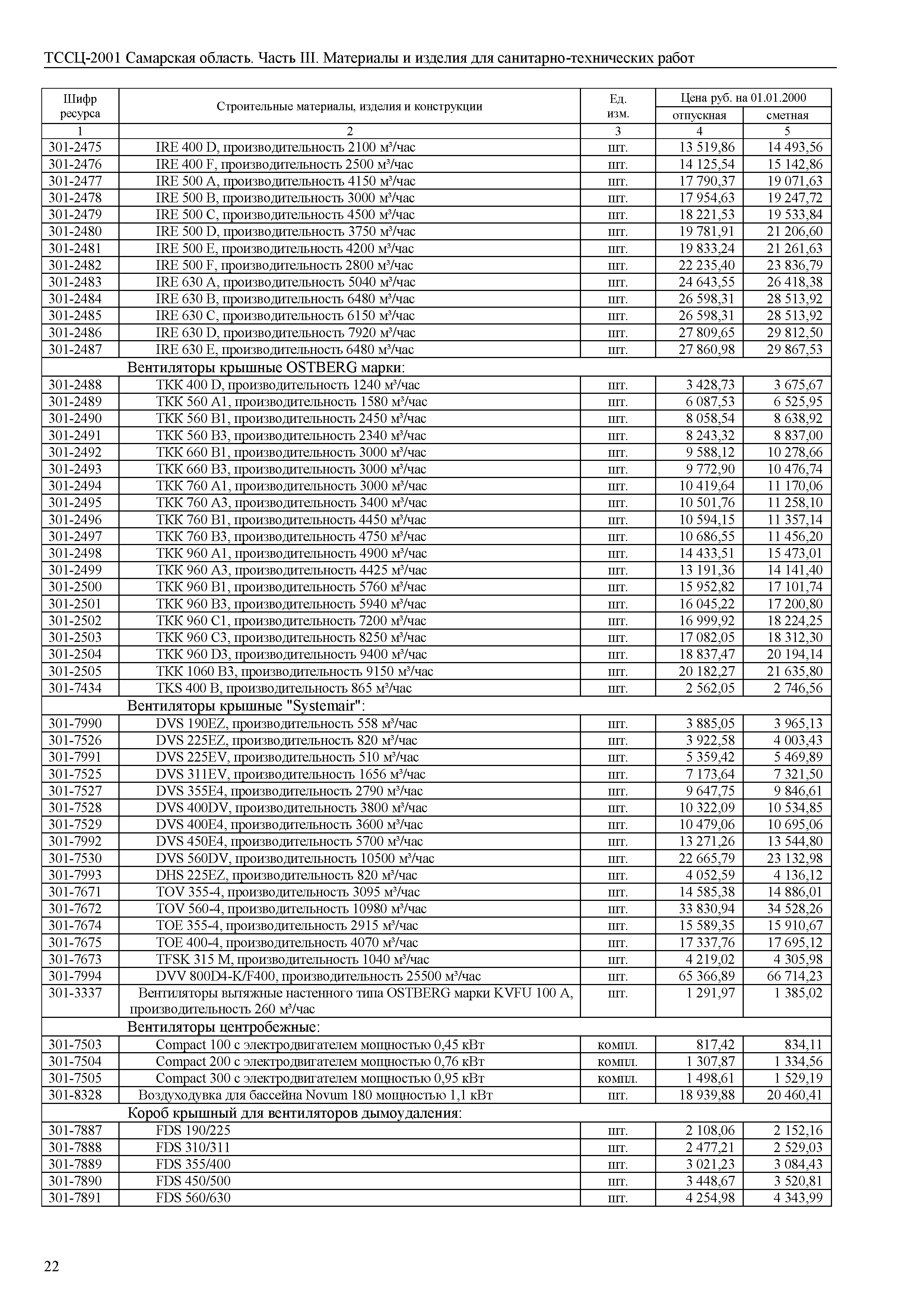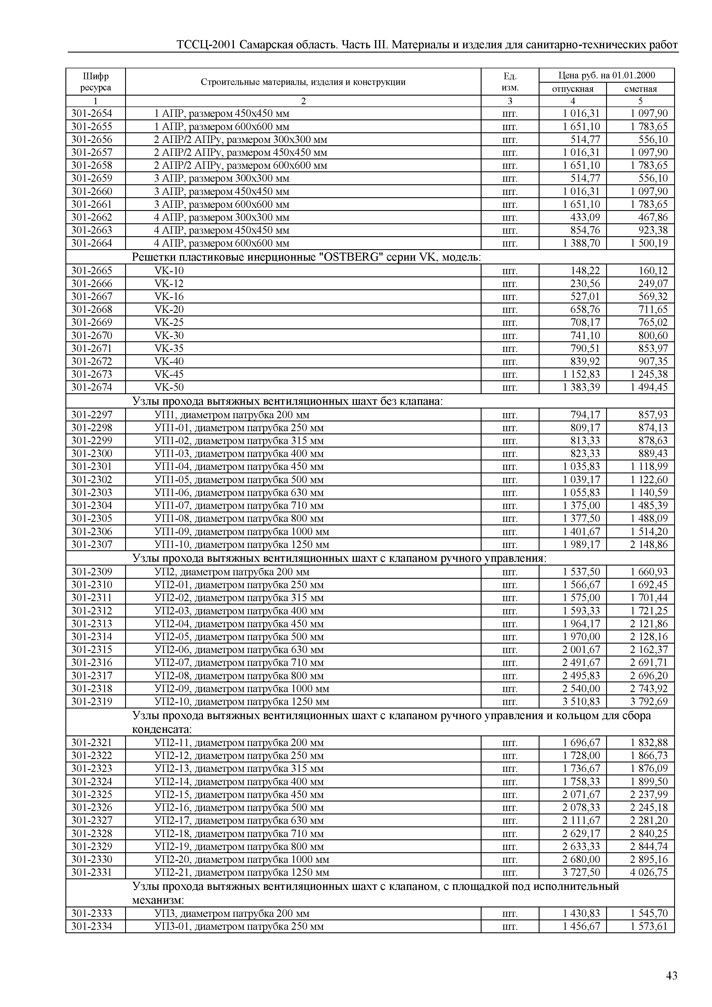 Скачать ТССЦ Самарская область 81-01-2001 Часть III. Материалы и изделия для санитарно-технических работ. Территориальные сметные цены на материалы, изделия и конструкции, применяемые в строительствеДата актуализации: 01.01.2021