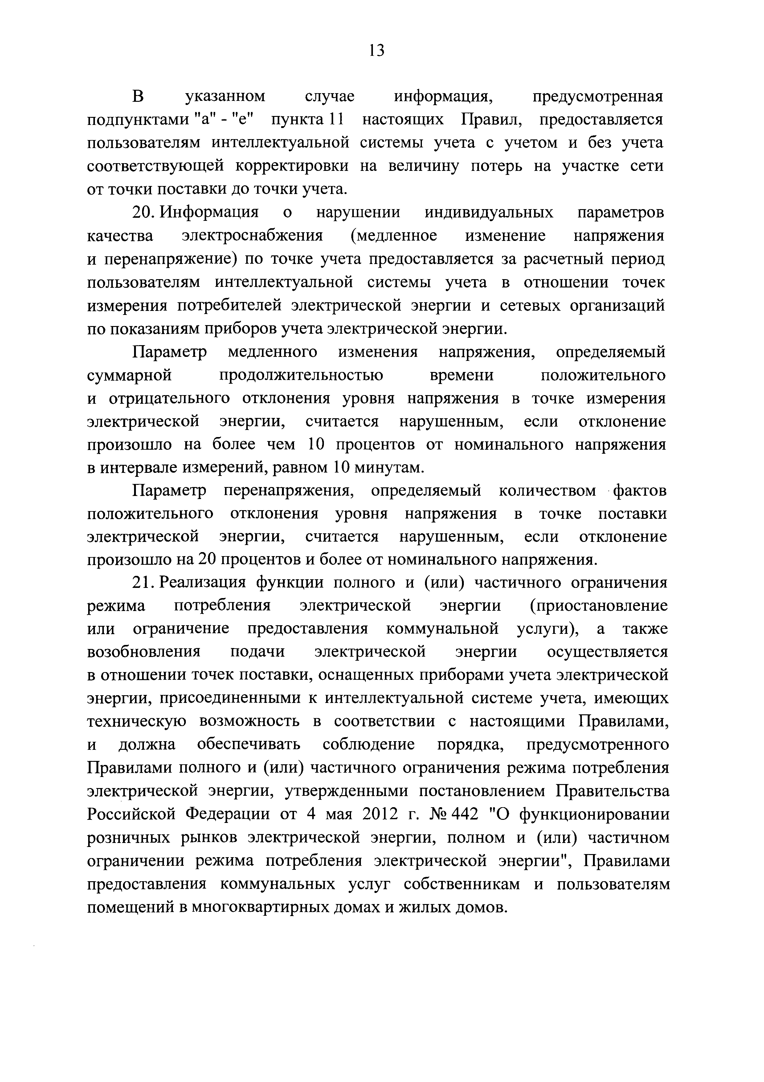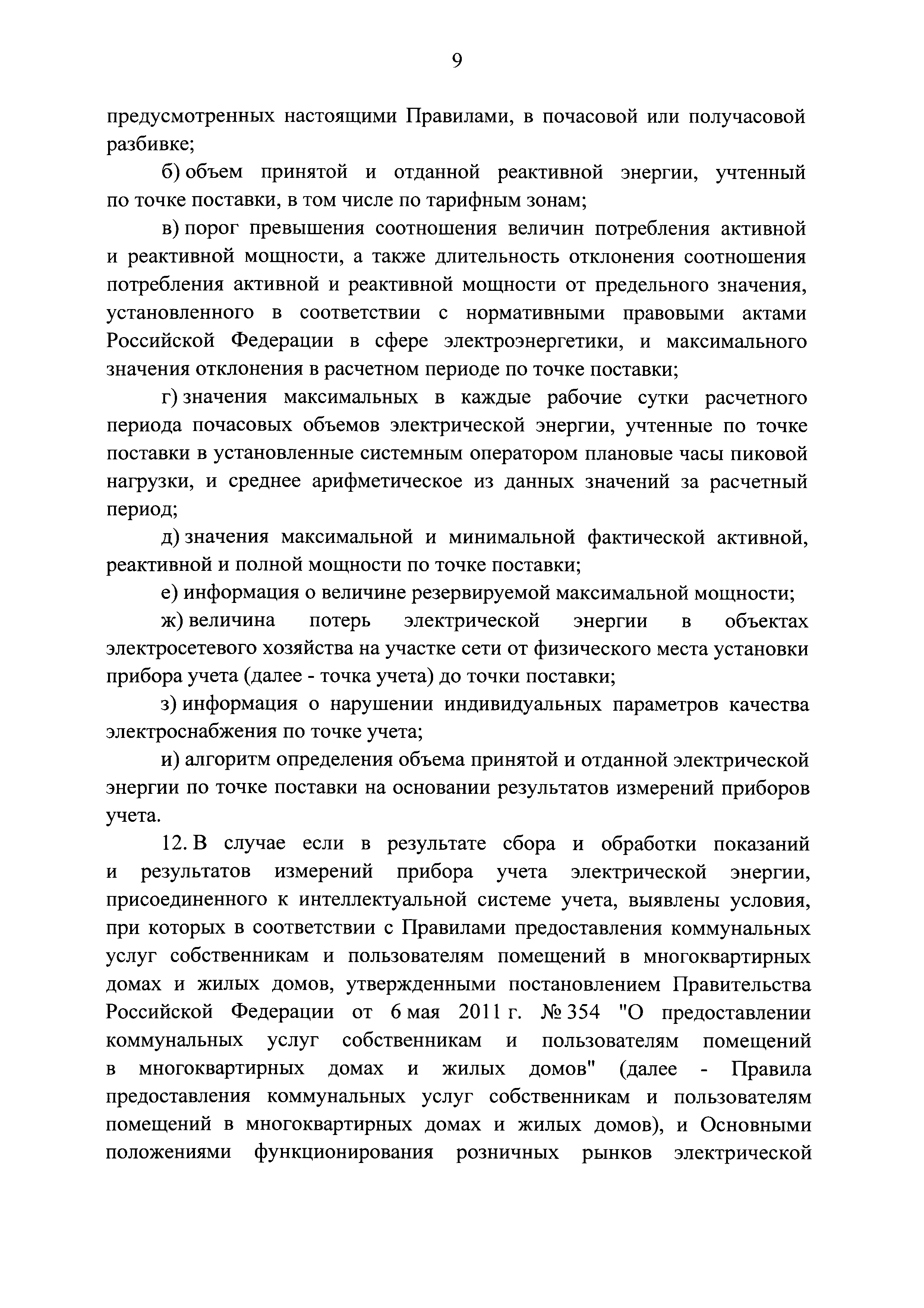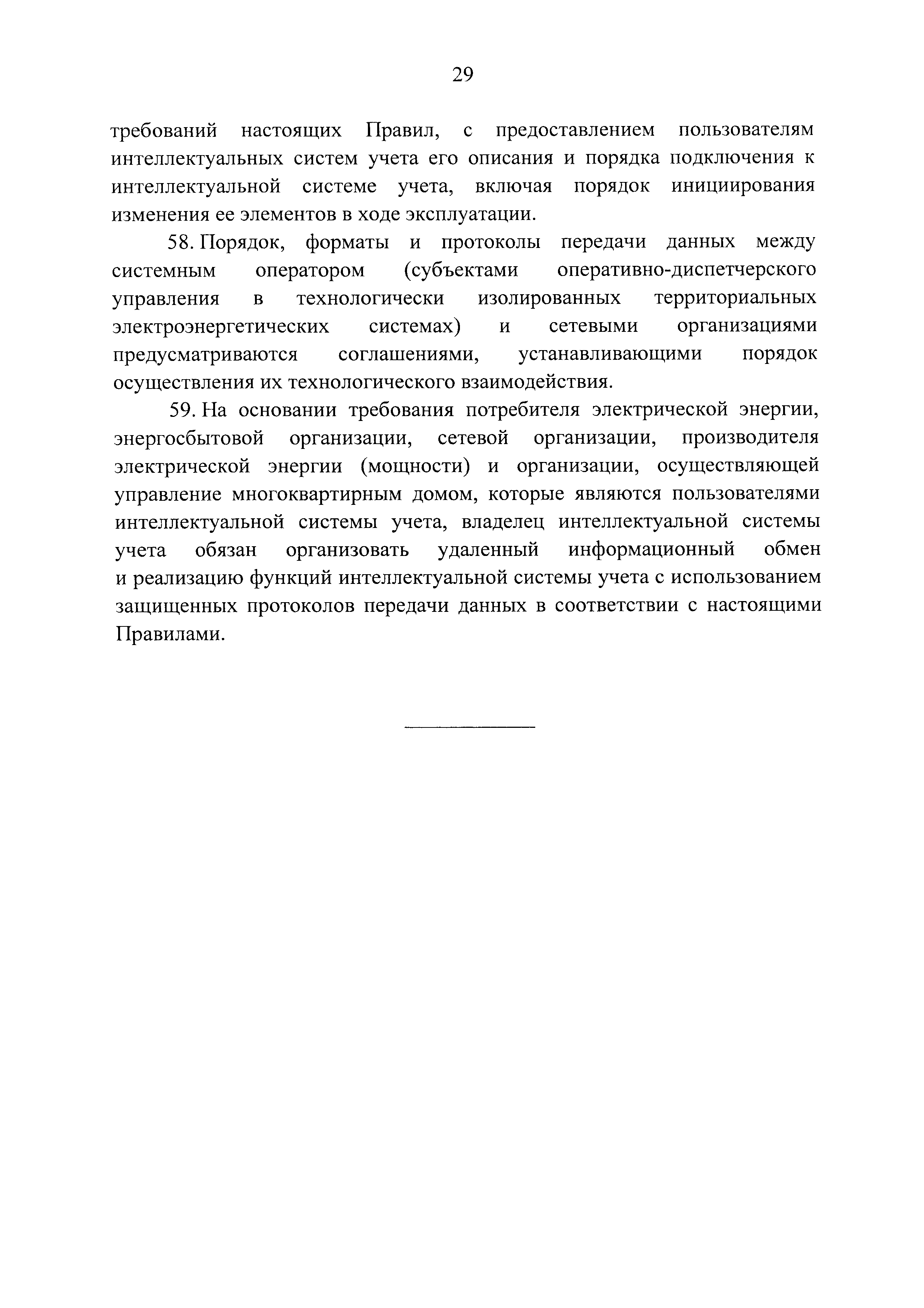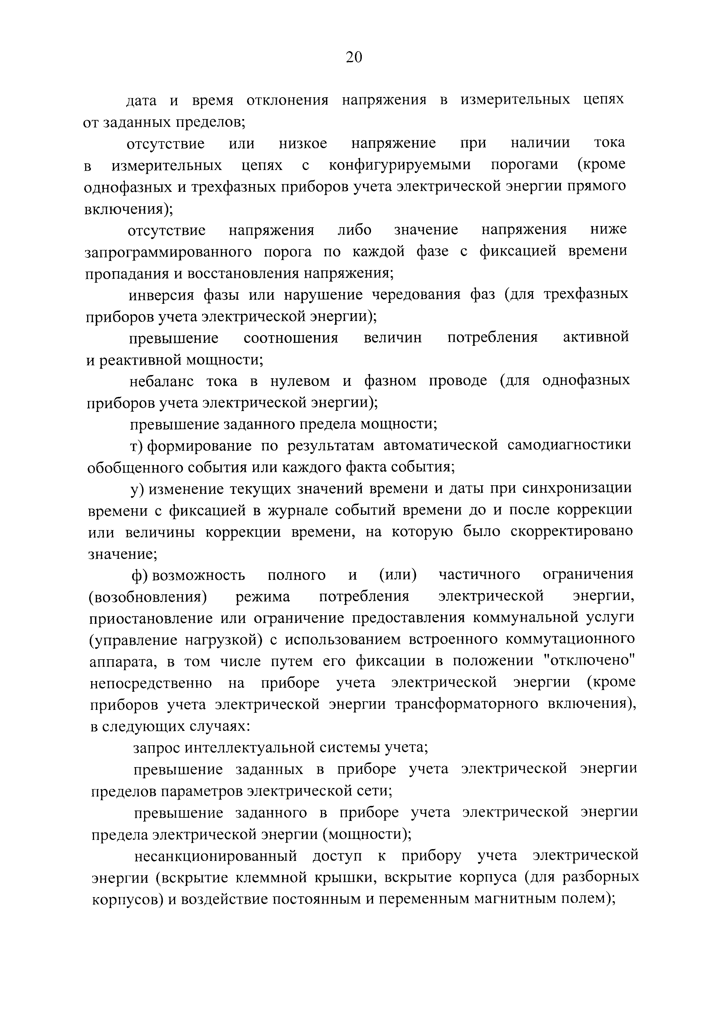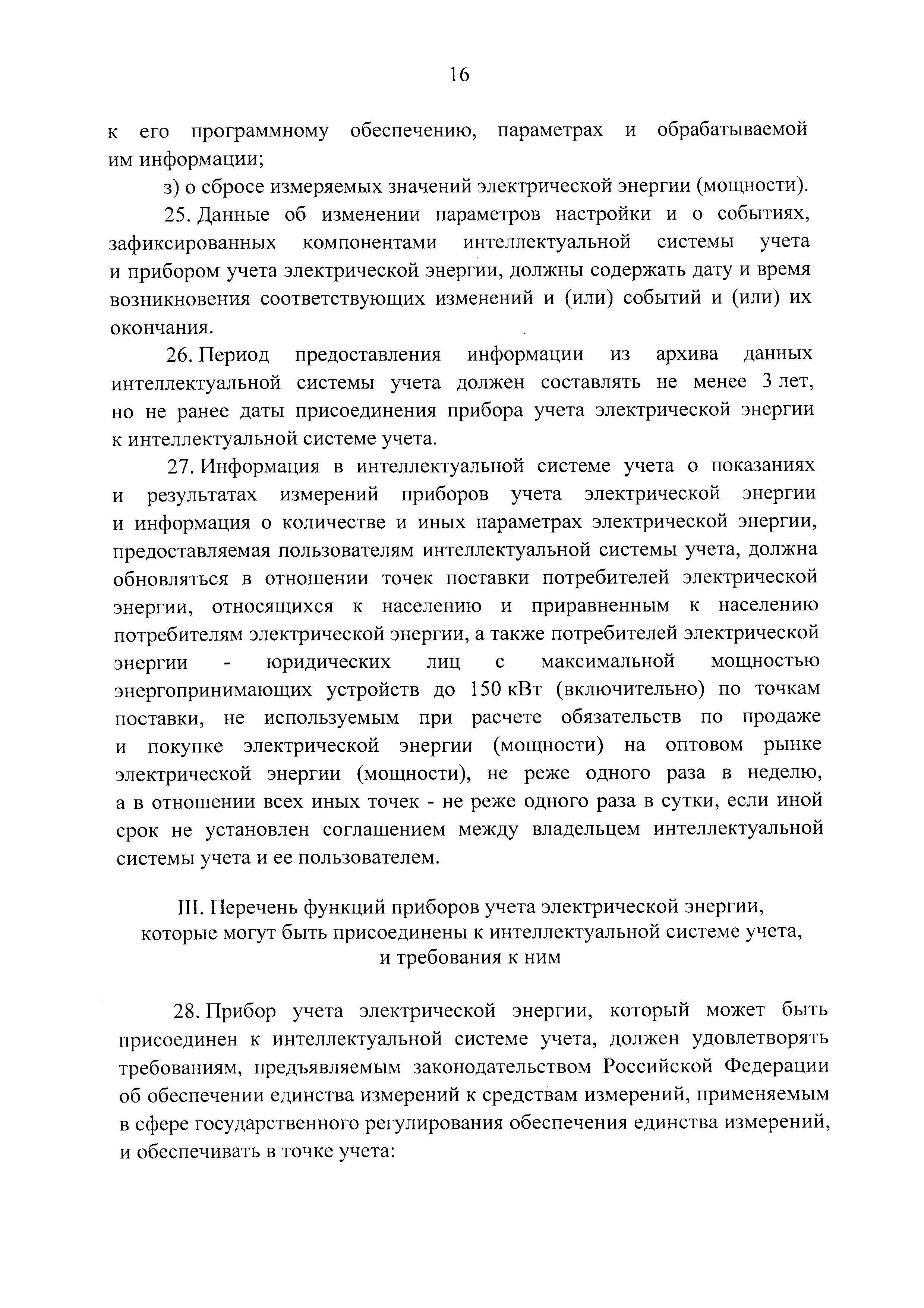 | Оглавление: | I. Общие принципы предоставления минимального набора функций интеллектуальной системы учета электрической энергии (мощности) II. Перечень функций интеллектуальной системы учета и требования к ним III. Перечень функций приборов учета электрической энергии, которые могут быть присоединены к интеллектуальной системе учета, и требования к ним IV. Правила присоединения приборов учета электрической энергии к интеллектуальной системе учета и предоставления доступа к функциям такой системы V. Требования по защите информации, размещаемой в интеллектуальной системе учета, от несанкционированного доступа к ней при ее сборе, передаче и хранении VI. Требования к порядку обмена информацией в рамках функционирования интеллектуальных систем учета, ее форматам и протоколам обмена |