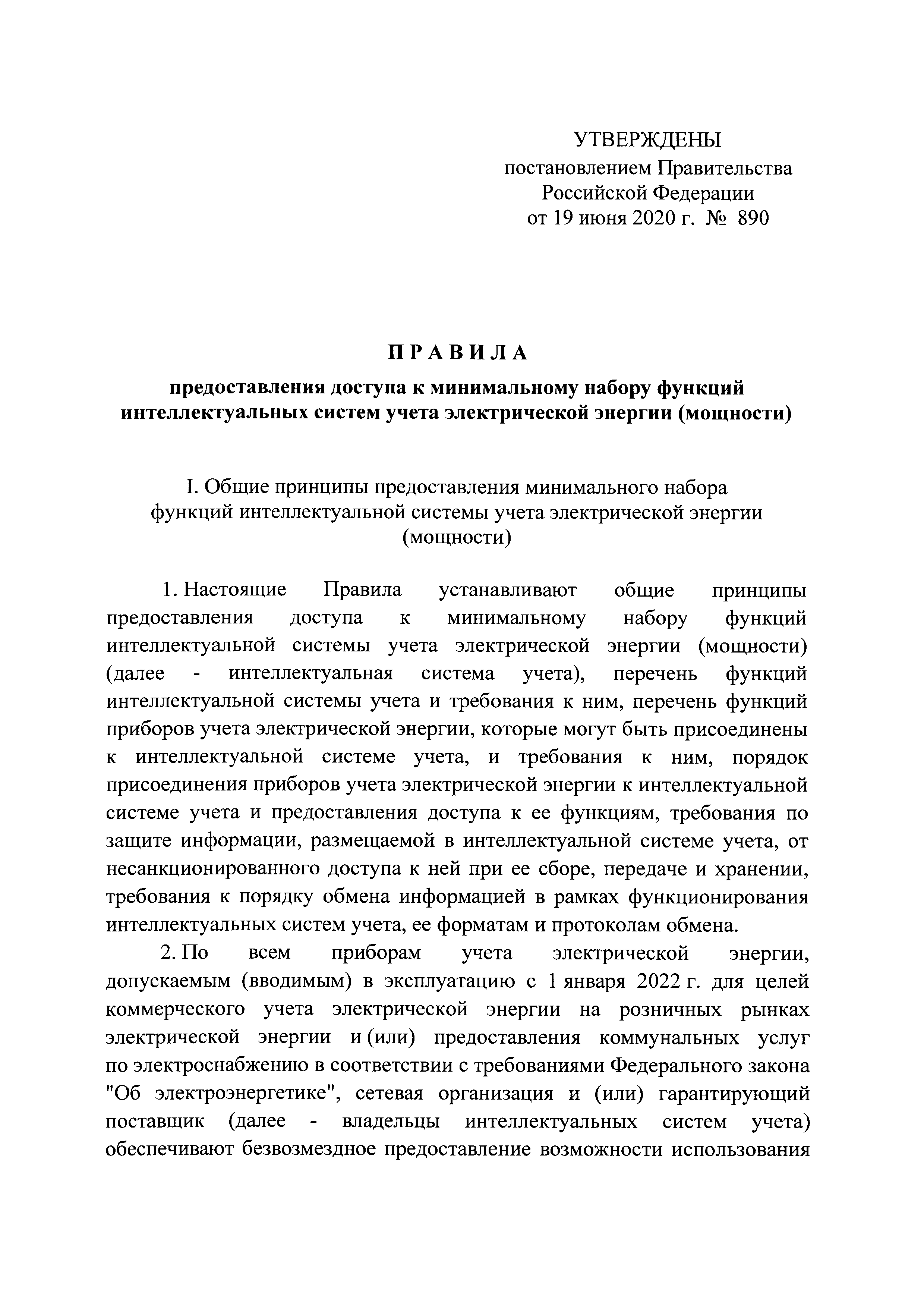 | Название рус.: | Правила предоставления доступа к минимальному набору функций интеллектуальных систем учета электрической энергии (мощности) |