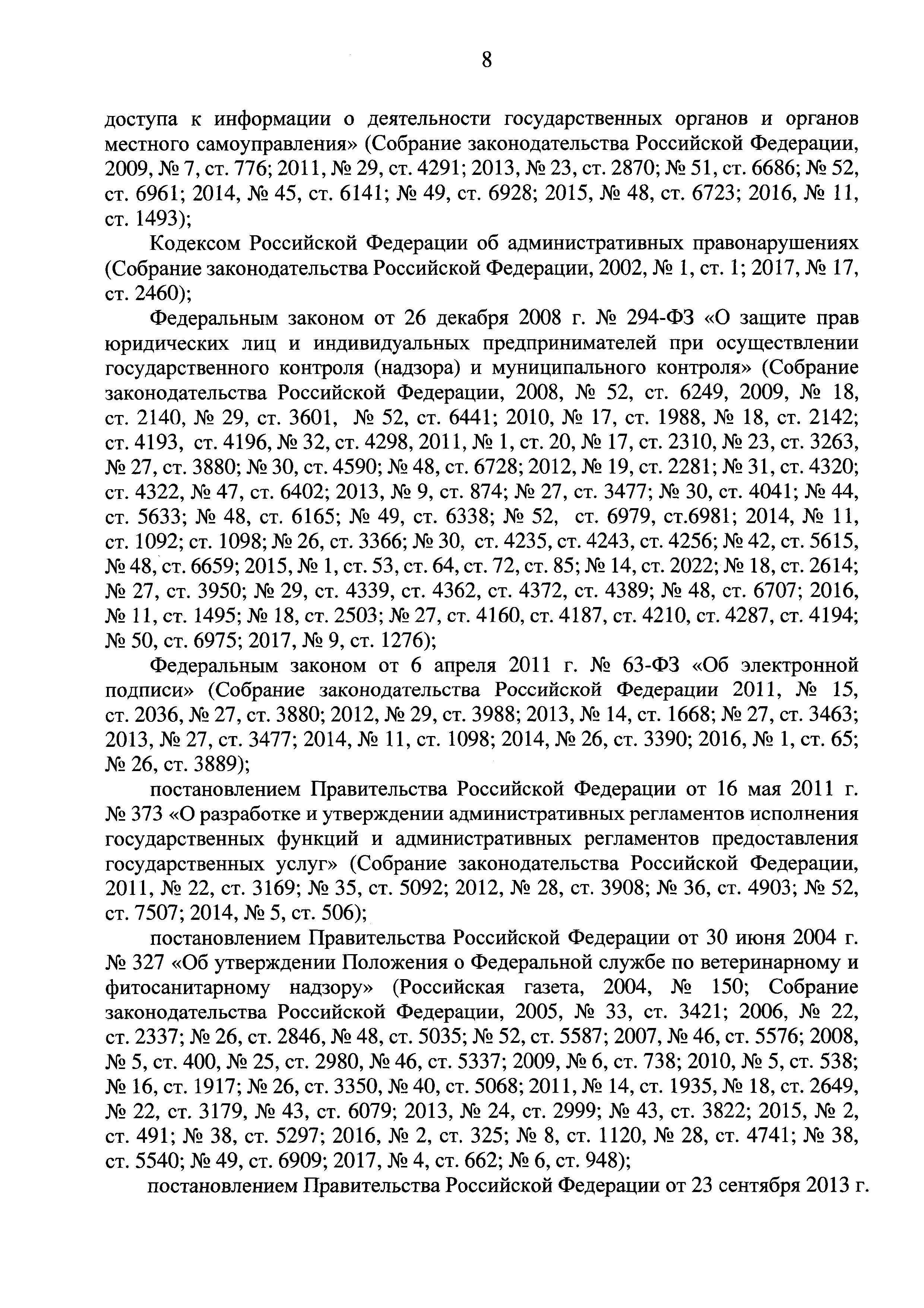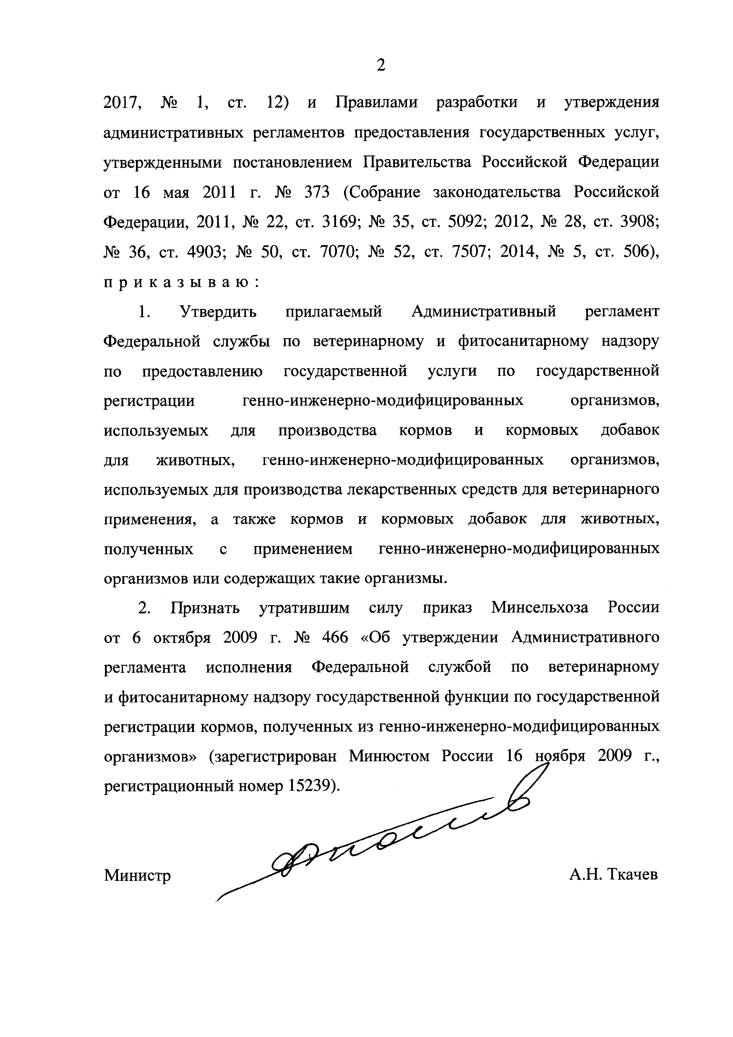 | Название рус.: | Административный регламент Федеральной службы по ветеринарному и фитосанитарному надзору по предоставлению государственной услуги по государственной регистрации генно-инженерно-модифицированных организмов, используемых для производства кормов и кормовых добавок для животных, генно-инженерно-модифицированных организмов, используемых для производства лекарственных средств для ветеринарного применения, а также кормов и кормовых добавок для животных, полученных с применением генно-инженерно-модифицированных организмов или содержащих такие организмы |