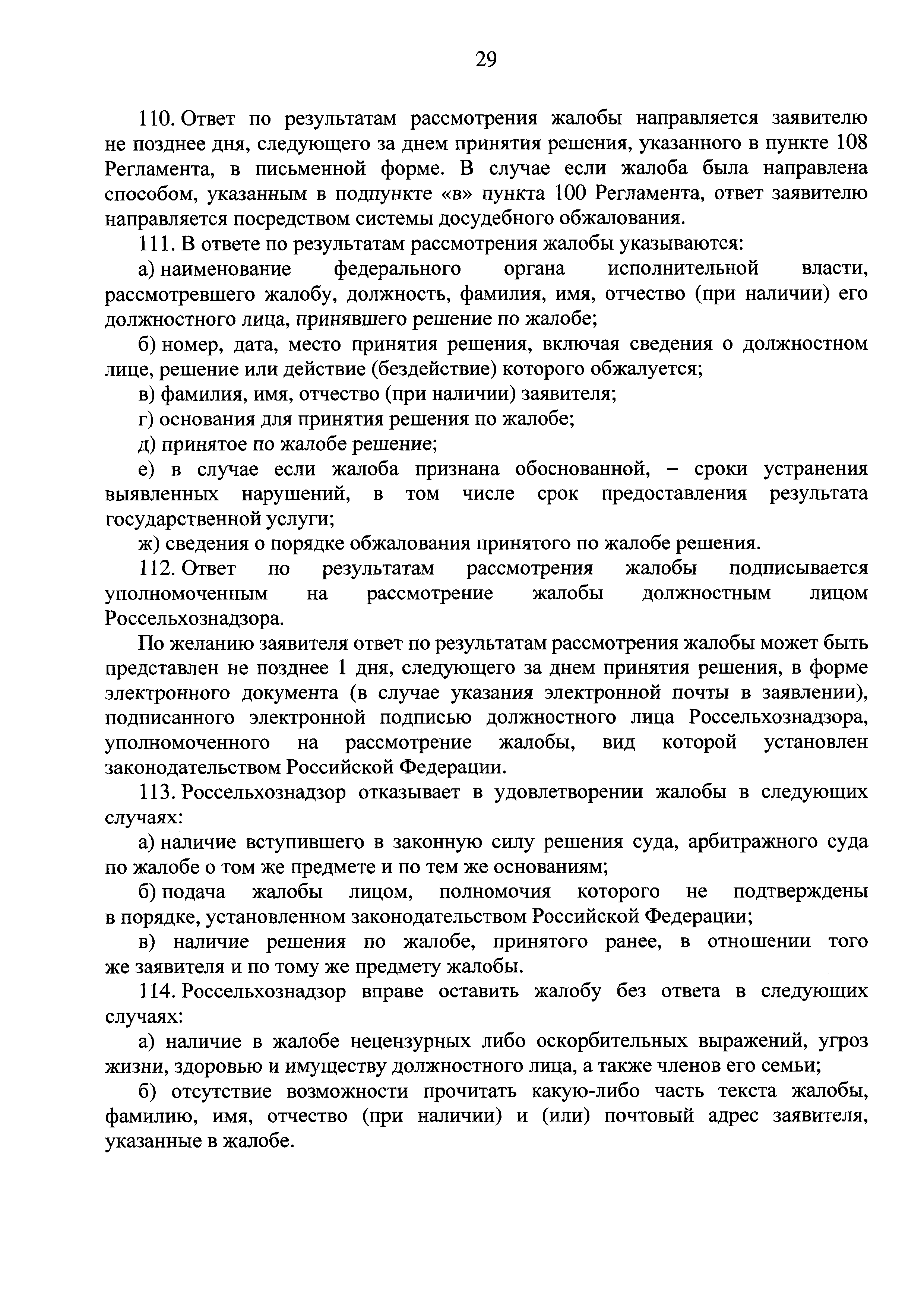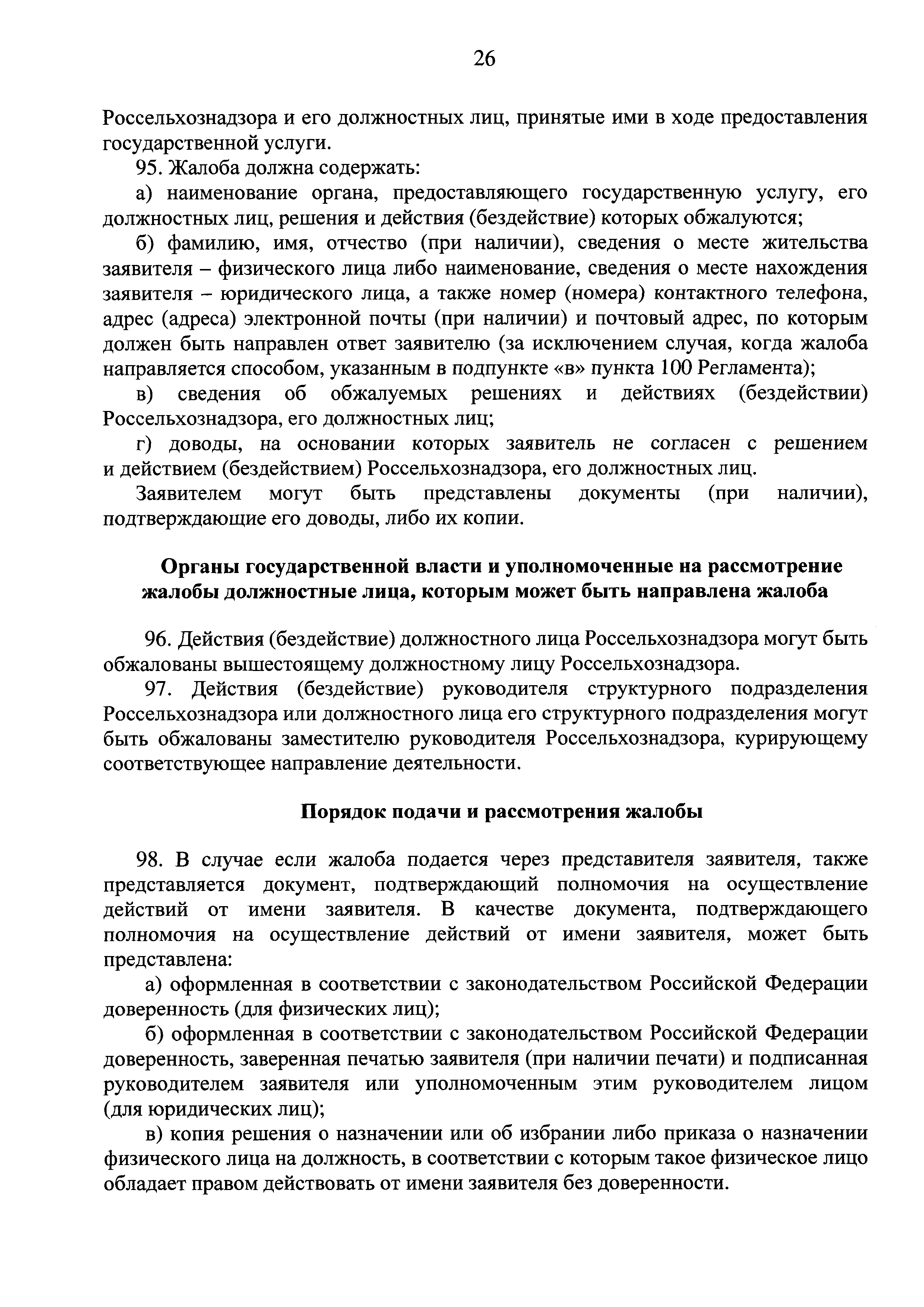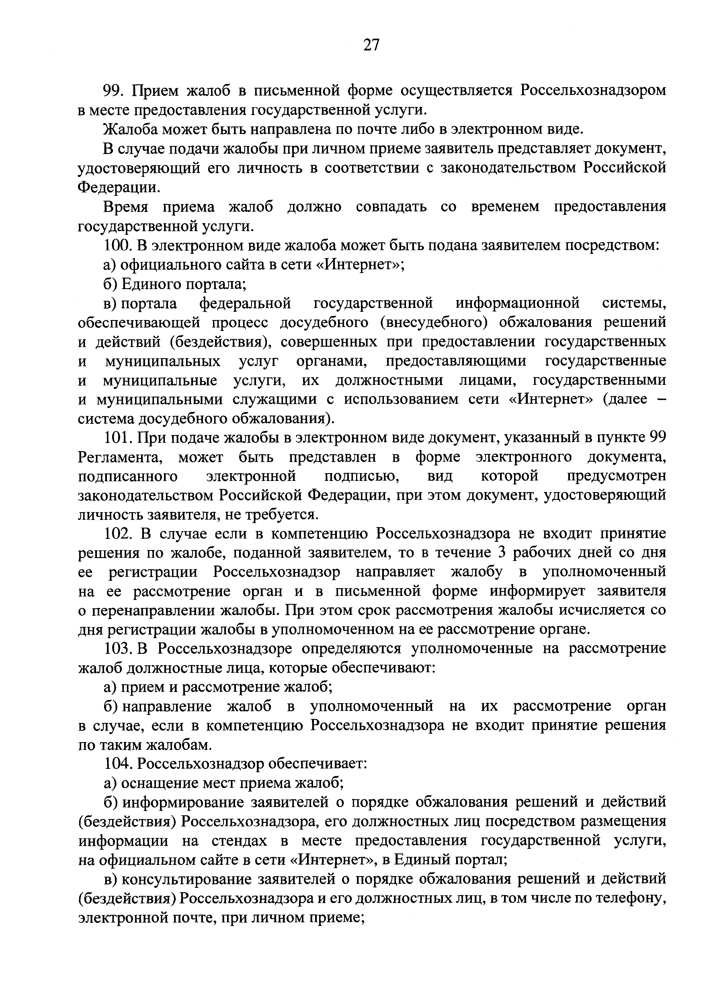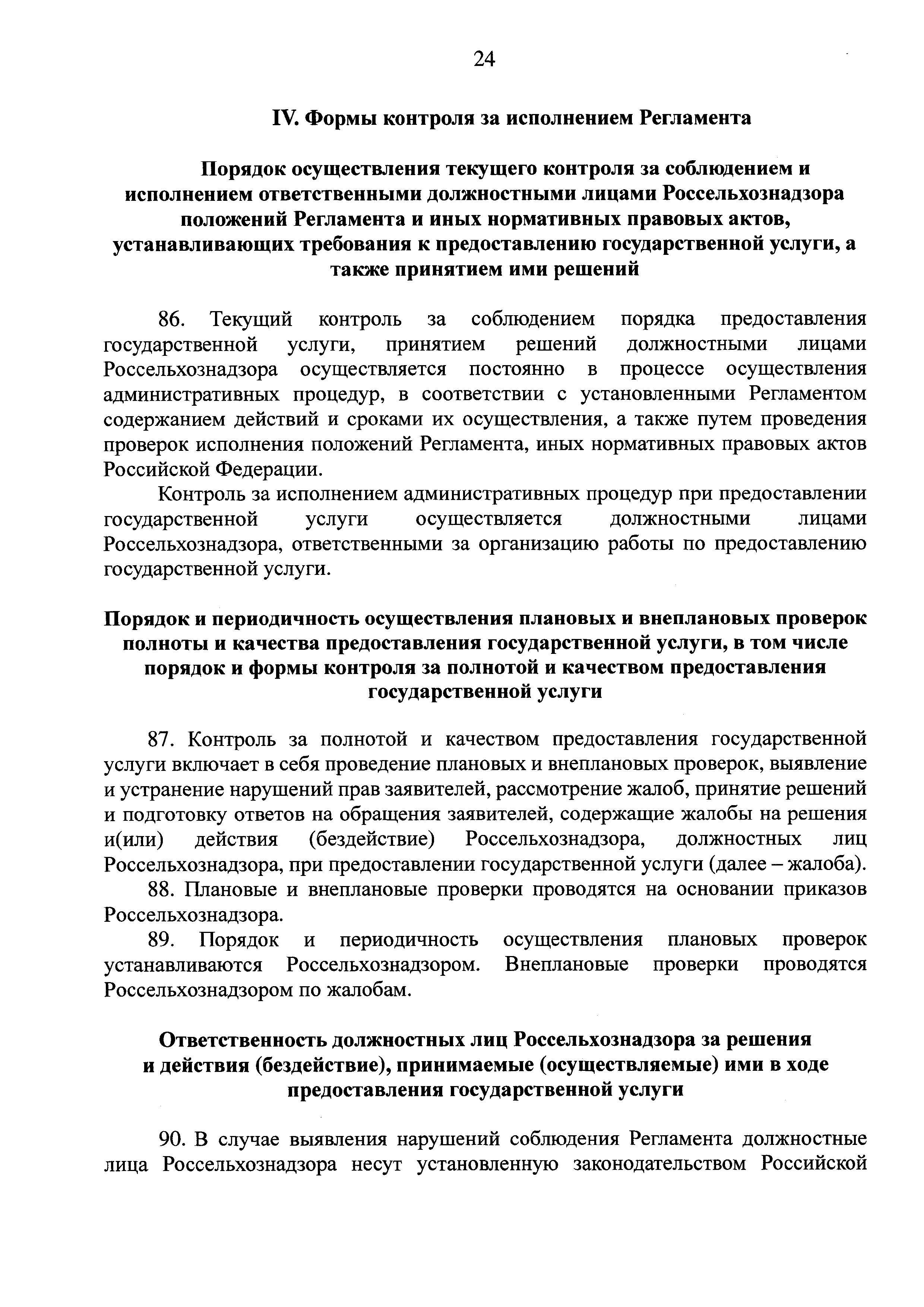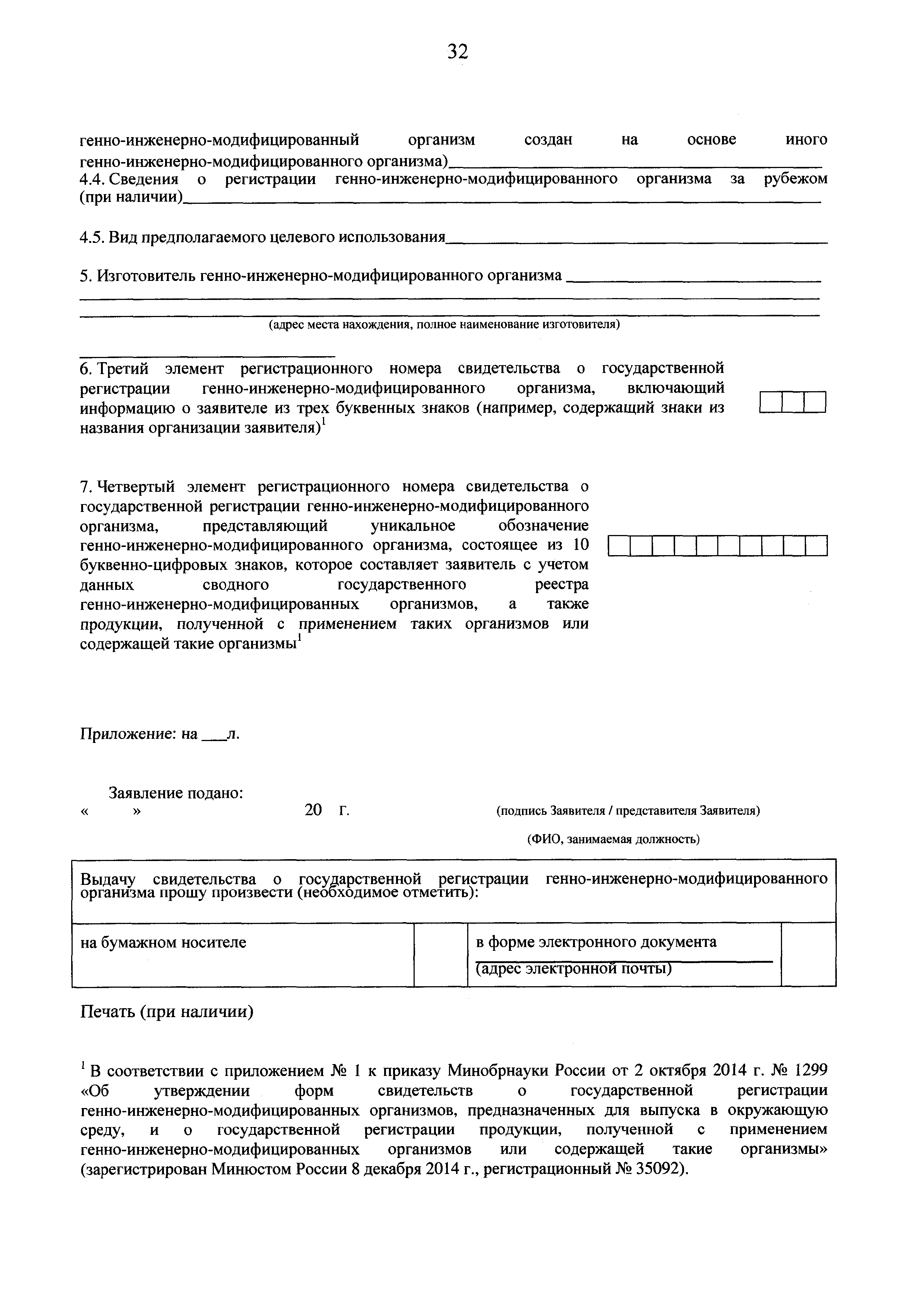 | Оглавление: | I. Общие положения II. Стандарт предоставления государственной услуги III. Состав, последовательность и сроки выполнения административных процедур (действий), требования к порядку их выполнения, в том числе особенности выполнения административных процедур (действий) в электронной форме IV. Формы контроля за исполнением Регламента V. Досудебный (внесудебный) порядок обжалования решений и действий (бездействия) Россельхознадзора, а также его должностных лиц Приложение № 1. Форма заявления о государственной регистрации генно-инженерно-модифицированного организма Приложение № 2. Форма заявления о государственной регистрации генно-инженерно-модифицированного организма, зарегистрированного для определенного вида целевого использования, для другого вида целевого использования Приложение № 3. Форма заявления о государственной регистрации продукции, полученной с применением генно-инженерно-модифицированных организмов или содержащей такие организмы Приложение № 4. Блок-схема предоставления государственной услуги по государственной регистрации модифицированных организмов и продукции |