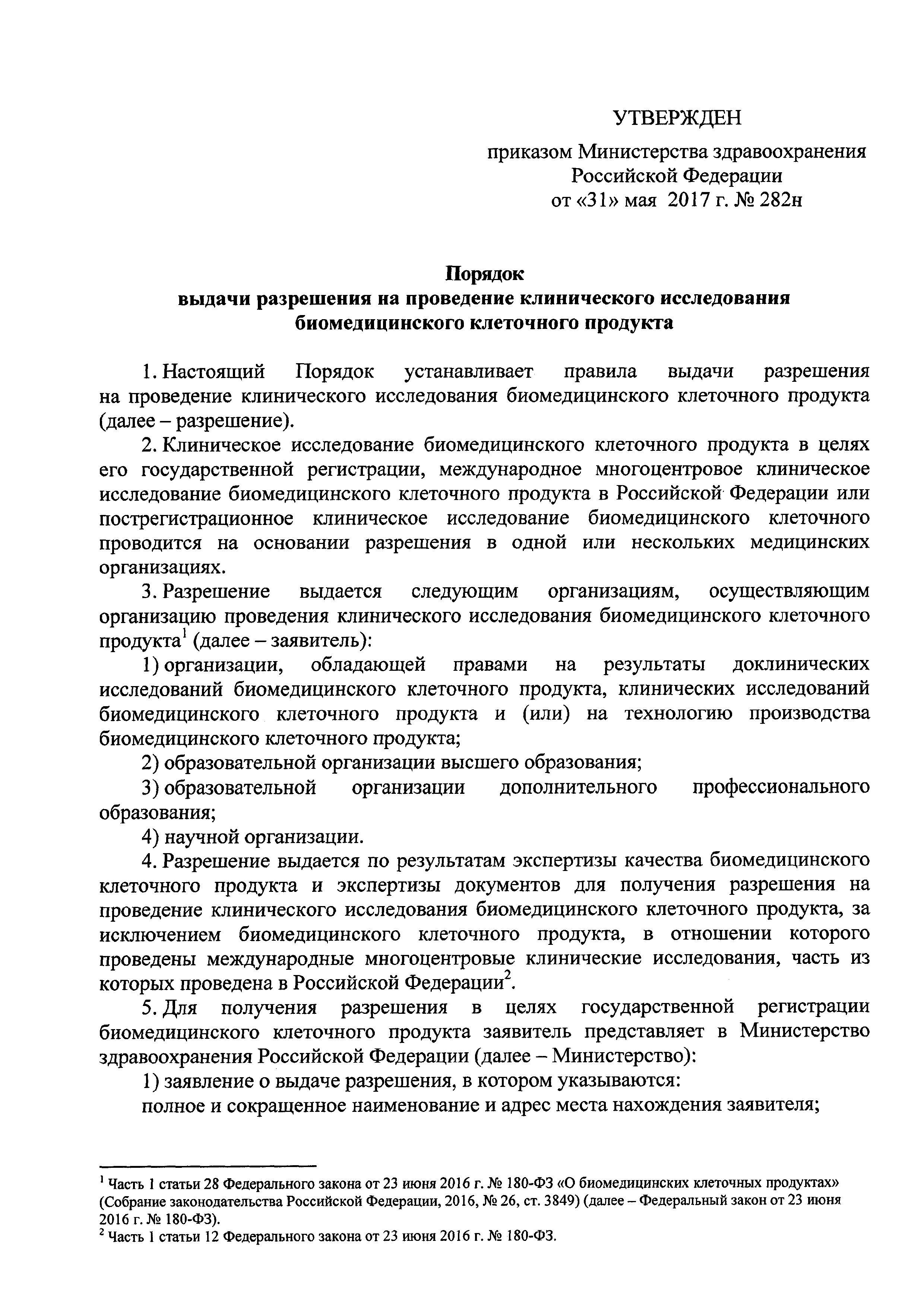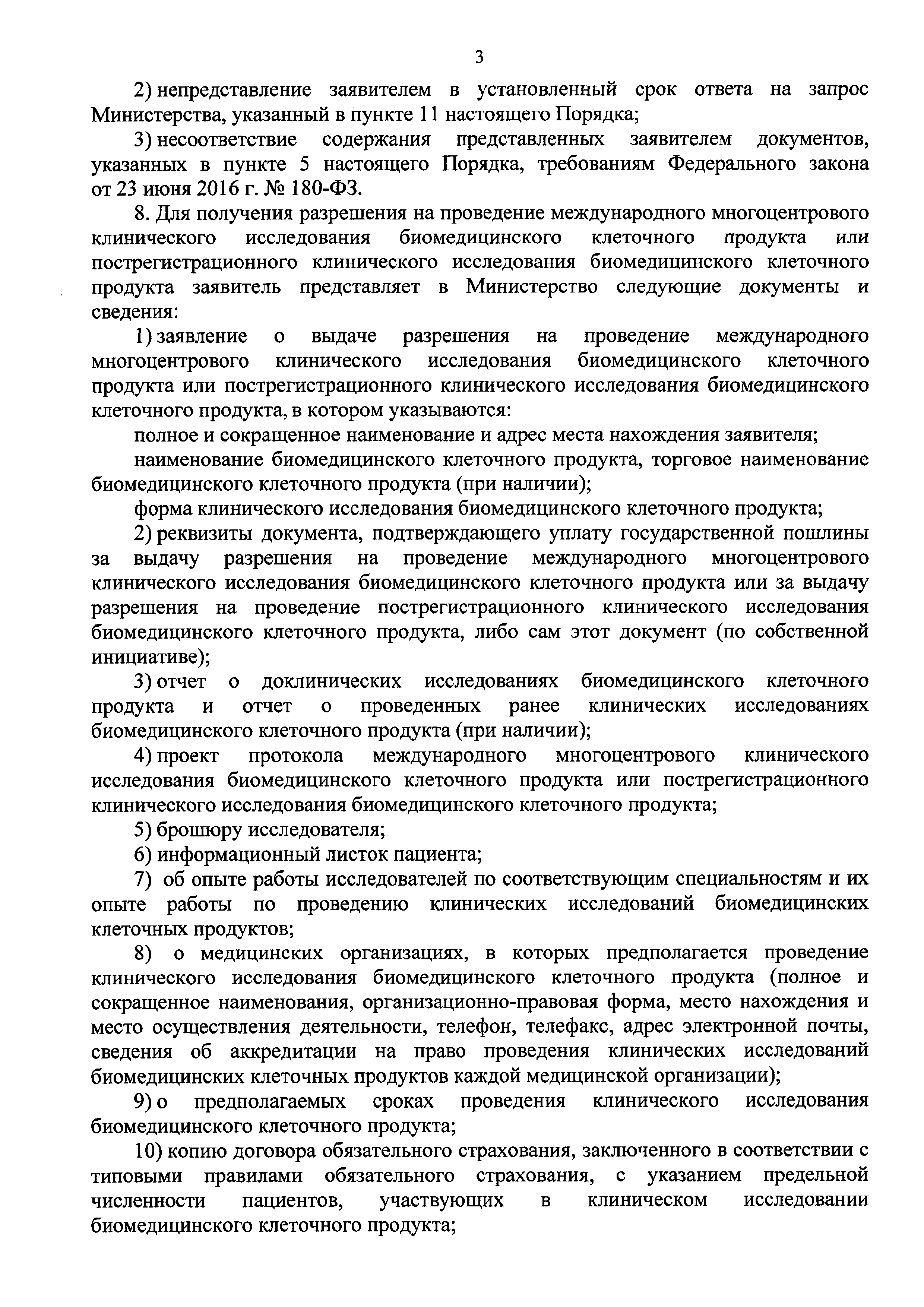 | Область применения: | Порядок устанавливает правила выдачи разрешения на проведение клинического исследования биомедицинского клеточного продукта |