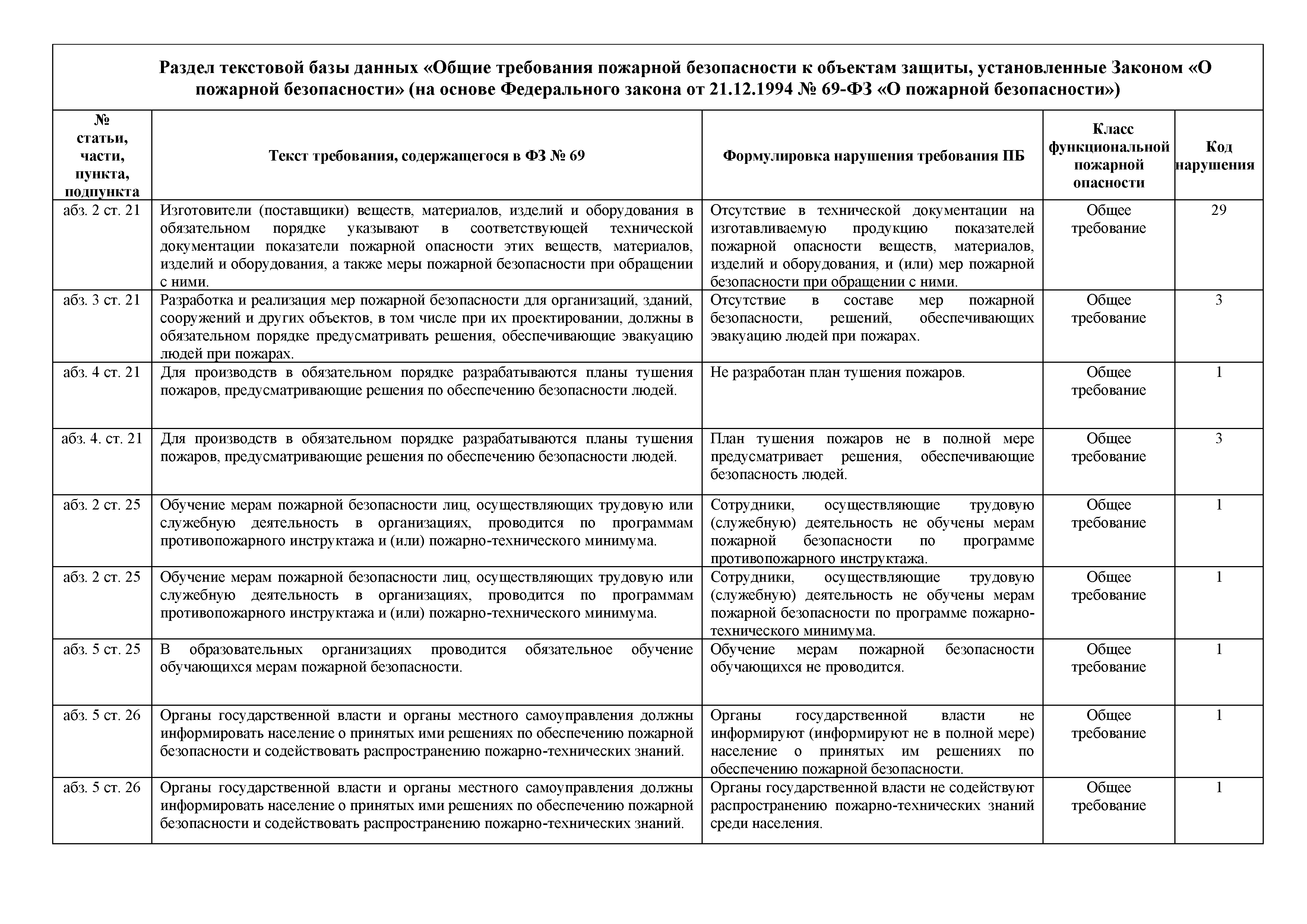 Текстовая база данных "Нарушения требований пожарной безопасности". ТБД "Нарушения требований ПБ"