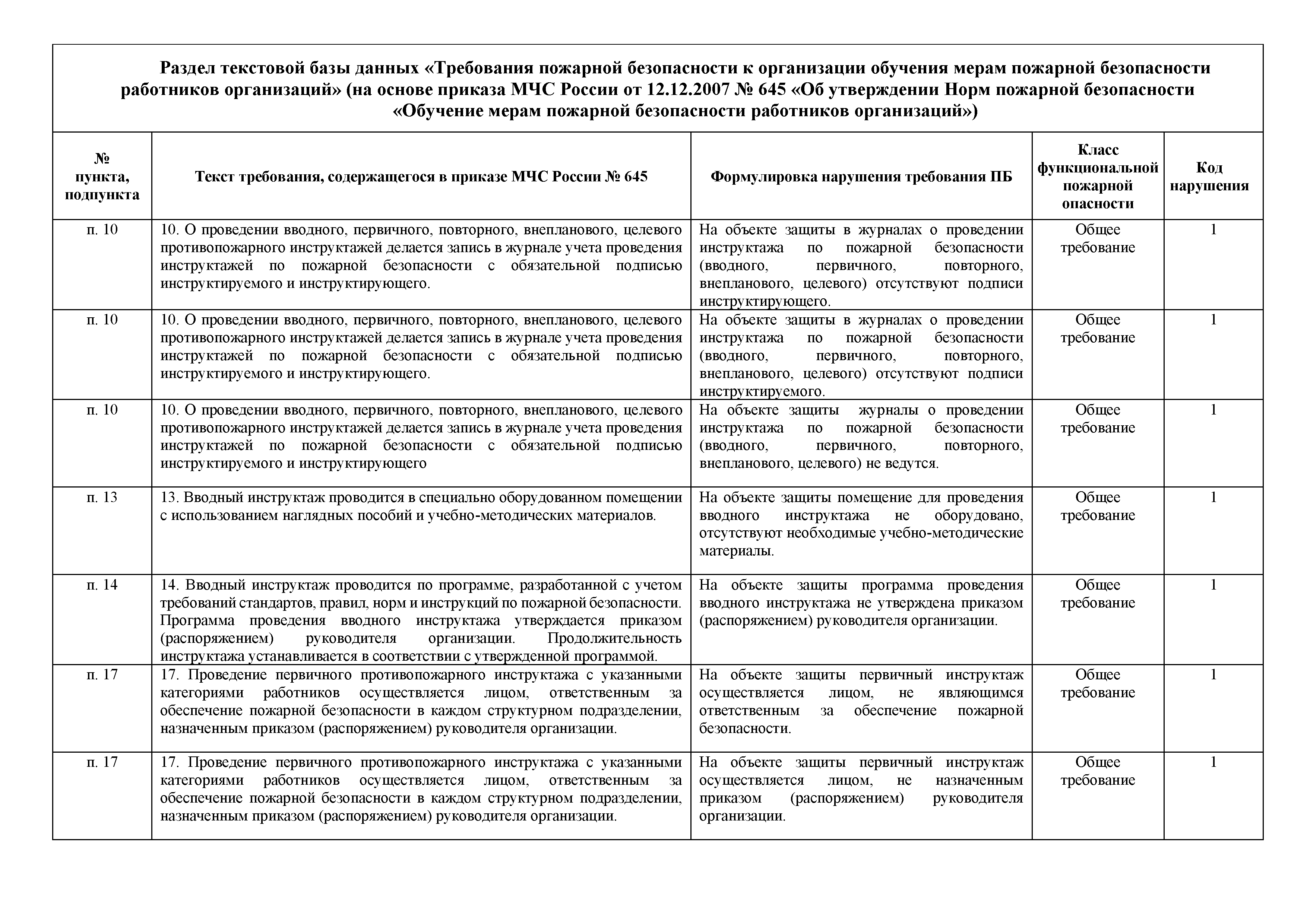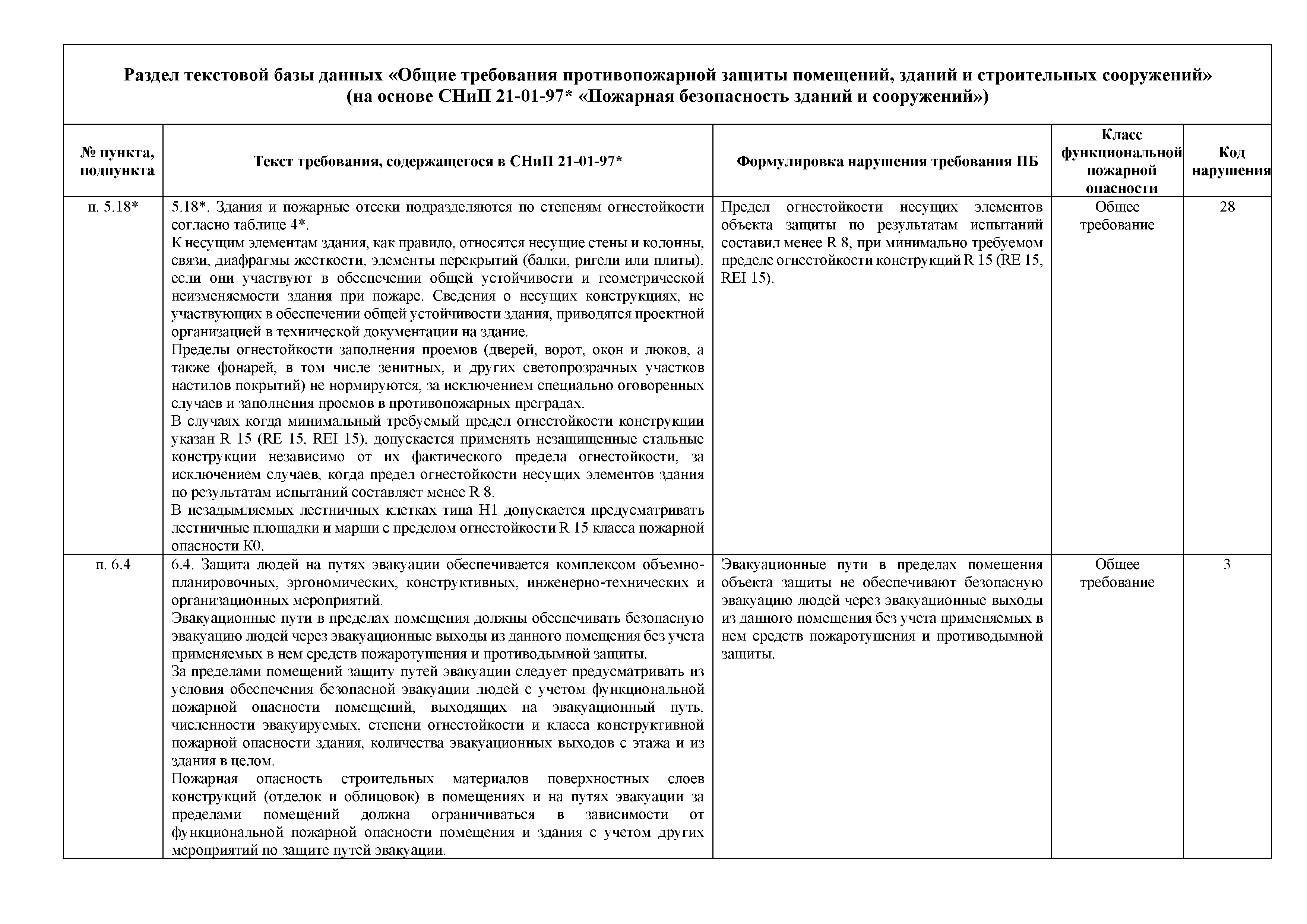 Скачать Текстовая база данных Нарушения требований пожарной безопасности. ТБД Нарушения требований ПБ
