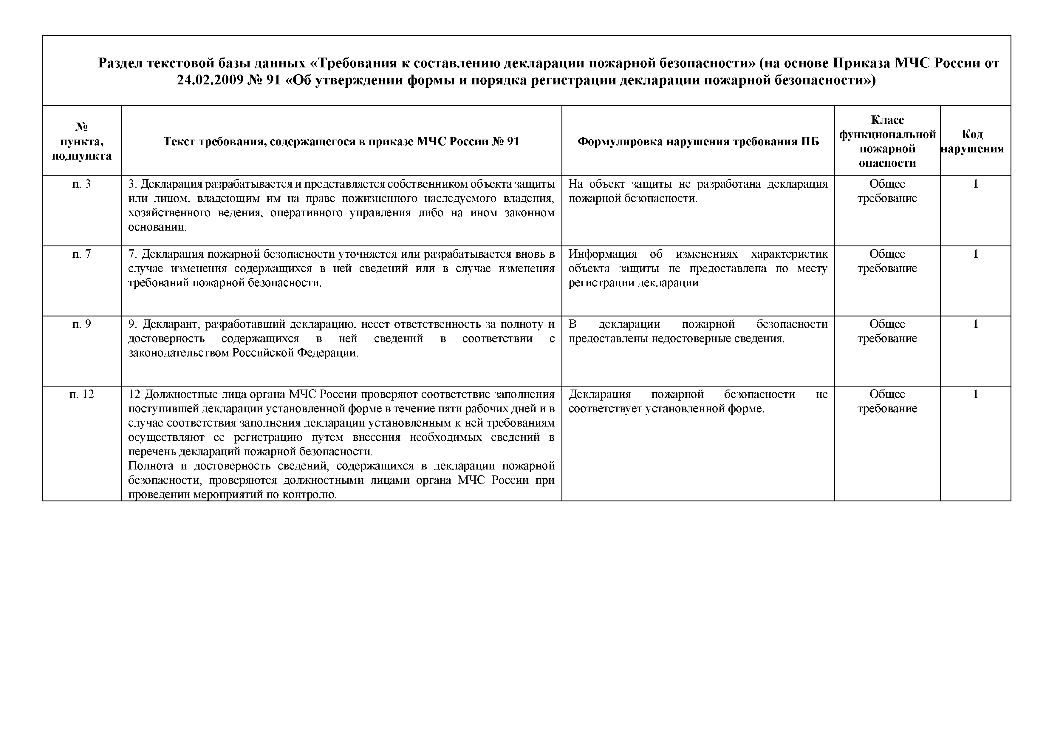 Приказ 91 «Об утверждении формы и порядка регистрации декларации пожарной безопасности»