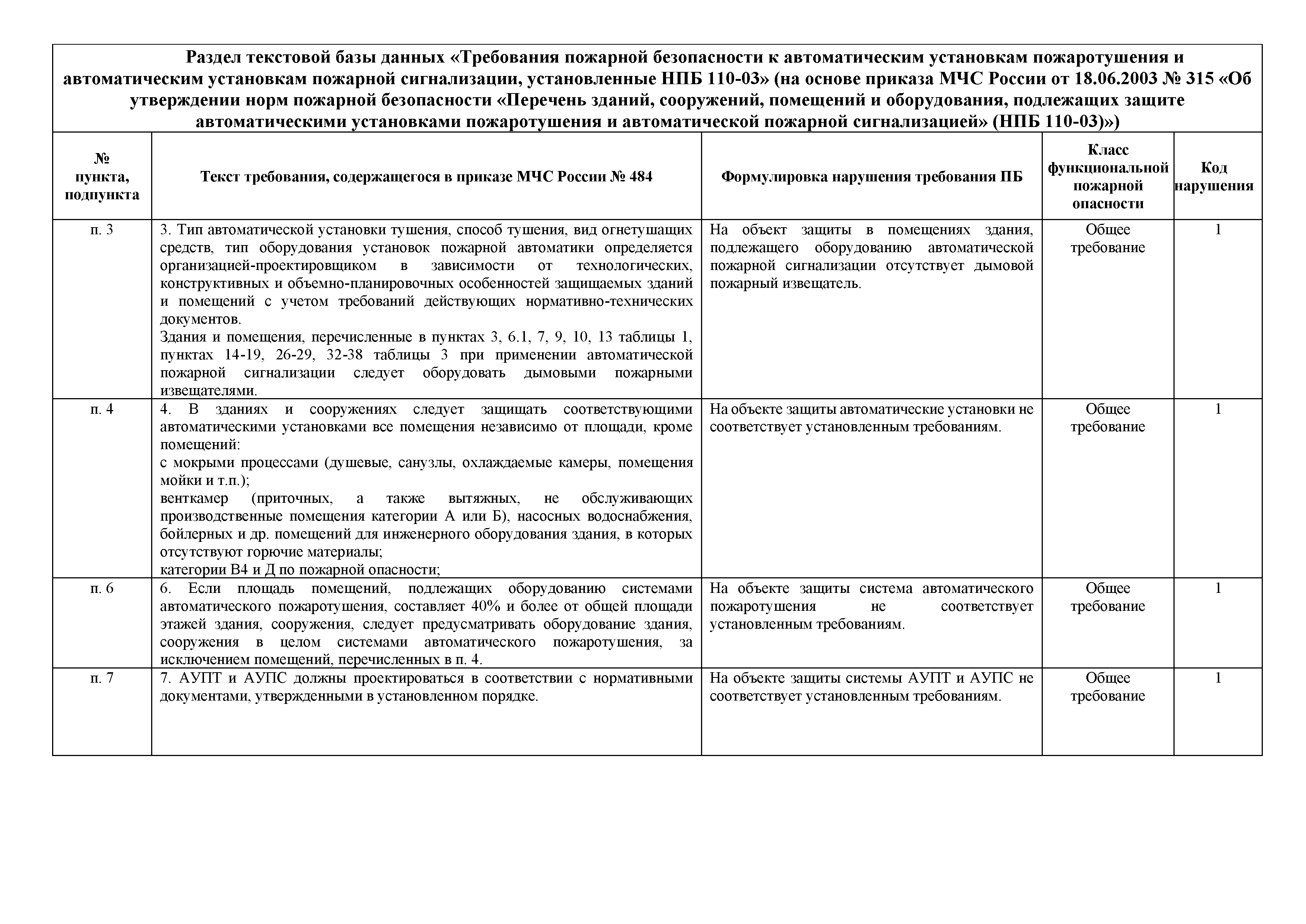 НПБ 110-03 «Перечень зданий, сооружений, помещений и оборудования, подлежащих защите автоматическими установками пожаротушения и автоматической пожарной сигнализацией»