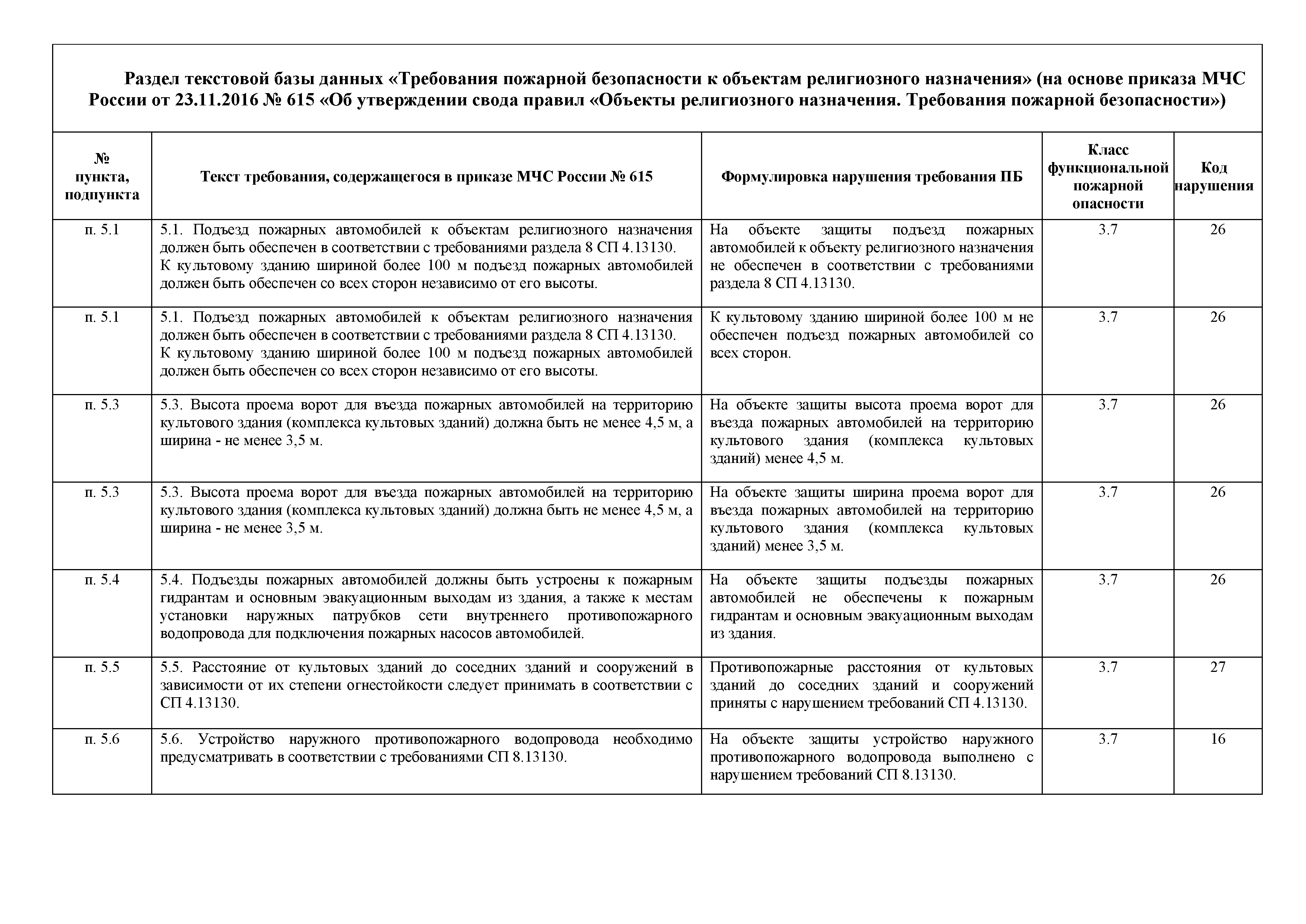 Приказ 615 «Об утверждении свода правил "Объекты религиозного назначения. Требования пожарной безопасности"»