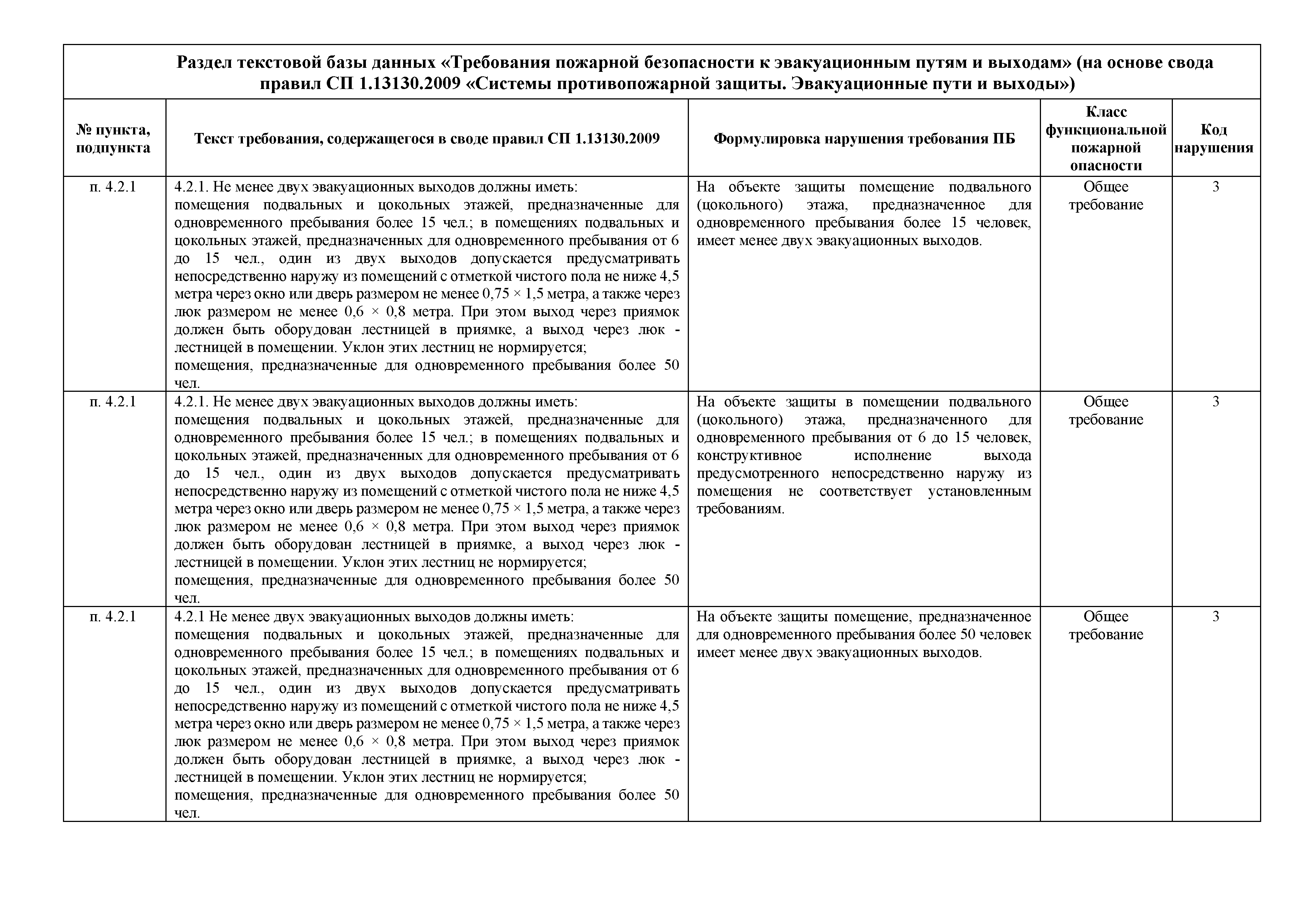 СП 1.13130.2009 «Системы противопожарной защиты. Эвакуационные пути и выходы»
