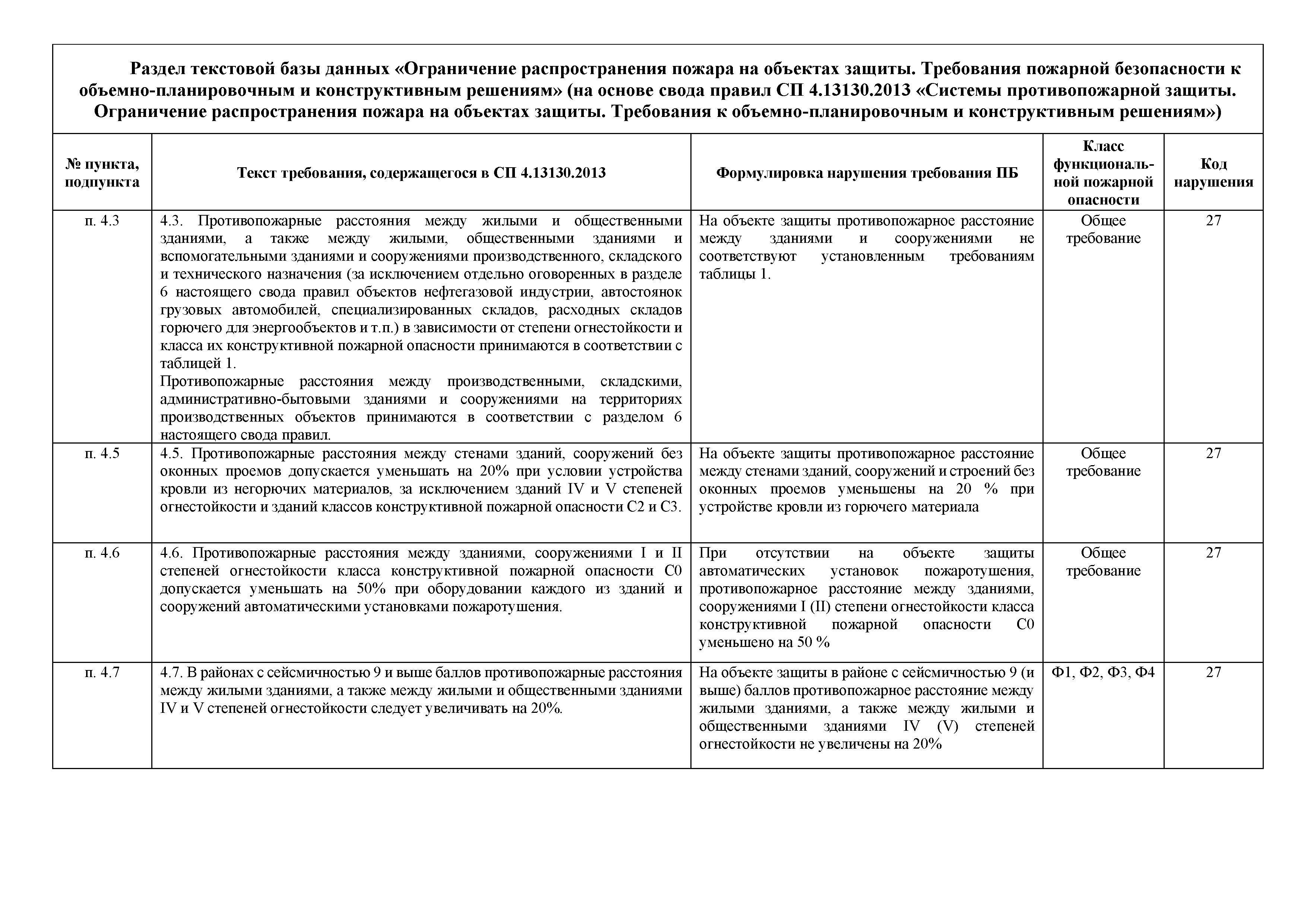СП 4.13130.2013 «Системы противопожарной защиты. Ограничение распространения пожара на объектах защиты. Требования к объемно-планировочным и конструктивным решениям»
