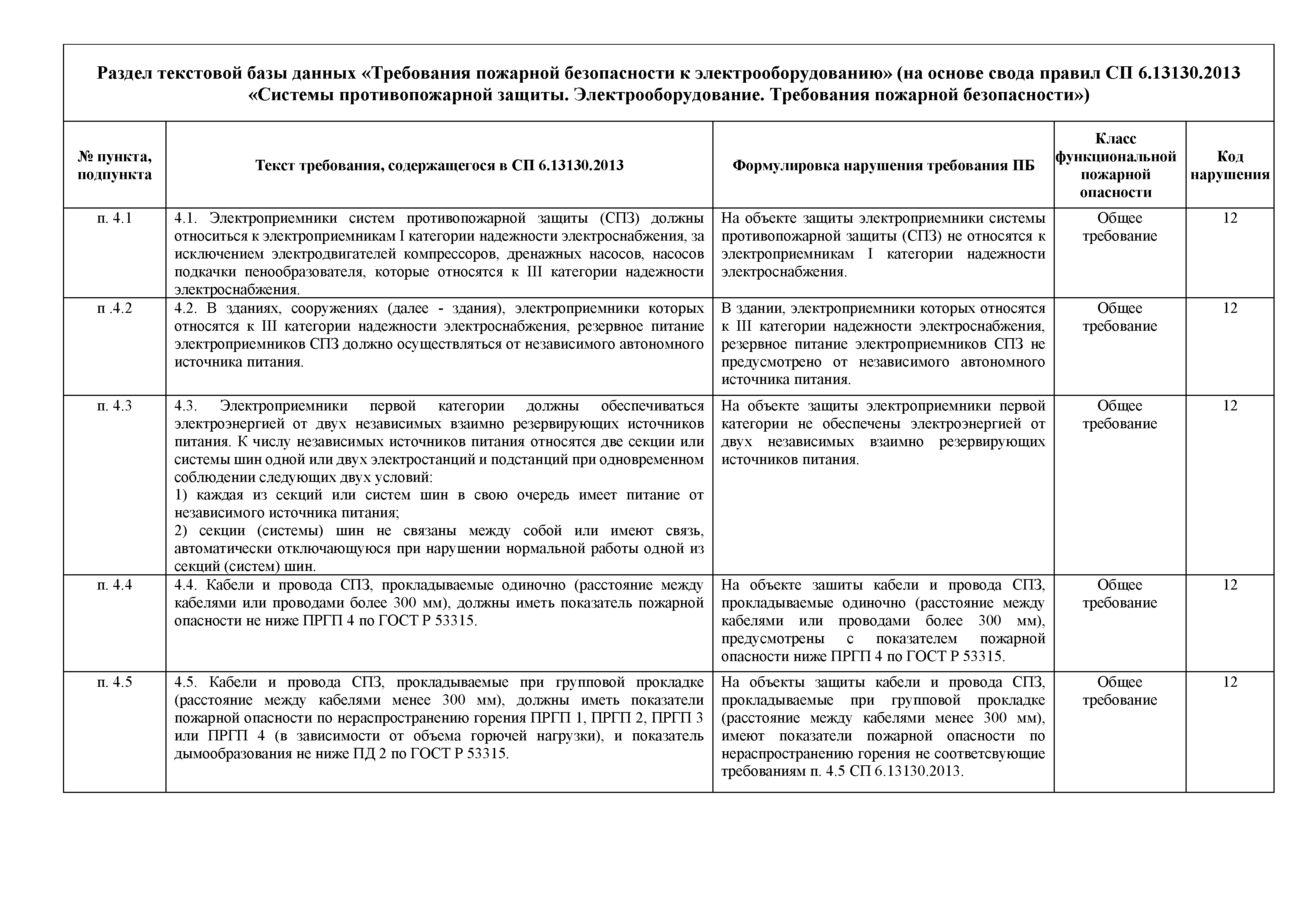 СП 6.13130.2009 «Системы противопожарной защиты. Электрооборудование. Требования пожарной безопасности»