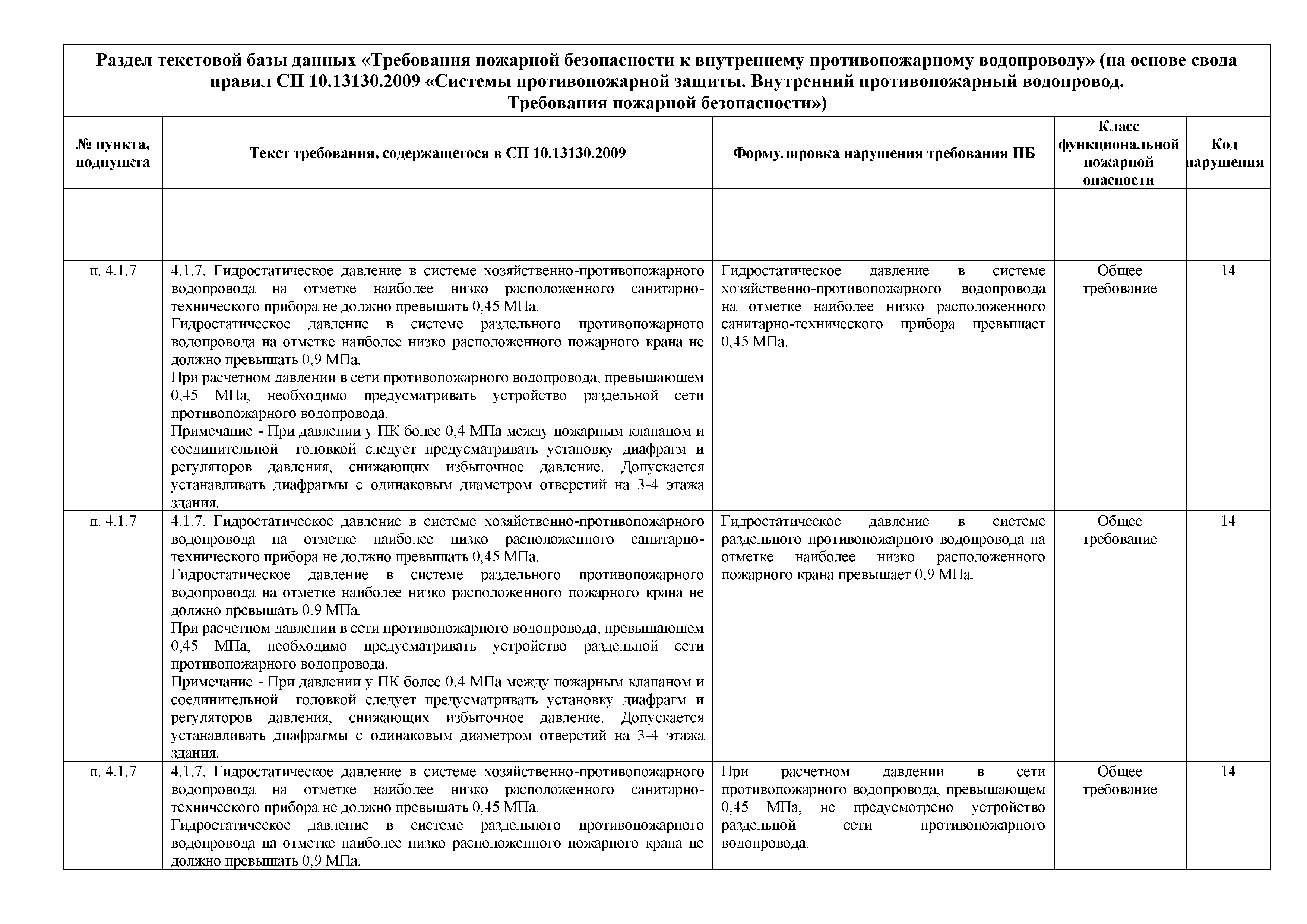 СП 10.13130.2009 «Системы противопожарной защиты. Внутренний противопожарный водопровод. Требования пожарной безопасности»