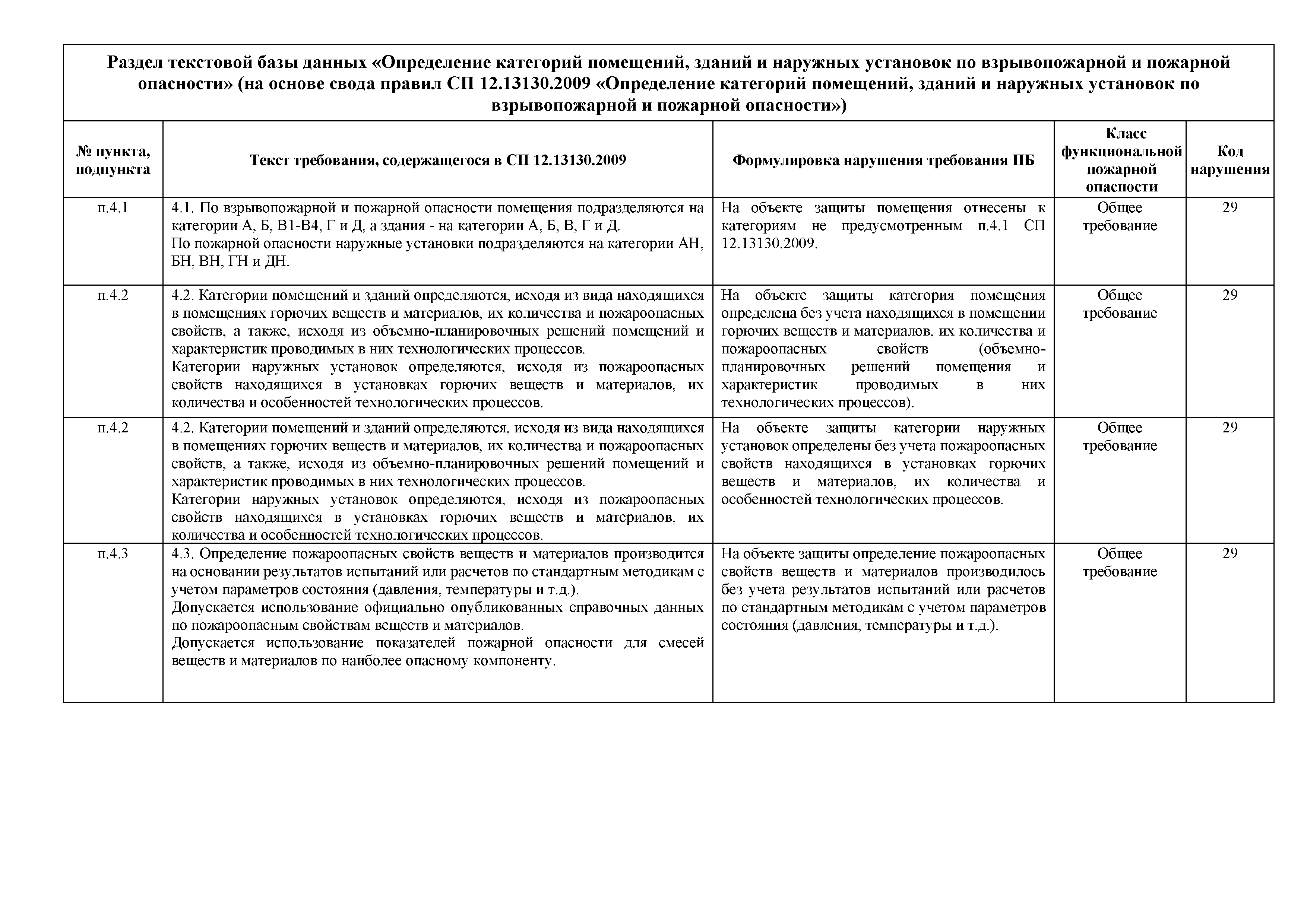 СП 12.13130.2009 «Определение категорий помещений, зданий и наружных установок по взрывопожарной и пожарной опасности»