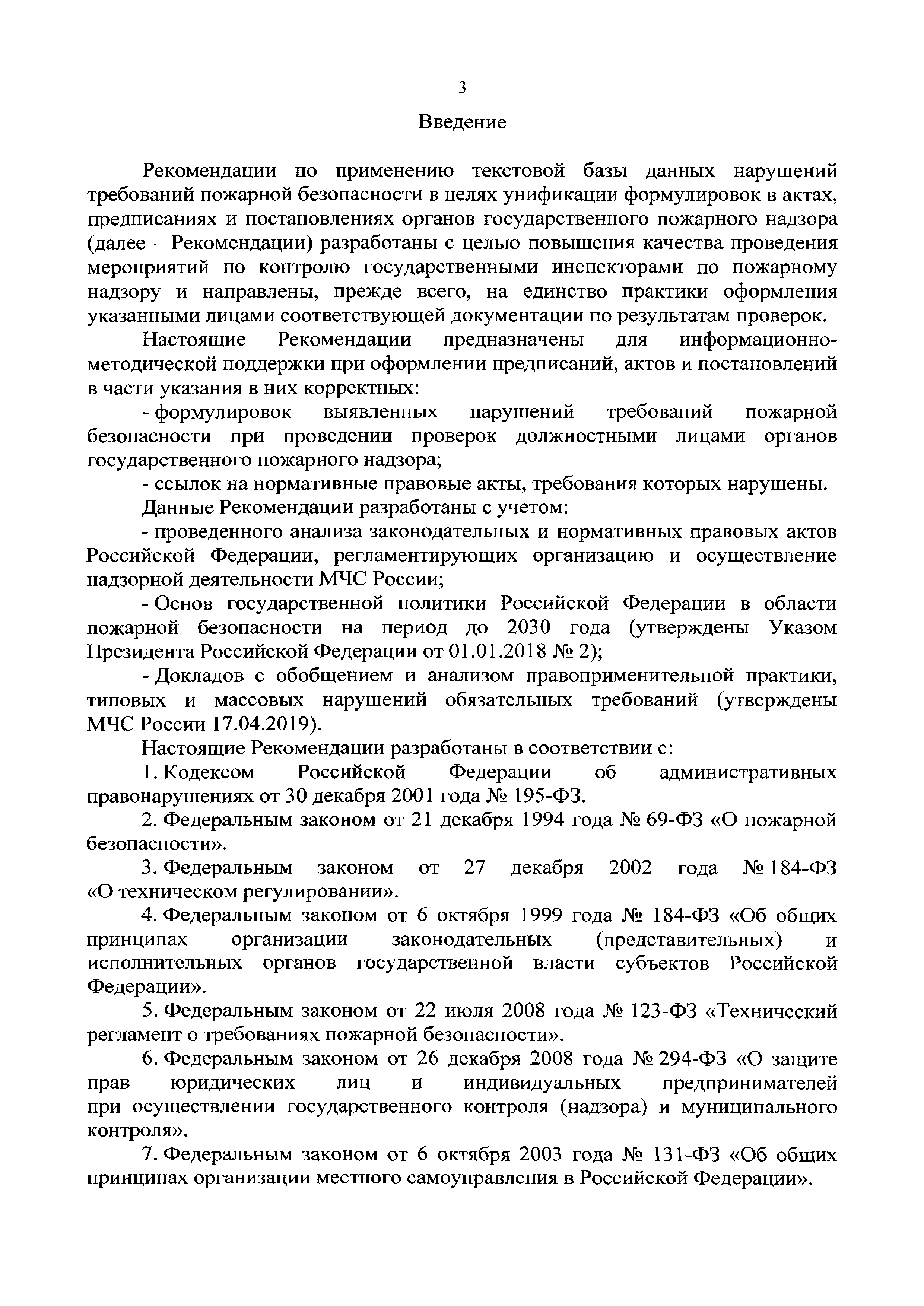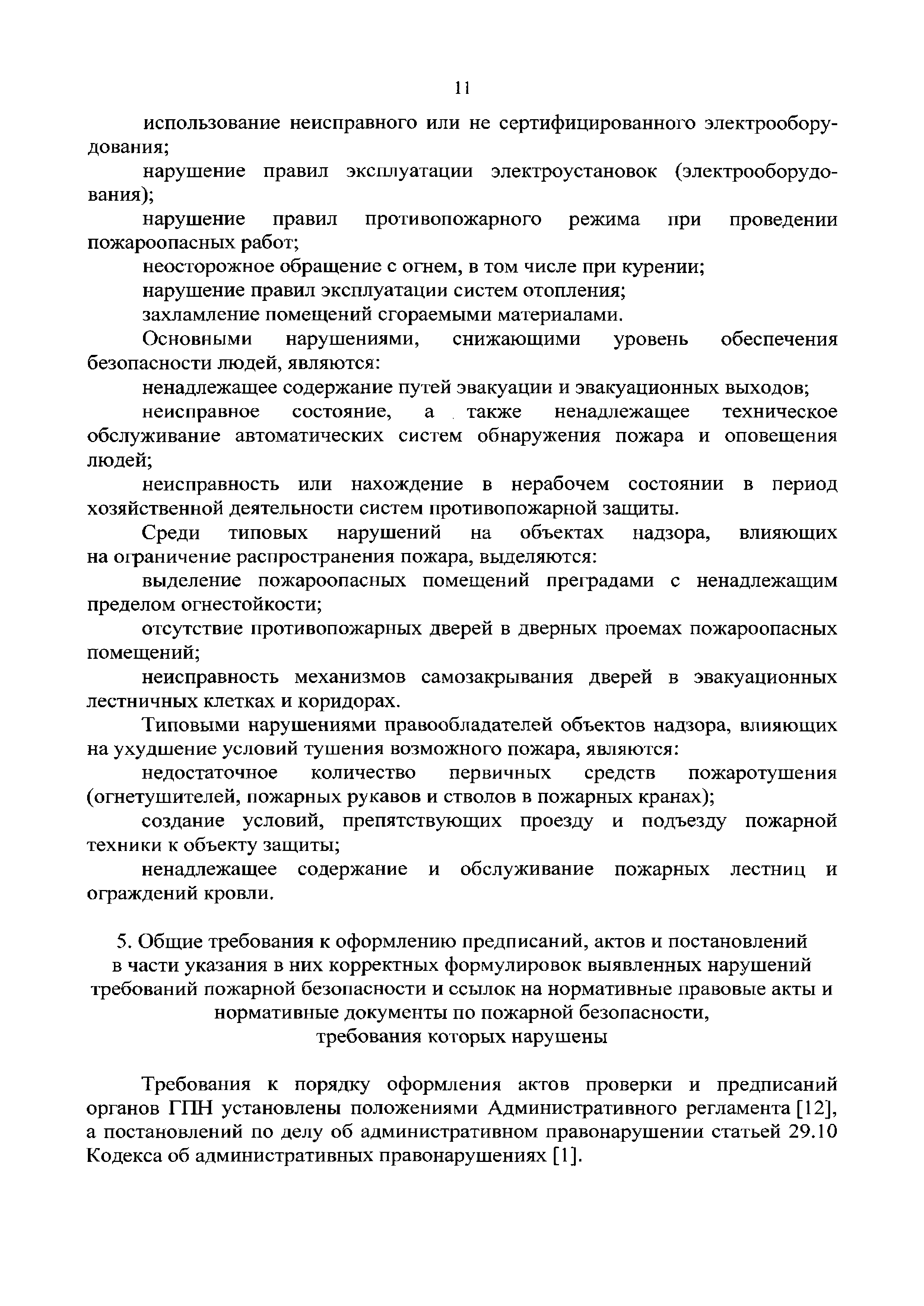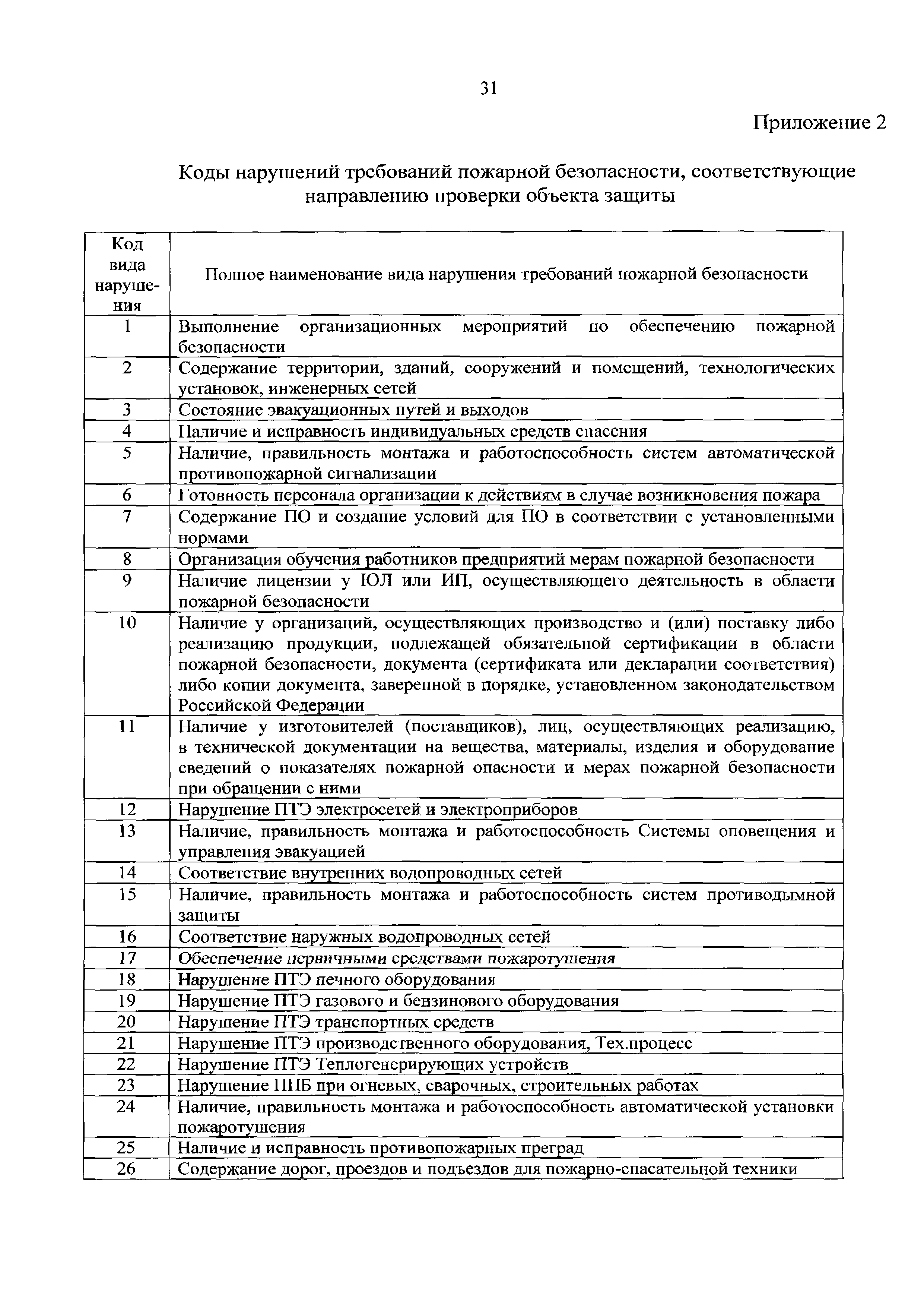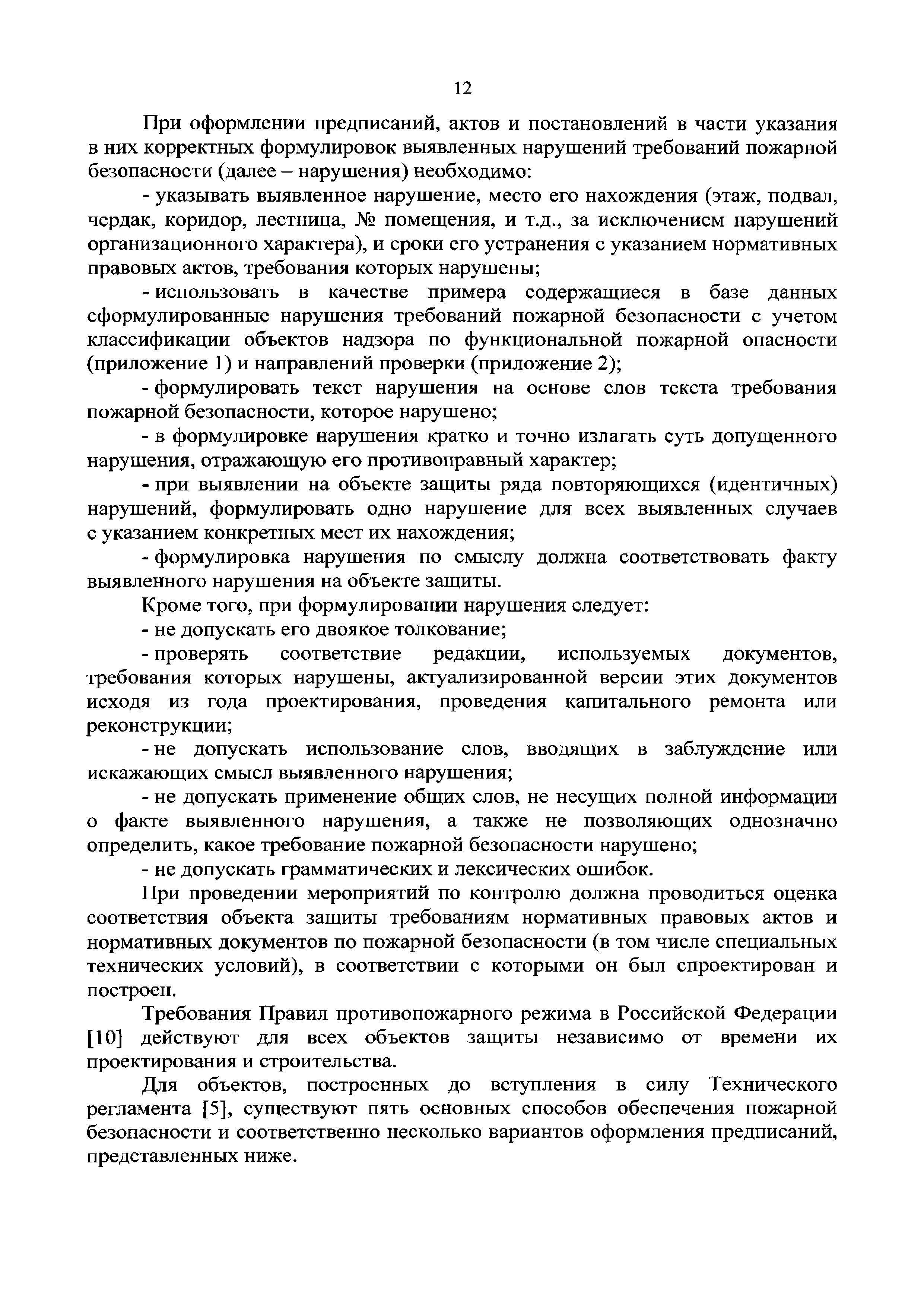 | Оглавление: | Введение 1 Термины и определения 2 Общие положения 3 Краткое описание текстовой базы данных "Нарушения требований пожарной безопасности" 4 Нарушения требований пожарной безопасности, наиболее часто выявляемые при проведении мероприятий по надзору 5 Общие требования к оформлению предписаний, актов и постановлений в части указания в них корректных формулировок выявленных нарушений требований пожарной безопасности и ссылок на нормативные правовые акты, требования которых нарушены 6 Ответственность за нарушения требований пожарной безопасности Список использованных источников Приложение 1. Классификация объектов надзора по функциональной пожарной опасности Приложение 2. Коды нарушений требований пожарной безопасности, соответствующие направлению проверки объекта защиты |