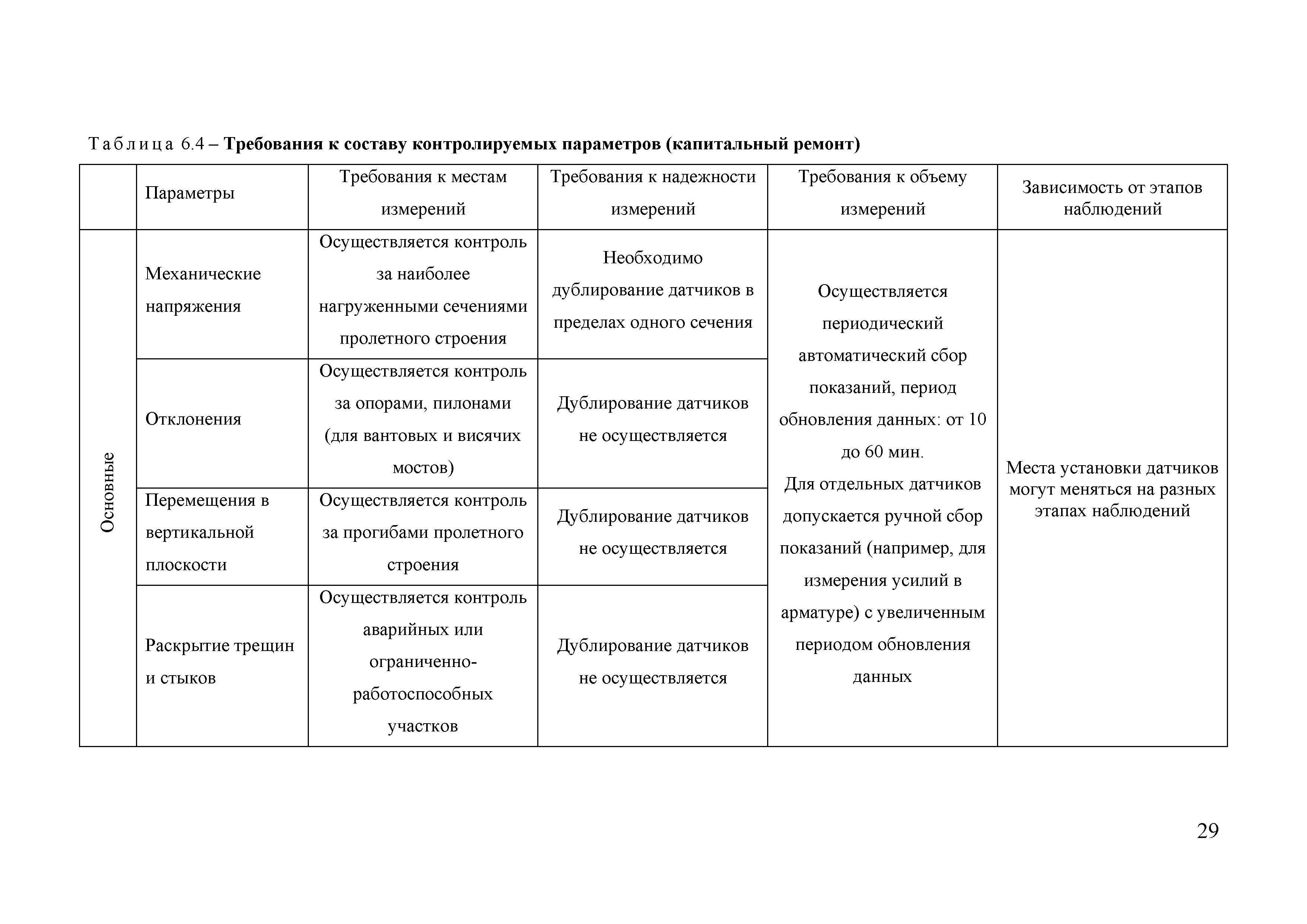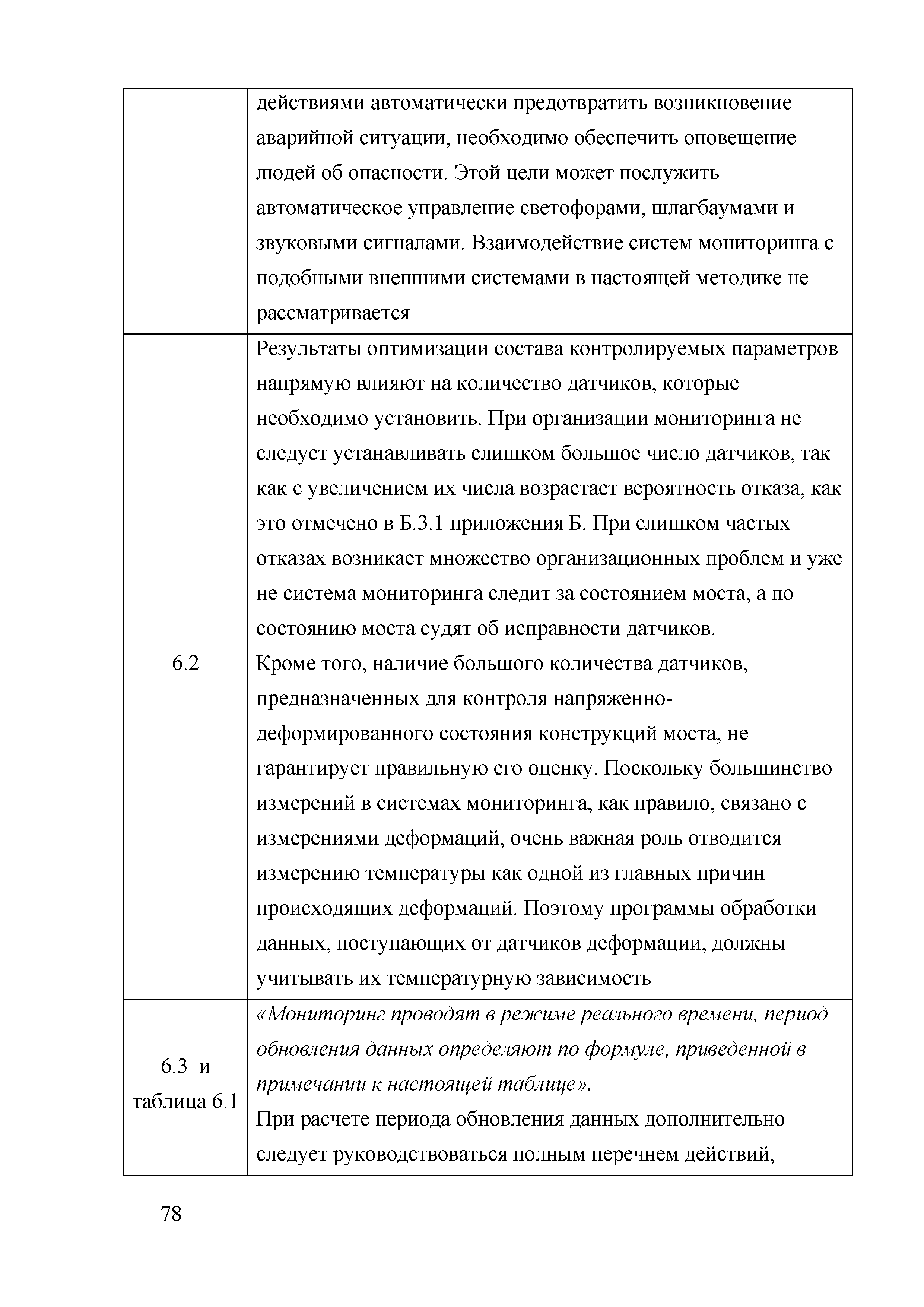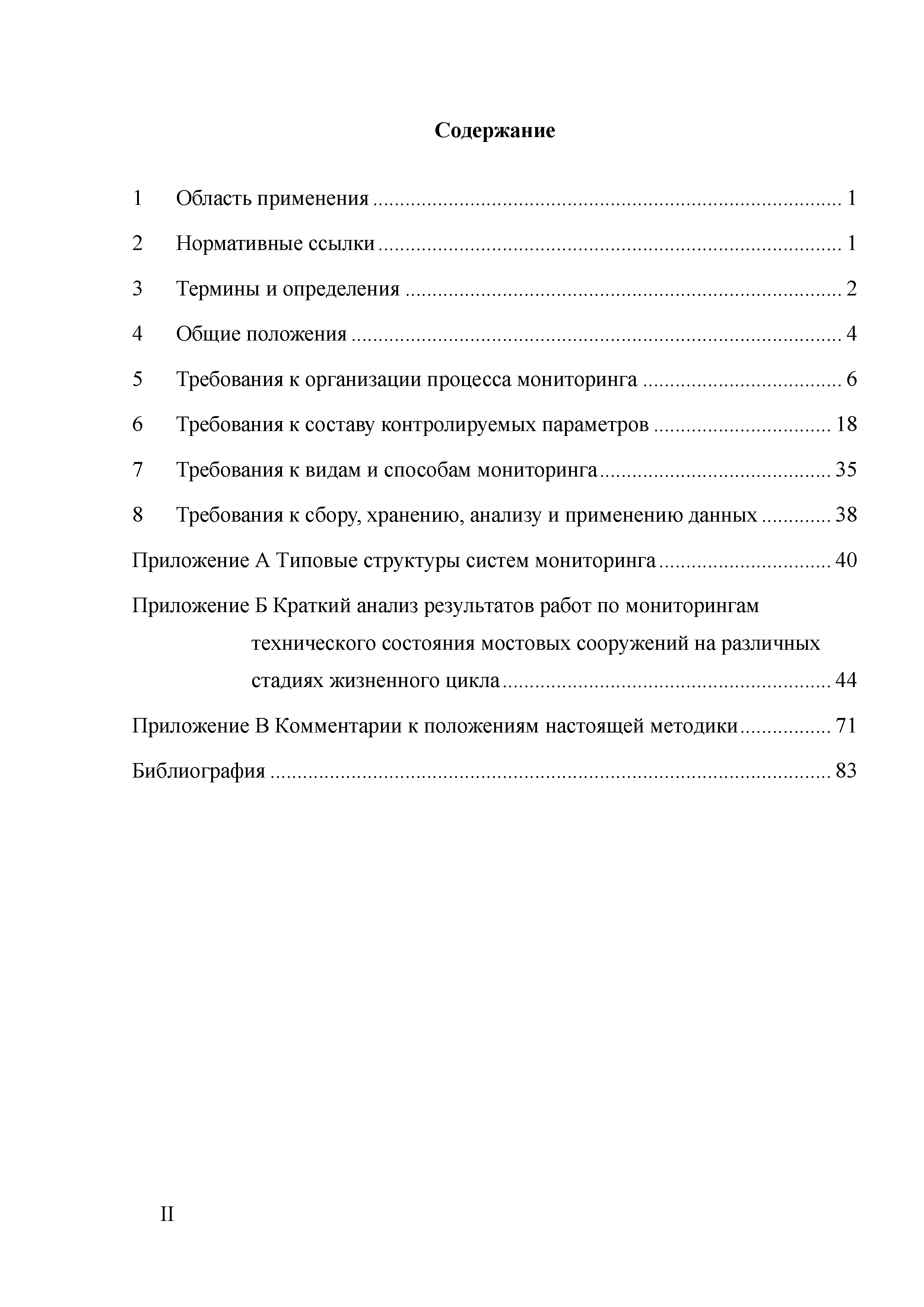 | Оглавление: | 1 Область применения 2 Нормативные ссылки 3 Термины и определения 4 Общие положения 5 Требования к организации процесса мониторинга 6 Требования к составу контролируемых параметров 7 Требования к видам и способам мониторинга 8 Требования к сбору, хранению, анализу и применению данных Приложение А Типовые структуры систем мониторинга Приложение Б Краткий анализ результатов работ по мониторингам технического состояния мостовых сооружений на различных стадиях жизненного цикла Приложение В Комментарии к положениям настоящей методики Библиография |