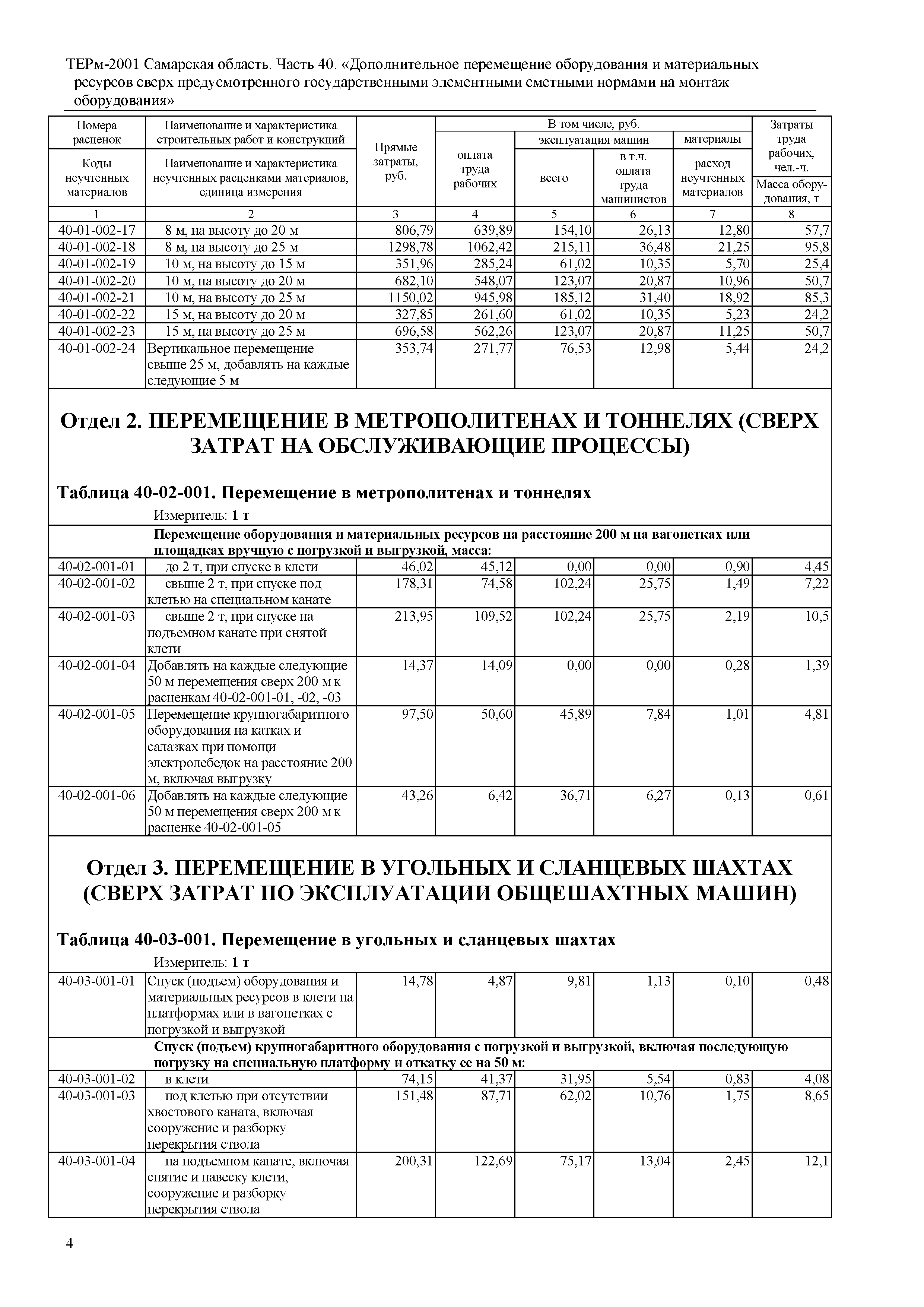 | Название рус.: | Часть 40. Дополнительное перемещение оборудования и материальных ресурсов сверх предусмотренного государственными элементными сметными нормами на монтаж оборудования. Территориальные единичные расценки на монтаж оборудования |
