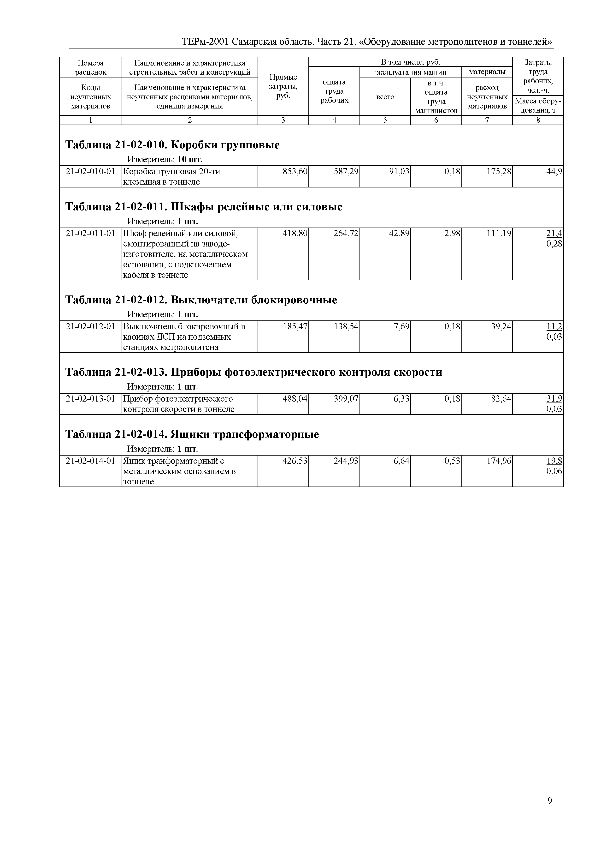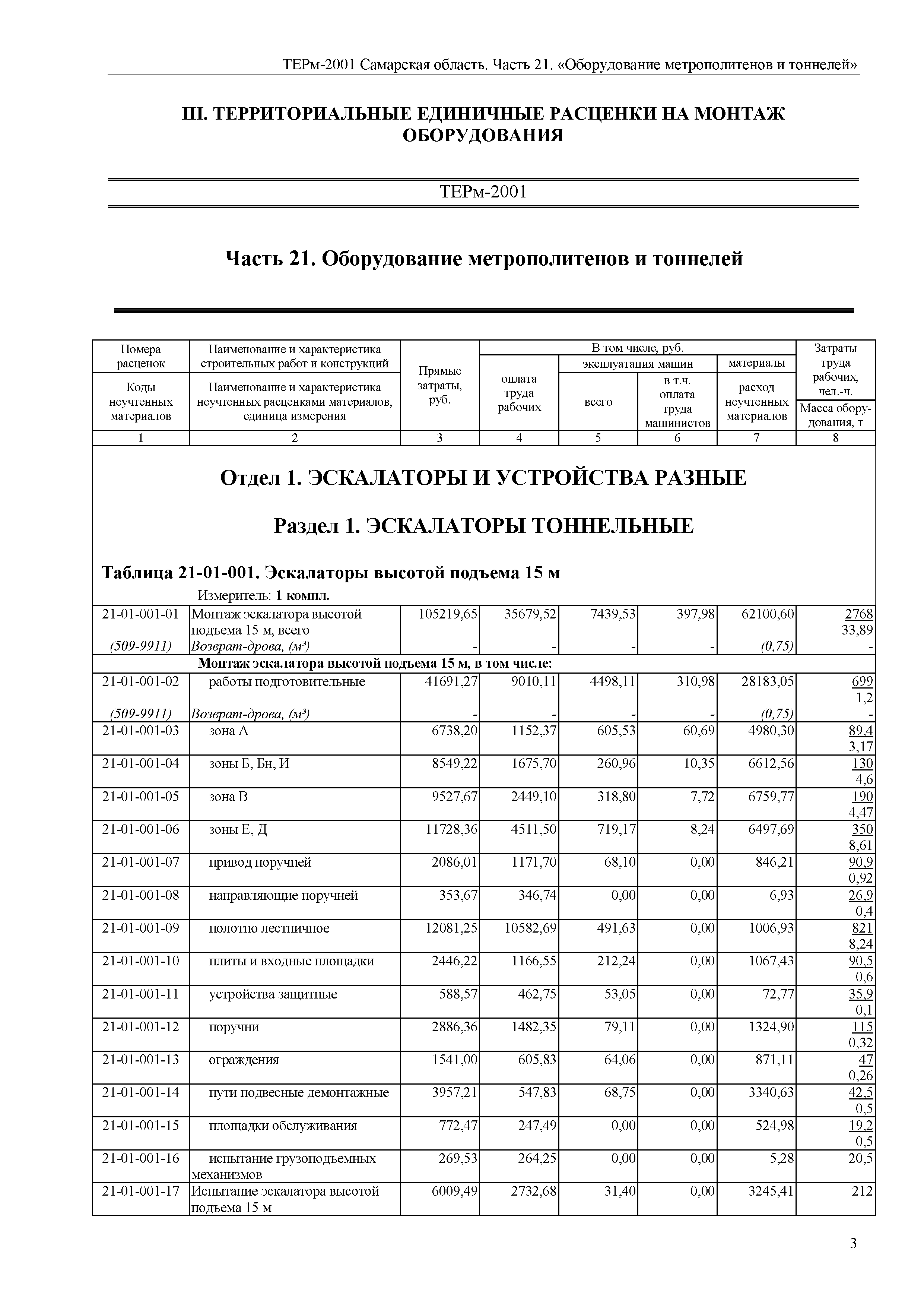 | Название рус.: | Часть 21. Оборудование метрополитенов и тоннелей. Территориальные единичные расценки на монтаж оборудования |