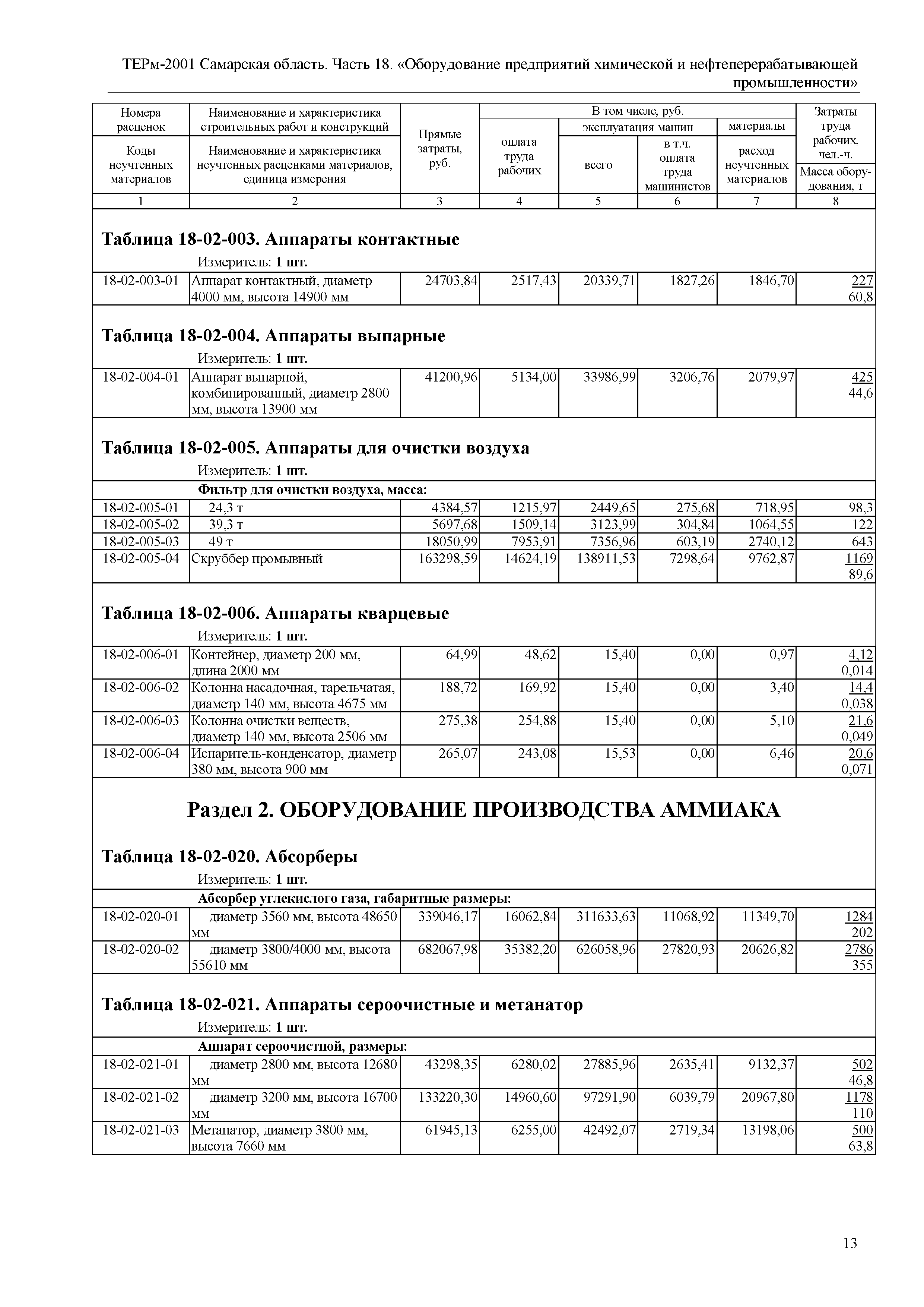| Оглавление: | Отдел 1. Оборудование общего назначения Раздел 1. Оборудование, поступающее в собранном виде Раздел 2. Оборудование, поступающее укрупненными блоками Раздел 3. Насадки Раздел 4. Разные работы Раздел 5. Воздухоохладители аммиачные и рассольные, постаментные и навесные Раздел 6. Стеклянная аппаратура Отдел 2. Оборудование отдельных производств химической промышленности Раздел 1. Оборудование предприятий азотной промышленности и продуктов органического синтеза Раздел 2. Оборудование производства аммиака Раздел 3. Оборудование предприятий по производству кислот, солей и минеральных удобрений Раздел 4. Оборудование предприятий содовой промышленности Раздел 5. Оборудование предприятий промышленности синтетического каучука и синтетического спирта Раздел 6. Оборудование предприятий резиновой промышленности Раздел 7. Оборудование предприятий хлорной промышленности Раздел 8. Оборудование предприятий промышленности пластических масс Раздел 9. Оборудование предприятий лакокрасочной промышленности Раздел 10. Оборудование предприятий горно-химической промышленности Отдел 3. Оборудование предприятий кислородной промышленности Раздел 1. Оборудование предприятий кислородной промышленности Раздел 2. Оборудование криогенных установок Раздел 3. Оборудование для производства аргона Раздел 4. Оборудование ацетиленовых установок Отдел 4. Оборудование химических цехов коксохимических заводов Отдел 5. Оборудование лесохимической промышленности Отдел 6. Оборудование для производства химических волокон Отдел 7. Оборудование предприятий микробиологической промышленности Раздел 1. Оборудование предприятий белково-витаминных концентратов, лизина и ферментов Отдел 8. Оборудование химико-фотографической промышленности Отдел 9. Оборудование автоматического химического пожаротушения |