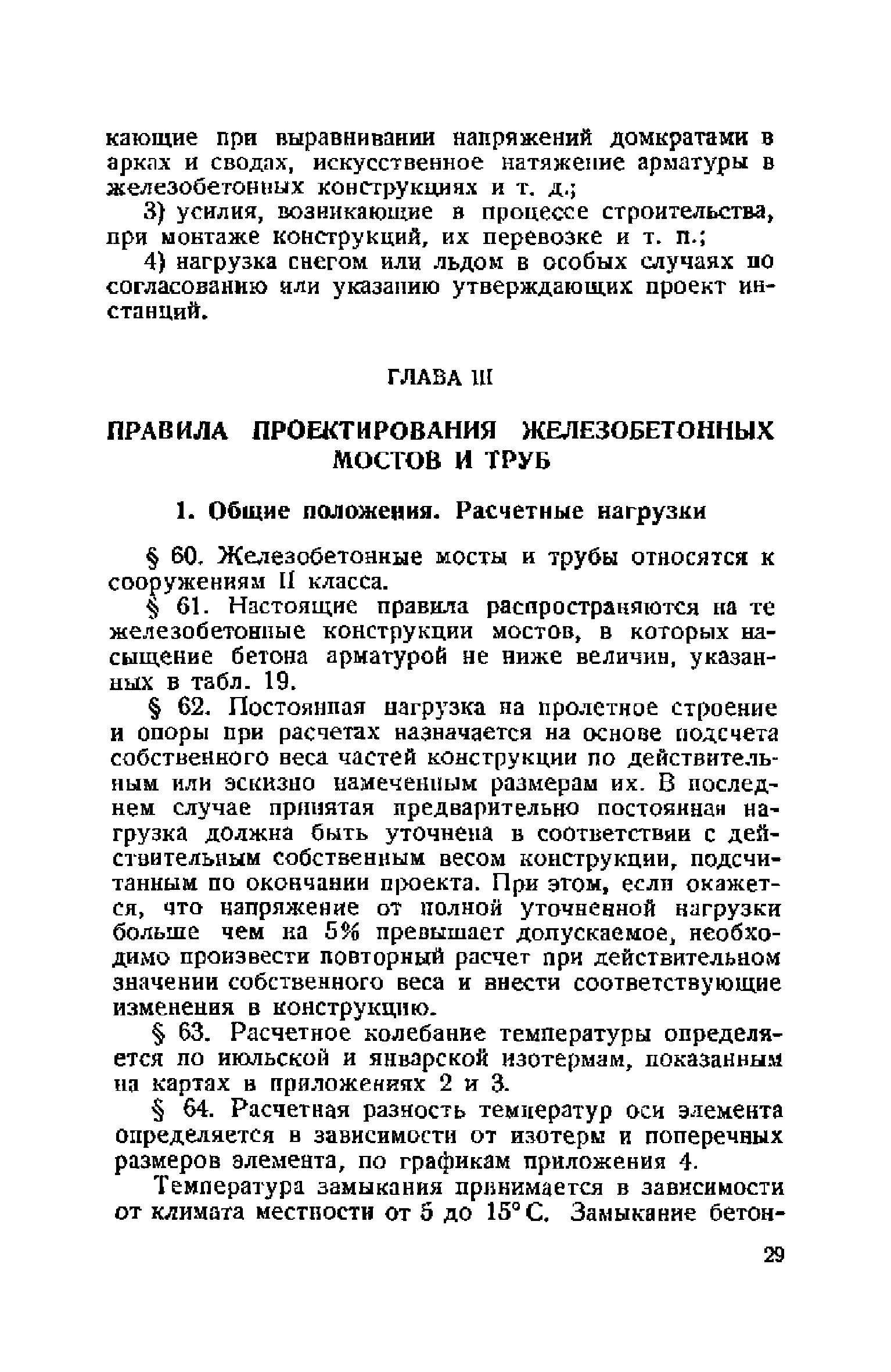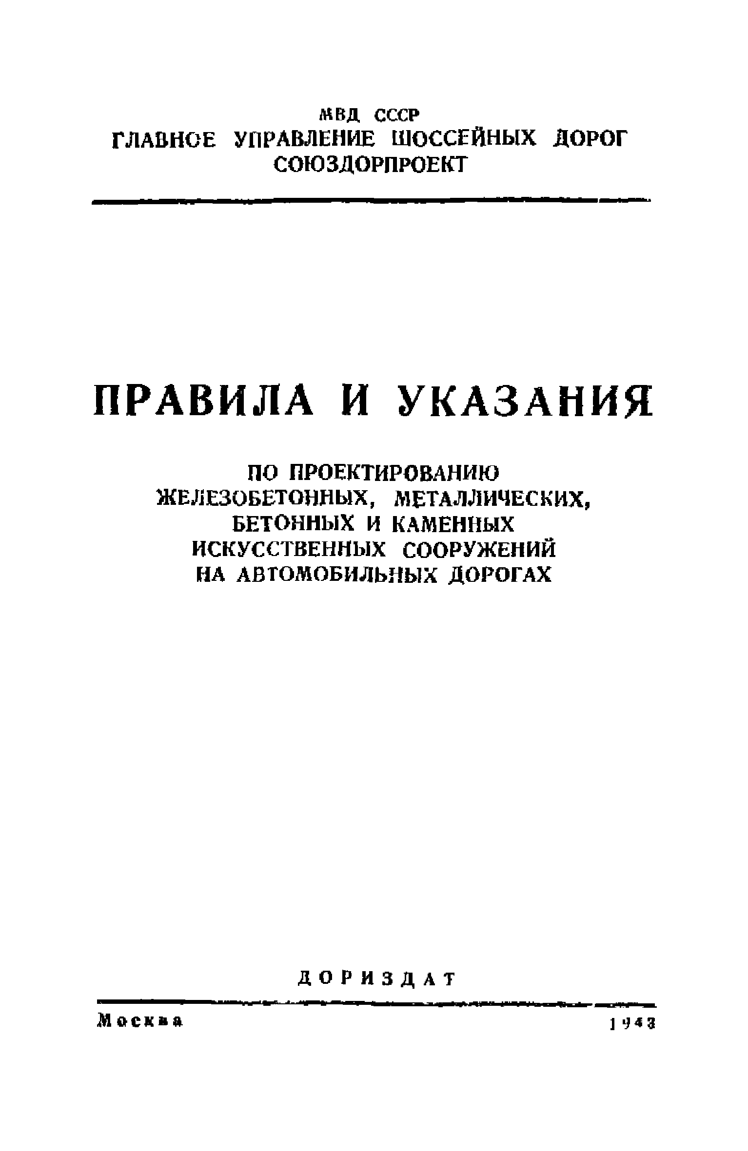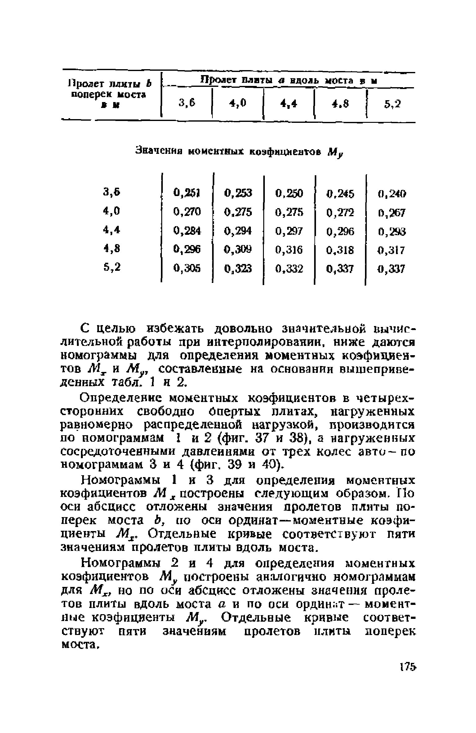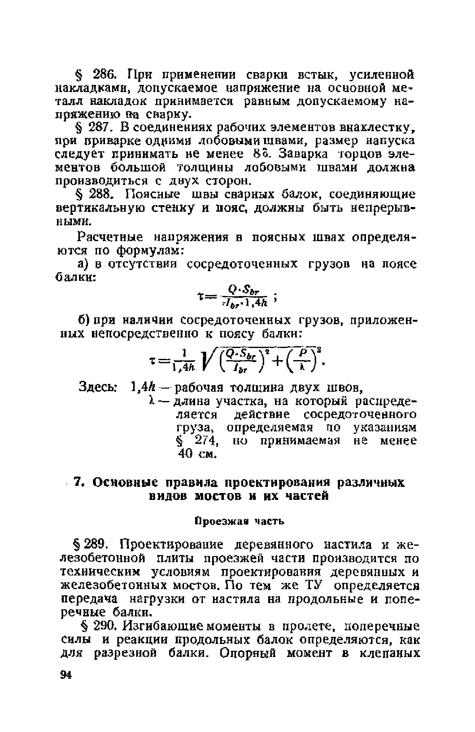 Правила и указания по проектированию железобетонных, металлических, бетонных и каменных искусственных сооружений на автомобильных дорогах| Статус: | не действует | | Название рус.: | Правила и указания по проектированию железобетонных, металлических, бетонных и каменных искусственных сооружений на автомобильных дорогах | | Дата добавления в базу: | 01.01.2021 | | Дата актуализации: | 01.01.2021 | | Область применения: | Документ рекомендуется к применению в организациях системы Гушосдора МВД СССР при проектировании строительства, реконструкции, восстановления, усиления и ремонта искуссственных сооружений | | Оглавление: | Глава I Габариты мостов Глава II Расчетные нагрузки 1. Основные и дополнительные силы 2. Временная вертикальная нагрузка 3. Давление ветра 4. Силы торможения и силы трения, возникающие в опорных частях 5. Сейсмические силы 6. Прочие нагрузки Глава III. Правила проектирования железобетонных мостов и труб 1. Общие положения. Расчетные нагрузки 2. Материалы 3. Допускаемые напряжения 4. Допускаемые прогибы 5. Расчет и конструкция отдельных элементов Плиты Балки Стойки Шарниры и опорные части 6. Основные правила проектирования различных видов мостов и их злементов Проезжая часть Балочные и рамные мосты Балочные мосты больших пролетов и сквозные фермы Арочные мосты Опоры железобетонных мостов Трубы Глава IV. Правила проектирования металлических мостов 1. Общие положения. Расчетные нагрузки 2. Материалы 3. Допускаемые напряжения 4. Допускаемые прогибы 5. Расчет и конструкция отдельных элементов Общие конструктивные и расчетные требования Растянутые стержни Сжатые и сжато-изогнутые стержни Балки 6. Расчет и конструкция соединений элементов Заклепочкые и болтовые соединения Сварные соединения 7. Основные правила проектирования различных видов мостов и их частей Проезжая часть Связи балочных мостов Сквозные фермы Опорные части Арочные пролетные строения Висячне мосты Глава V Правила проектирования каменных сооружений 1. Общие положения 2. Материалы Бетонные конструкции Каменные конструкции 3. Допускаемые напряжения 4. Каменные опоры Общие правила для быков и устоев Устои Быки 5. Каменные мосты 6.Трубы 7. Подпорные стенки Глава VI Правила проектирования фундаментов искусственных сооружений 1. Общие положения. Геологические изыскания 2. Допускаемые давления 3. Неглубокие фундаменты на естественном основании 4. Фундаменты на сваях 5. Глубокие фундаменты Глава VII Правила проектирования деревянных вспомогательных конструкций временного назначения при возведении искусственных сооружений на автомобильных дорогах 1. Общие положения 2. Материалы и допускаемые напряжения 3. Допускаемые прогибы и строительный подъем 4. Расчетные нагрузки 5. Общие указания по расчету н конструированию 6. Общие правила проектирования опалубки железобетонных конструкций 7. Общие правила проектирования кружал для арочных мостов Приложение 1. Таблица комбинаций сил торможения и трения, учитываемые при расчете опор наиболее употребительных схем железобетонных мостов Приложение 2. Карта июльских изотерм Приложение 3. Карта январских изотерм Приложение 4. Графики для определения расчетных температур железобетонных, бетонных и каменных элементов прямоугольного сечения Приложение 5. Таблицы для расчета опертых по контуру плит (проф. Галеркина) Приложение 6. Таблицы
