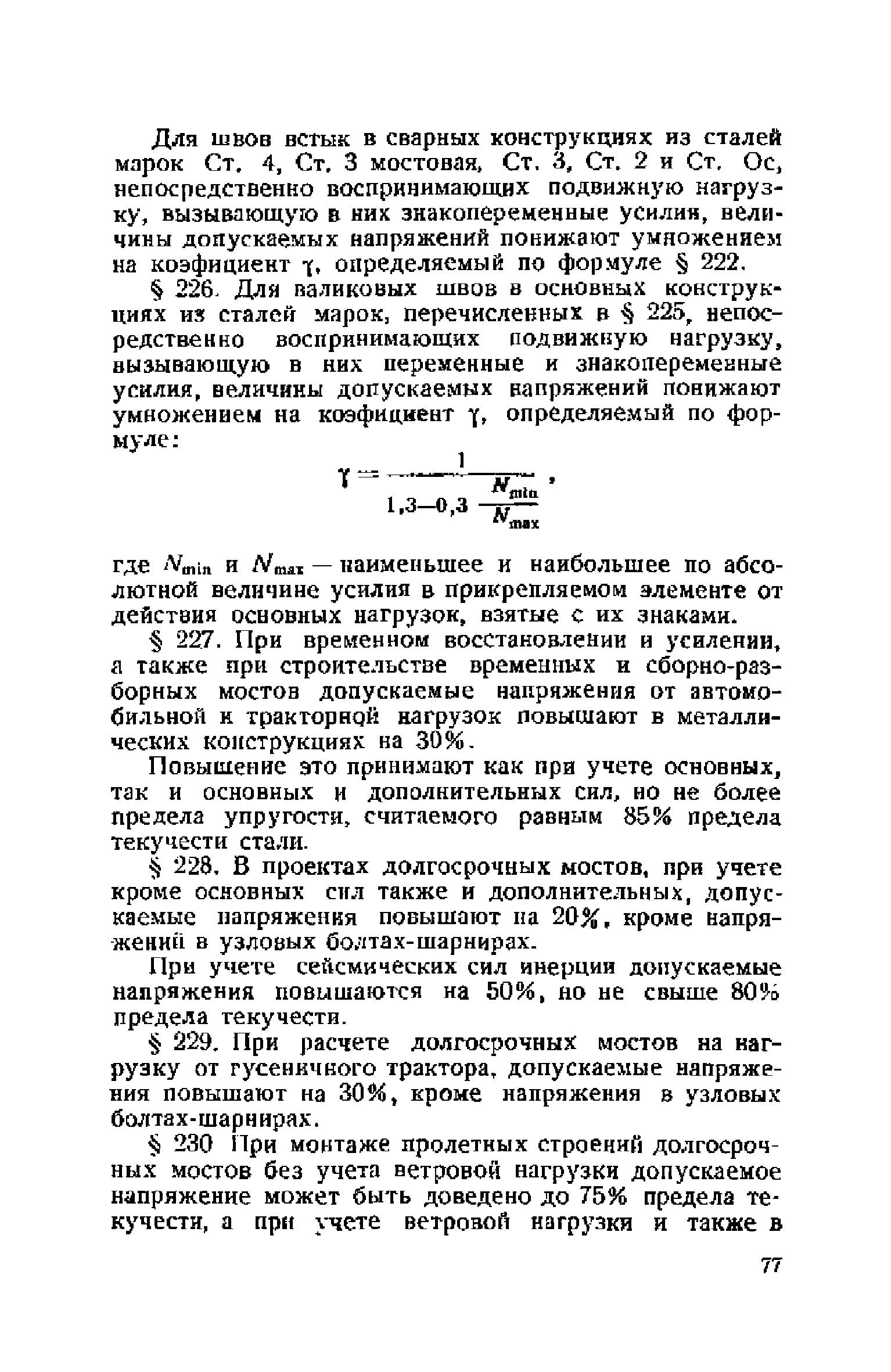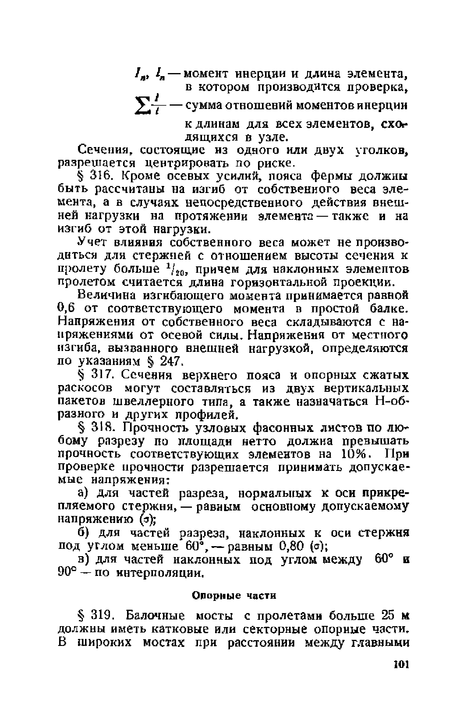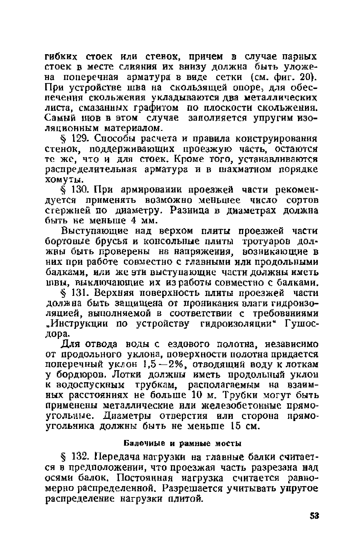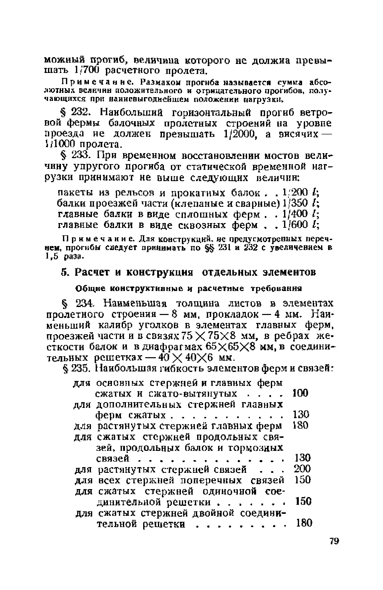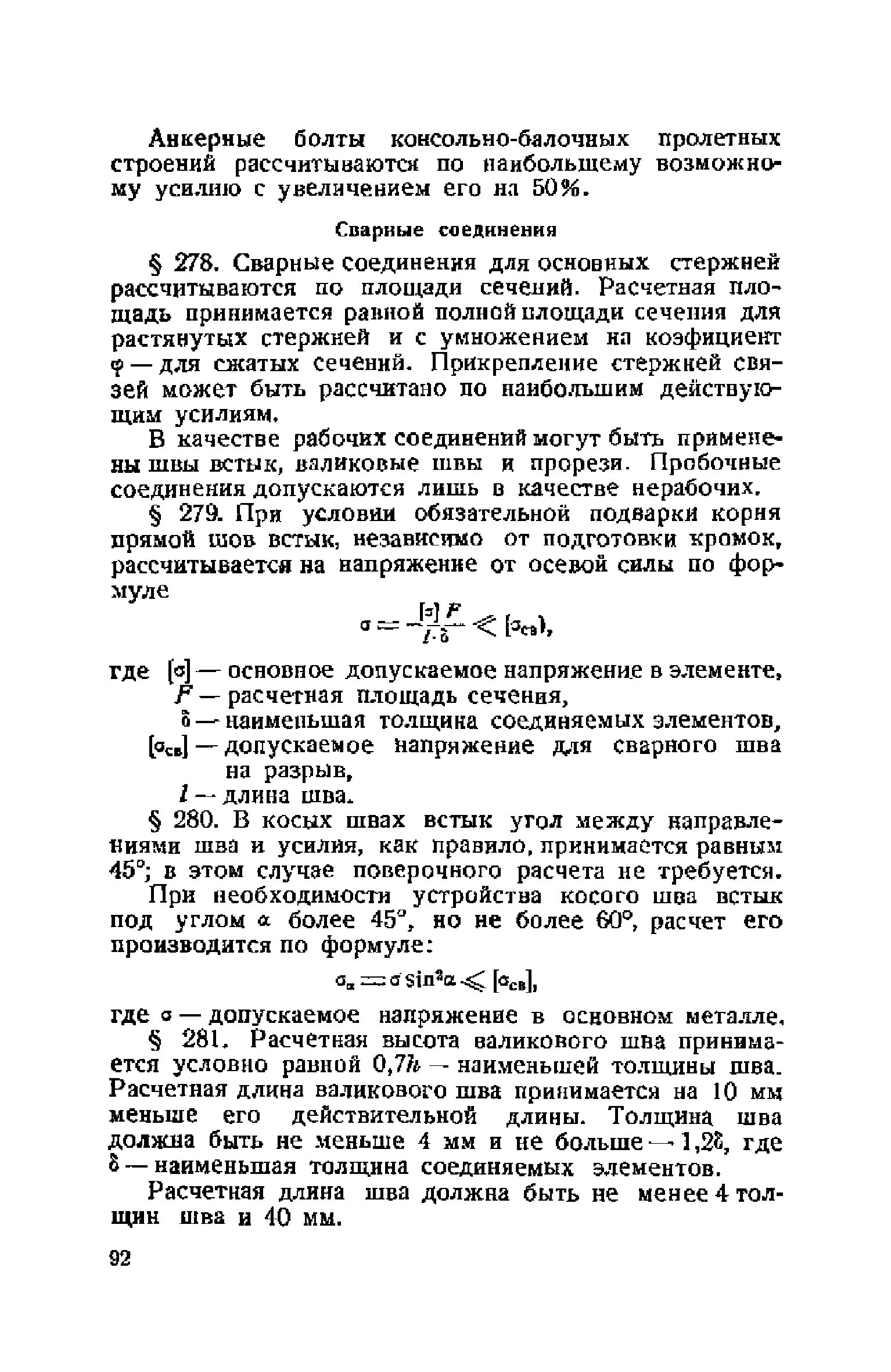 Правила и указания по проектированию железобетонных, металлических, бетонных и каменных искусственных сооружений на автомобильных дорогах| Статус: | не действует | | Название рус.: | Правила и указания по проектированию железобетонных, металлических, бетонных и каменных искусственных сооружений на автомобильных дорогах | | Дата добавления в базу: | 01.01.2021 | | Дата актуализации: | 01.01.2021 | | Область применения: | Документ рекомендуется к применению в организациях системы Гушосдора МВД СССР при проектировании строительства, реконструкции, восстановления, усиления и ремонта искуссственных сооружений | | Оглавление: | Глава I Габариты мостов Глава II Расчетные нагрузки 1. Основные и дополнительные силы 2. Временная вертикальная нагрузка 3. Давление ветра 4. Силы торможения и силы трения, возникающие в опорных частях 5. Сейсмические силы 6. Прочие нагрузки Глава III. Правила проектирования железобетонных мостов и труб 1. Общие положения. Расчетные нагрузки 2. Материалы 3. Допускаемые напряжения 4. Допускаемые прогибы 5. Расчет и конструкция отдельных элементов Плиты Балки Стойки Шарниры и опорные части 6. Основные правила проектирования различных видов мостов и их злементов Проезжая часть Балочные и рамные мосты Балочные мосты больших пролетов и сквозные фермы Арочные мосты Опоры железобетонных мостов Трубы Глава IV. Правила проектирования металлических мостов 1. Общие положения. Расчетные нагрузки 2. Материалы 3. Допускаемые напряжения 4. Допускаемые прогибы 5. Расчет и конструкция отдельных элементов Общие конструктивные и расчетные требования Растянутые стержни Сжатые и сжато-изогнутые стержни Балки 6. Расчет и конструкция соединений элементов Заклепочкые и болтовые соединения Сварные соединения 7. Основные правила проектирования различных видов мостов и их частей Проезжая часть Связи балочных мостов Сквозные фермы Опорные части Арочные пролетные строения Висячне мосты Глава V Правила проектирования каменных сооружений 1. Общие положения 2. Материалы Бетонные конструкции Каменные конструкции 3. Допускаемые напряжения 4. Каменные опоры Общие правила для быков и устоев Устои Быки 5. Каменные мосты 6.Трубы 7. Подпорные стенки Глава VI Правила проектирования фундаментов искусственных сооружений 1. Общие положения. Геологические изыскания 2. Допускаемые давления 3. Неглубокие фундаменты на естественном основании 4. Фундаменты на сваях 5. Глубокие фундаменты Глава VII Правила проектирования деревянных вспомогательных конструкций временного назначения при возведении искусственных сооружений на автомобильных дорогах 1. Общие положения 2. Материалы и допускаемые напряжения 3. Допускаемые прогибы и строительный подъем 4. Расчетные нагрузки 5. Общие указания по расчету н конструированию 6. Общие правила проектирования опалубки железобетонных конструкций 7. Общие правила проектирования кружал для арочных мостов Приложение 1. Таблица комбинаций сил торможения и трения, учитываемые при расчете опор наиболее употребительных схем железобетонных мостов Приложение 2. Карта июльских изотерм Приложение 3. Карта январских изотерм Приложение 4. Графики для определения расчетных температур железобетонных, бетонных и каменных элементов прямоугольного сечения Приложение 5. Таблицы для расчета опертых по контуру плит (проф. Галеркина) Приложение 6. Таблицы