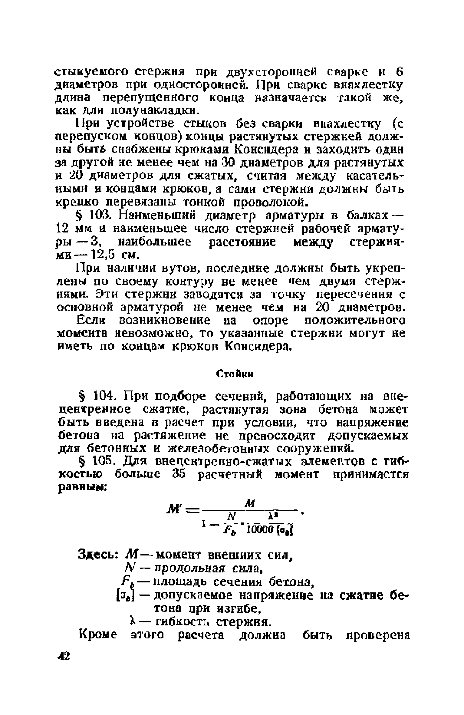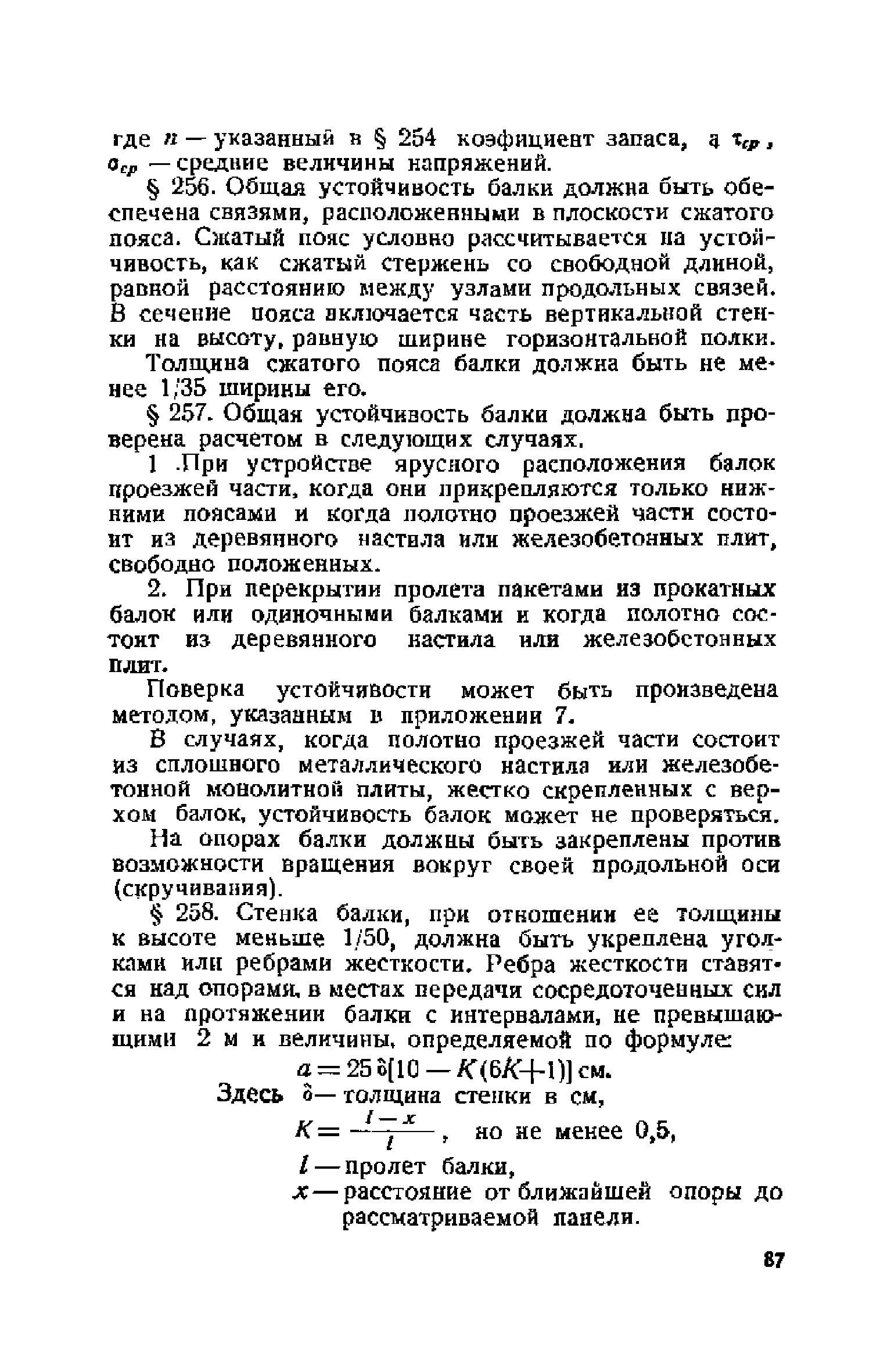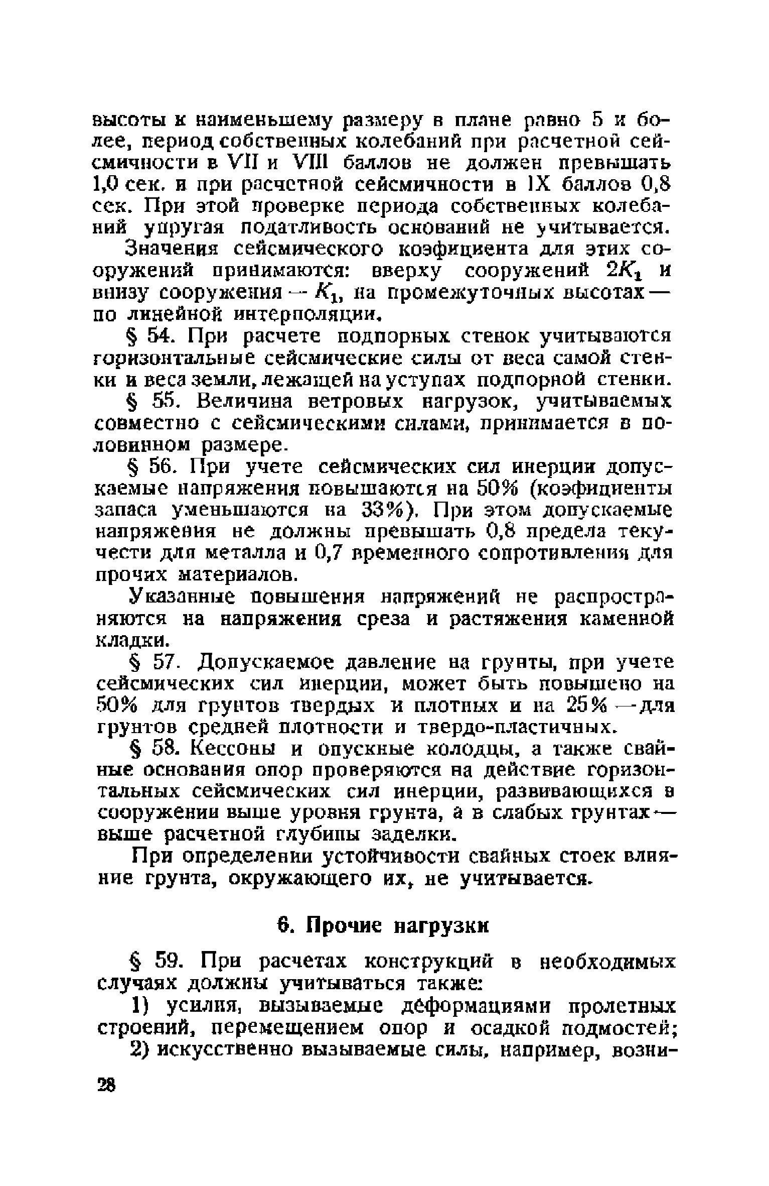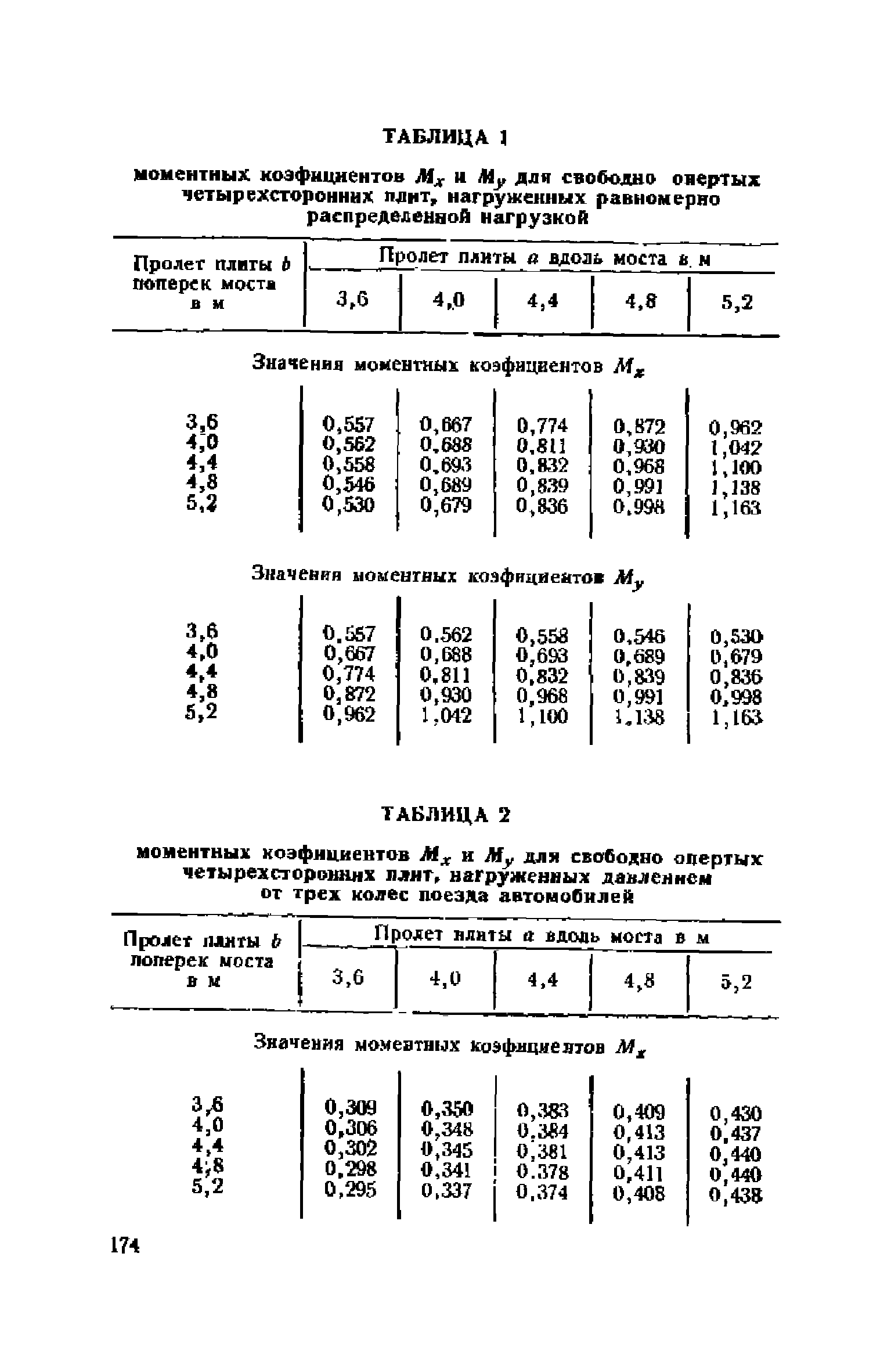 Правила и указания по проектированию железобетонных, металлических, бетонных и каменных искусственных сооружений на автомобильных дорогах| Статус: | не действует | | Название рус.: | Правила и указания по проектированию железобетонных, металлических, бетонных и каменных искусственных сооружений на автомобильных дорогах | | Дата добавления в базу: | 01.01.2021 | | Дата актуализации: | 01.01.2021 | | Область применения: | Документ рекомендуется к применению в организациях системы Гушосдора МВД СССР при проектировании строительства, реконструкции, восстановления, усиления и ремонта искуссственных сооружений | | Оглавление: | Глава I Габариты мостов Глава II Расчетные нагрузки 1. Основные и дополнительные силы 2. Временная вертикальная нагрузка 3. Давление ветра 4. Силы торможения и силы трения, возникающие в опорных частях 5. Сейсмические силы 6. Прочие нагрузки Глава III. Правила проектирования железобетонных мостов и труб 1. Общие положения. Расчетные нагрузки 2. Материалы 3. Допускаемые напряжения 4. Допускаемые прогибы 5. Расчет и конструкция отдельных элементов Плиты Балки Стойки Шарниры и опорные части 6. Основные правила проектирования различных видов мостов и их злементов Проезжая часть Балочные и рамные мосты Балочные мосты больших пролетов и сквозные фермы Арочные мосты Опоры железобетонных мостов Трубы Глава IV. Правила проектирования металлических мостов 1. Общие положения. Расчетные нагрузки 2. Материалы 3. Допускаемые напряжения 4. Допускаемые прогибы 5. Расчет и конструкция отдельных элементов Общие конструктивные и расчетные требования Растянутые стержни Сжатые и сжато-изогнутые стержни Балки 6. Расчет и конструкция соединений элементов Заклепочкые и болтовые соединения Сварные соединения 7. Основные правила проектирования различных видов мостов и их частей Проезжая часть Связи балочных мостов Сквозные фермы Опорные части Арочные пролетные строения Висячне мосты Глава V Правила проектирования каменных сооружений 1. Общие положения 2. Материалы Бетонные конструкции Каменные конструкции 3. Допускаемые напряжения 4. Каменные опоры Общие правила для быков и устоев Устои Быки 5. Каменные мосты 6.Трубы 7. Подпорные стенки Глава VI Правила проектирования фундаментов искусственных сооружений 1. Общие положения. Геологические изыскания 2. Допускаемые давления 3. Неглубокие фундаменты на естественном основании 4. Фундаменты на сваях 5. Глубокие фундаменты Глава VII Правила проектирования деревянных вспомогательных конструкций временного назначения при возведении искусственных сооружений на автомобильных дорогах 1. Общие положения 2. Материалы и допускаемые напряжения 3. Допускаемые прогибы и строительный подъем 4. Расчетные нагрузки 5. Общие указания по расчету н конструированию 6. Общие правила проектирования опалубки железобетонных конструкций 7. Общие правила проектирования кружал для арочных мостов Приложение 1. Таблица комбинаций сил торможения и трения, учитываемые при расчете опор наиболее употребительных схем железобетонных мостов Приложение 2. Карта июльских изотерм Приложение 3. Карта январских изотерм Приложение 4. Графики для определения расчетных температур железобетонных, бетонных и каменных элементов прямоугольного сечения Приложение 5. Таблицы для расчета опертых по контуру плит (проф. Галеркина) Приложение 6. Таблицы