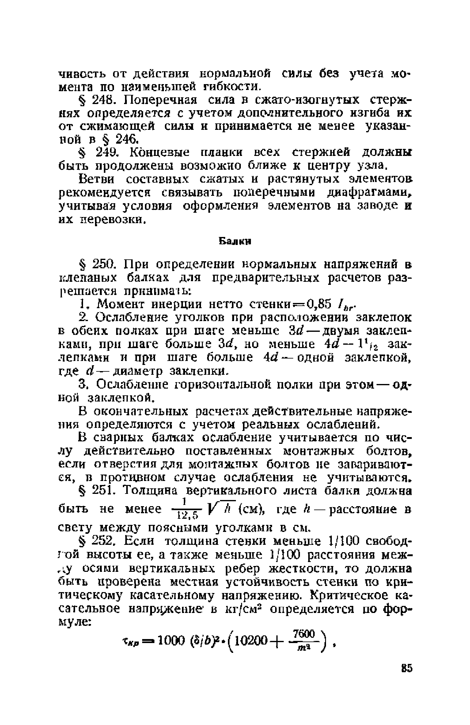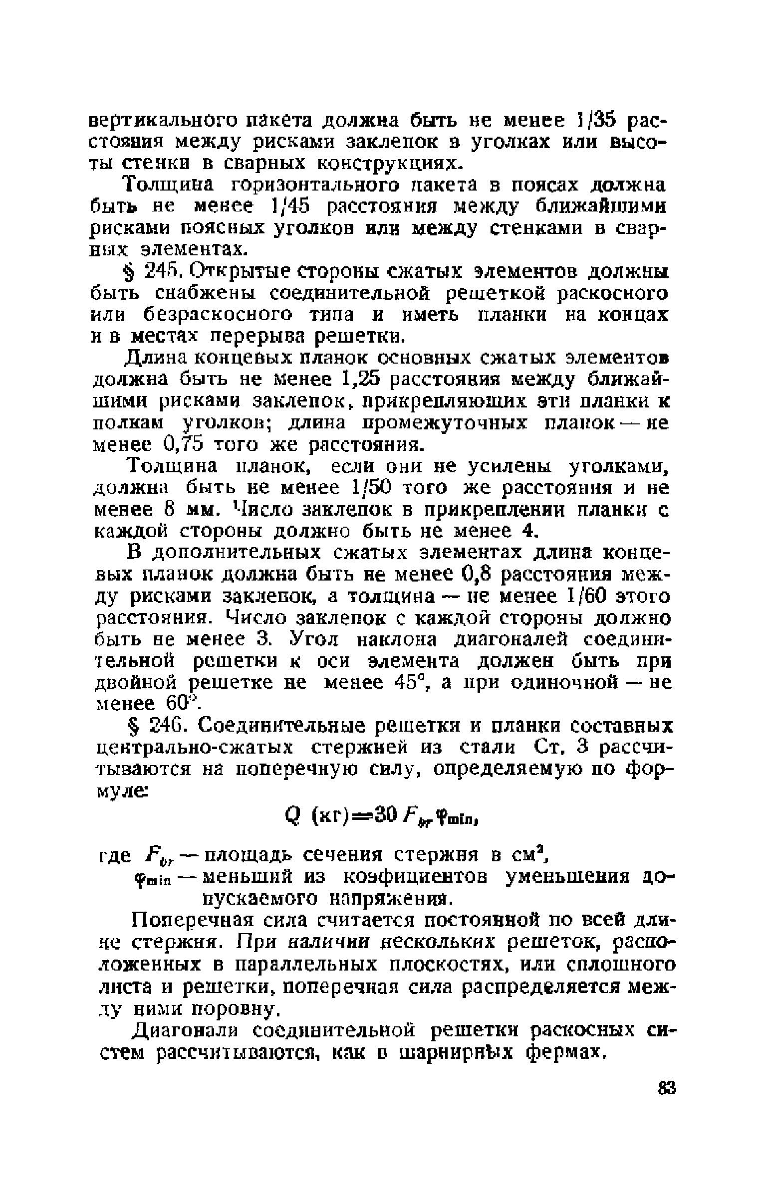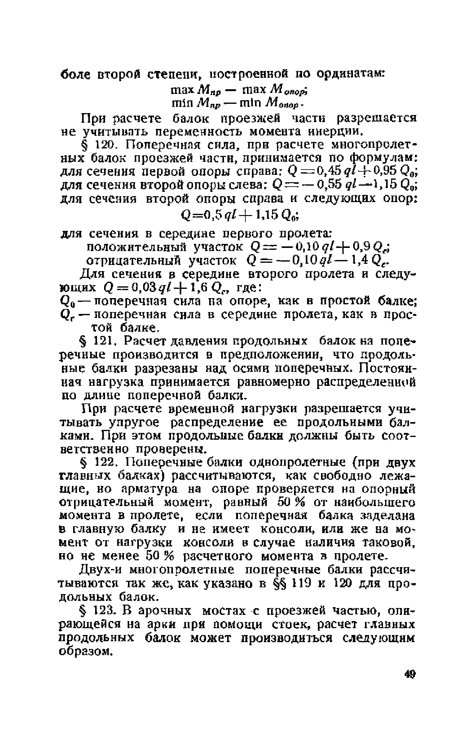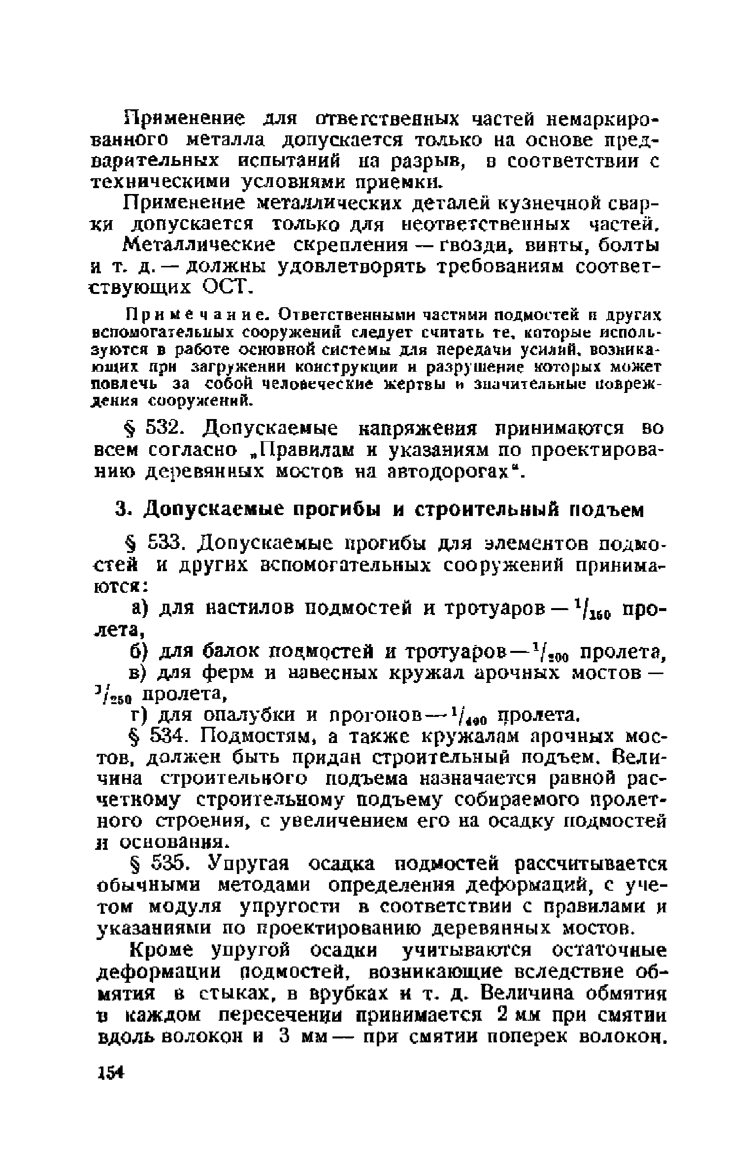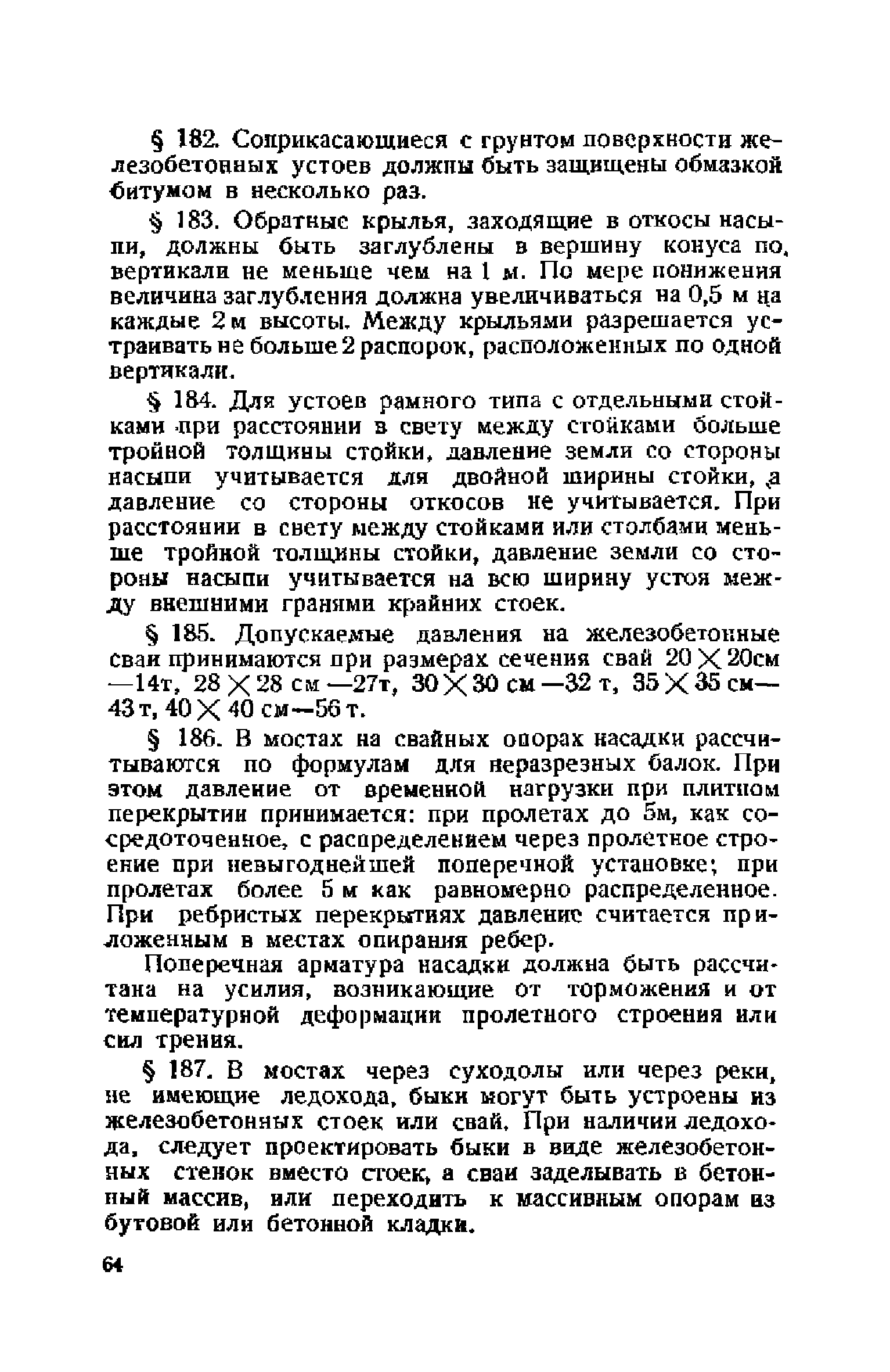 Правила и указания по проектированию железобетонных, металлических, бетонных и каменных искусственных сооружений на автомобильных дорогах| Статус: | не действует | | Название рус.: | Правила и указания по проектированию железобетонных, металлических, бетонных и каменных искусственных сооружений на автомобильных дорогах | | Дата добавления в базу: | 01.01.2021 | | Дата актуализации: | 01.01.2021 | | Область применения: | Документ рекомендуется к применению в организациях системы Гушосдора МВД СССР при проектировании строительства, реконструкции, восстановления, усиления и ремонта искуссственных сооружений | | Оглавление: | Глава I Габариты мостов Глава II Расчетные нагрузки 1. Основные и дополнительные силы 2. Временная вертикальная нагрузка 3. Давление ветра 4. Силы торможения и силы трения, возникающие в опорных частях 5. Сейсмические силы 6. Прочие нагрузки Глава III. Правила проектирования железобетонных мостов и труб 1. Общие положения. Расчетные нагрузки 2. Материалы 3. Допускаемые напряжения 4. Допускаемые прогибы 5. Расчет и конструкция отдельных элементов Плиты Балки Стойки Шарниры и опорные части 6. Основные правила проектирования различных видов мостов и их злементов Проезжая часть Балочные и рамные мосты Балочные мосты больших пролетов и сквозные фермы Арочные мосты Опоры железобетонных мостов Трубы Глава IV. Правила проектирования металлических мостов 1. Общие положения. Расчетные нагрузки 2. Материалы 3. Допускаемые напряжения 4. Допускаемые прогибы 5. Расчет и конструкция отдельных элементов Общие конструктивные и расчетные требования Растянутые стержни Сжатые и сжато-изогнутые стержни Балки 6. Расчет и конструкция соединений элементов Заклепочкые и болтовые соединения Сварные соединения 7. Основные правила проектирования различных видов мостов и их частей Проезжая часть Связи балочных мостов Сквозные фермы Опорные части Арочные пролетные строения Висячне мосты Глава V Правила проектирования каменных сооружений 1. Общие положения 2. Материалы Бетонные конструкции Каменные конструкции 3. Допускаемые напряжения 4. Каменные опоры Общие правила для быков и устоев Устои Быки 5. Каменные мосты 6.Трубы 7. Подпорные стенки Глава VI Правила проектирования фундаментов искусственных сооружений 1. Общие положения. Геологические изыскания 2. Допускаемые давления 3. Неглубокие фундаменты на естественном основании 4. Фундаменты на сваях 5. Глубокие фундаменты Глава VII Правила проектирования деревянных вспомогательных конструкций временного назначения при возведении искусственных сооружений на автомобильных дорогах 1. Общие положения 2. Материалы и допускаемые напряжения 3. Допускаемые прогибы и строительный подъем 4. Расчетные нагрузки 5. Общие указания по расчету н конструированию 6. Общие правила проектирования опалубки железобетонных конструкций 7. Общие правила проектирования кружал для арочных мостов Приложение 1. Таблица комбинаций сил торможения и трения, учитываемые при расчете опор наиболее употребительных схем железобетонных мостов Приложение 2. Карта июльских изотерм Приложение 3. Карта январских изотерм Приложение 4. Графики для определения расчетных температур железобетонных, бетонных и каменных элементов прямоугольного сечения Приложение 5. Таблицы для расчета опертых по контуру плит (проф. Галеркина) Приложение 6. Таблицы