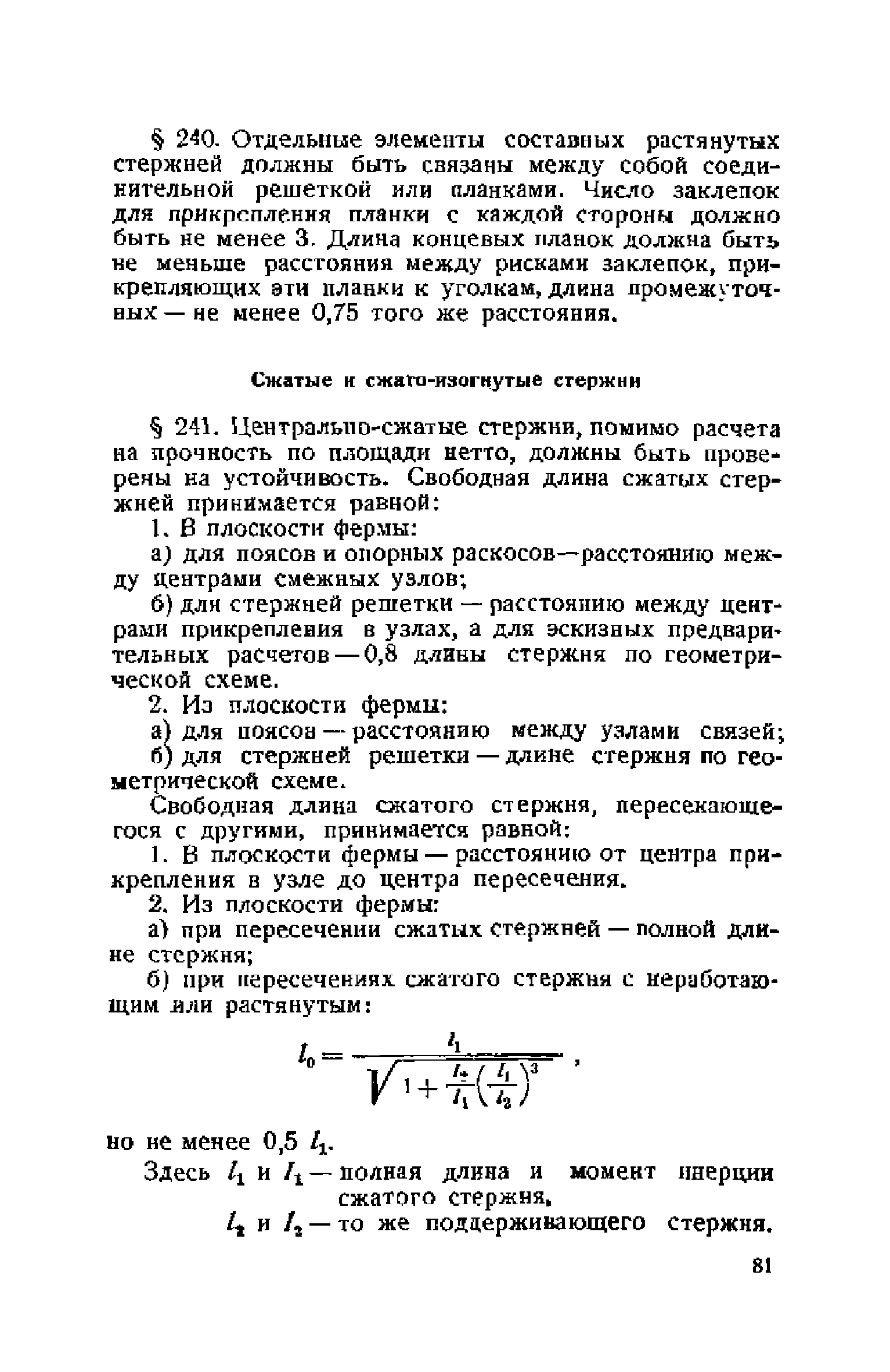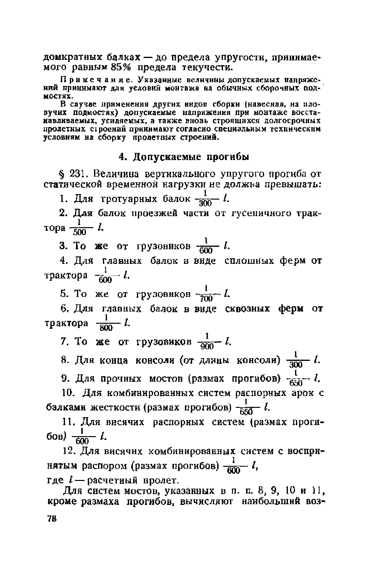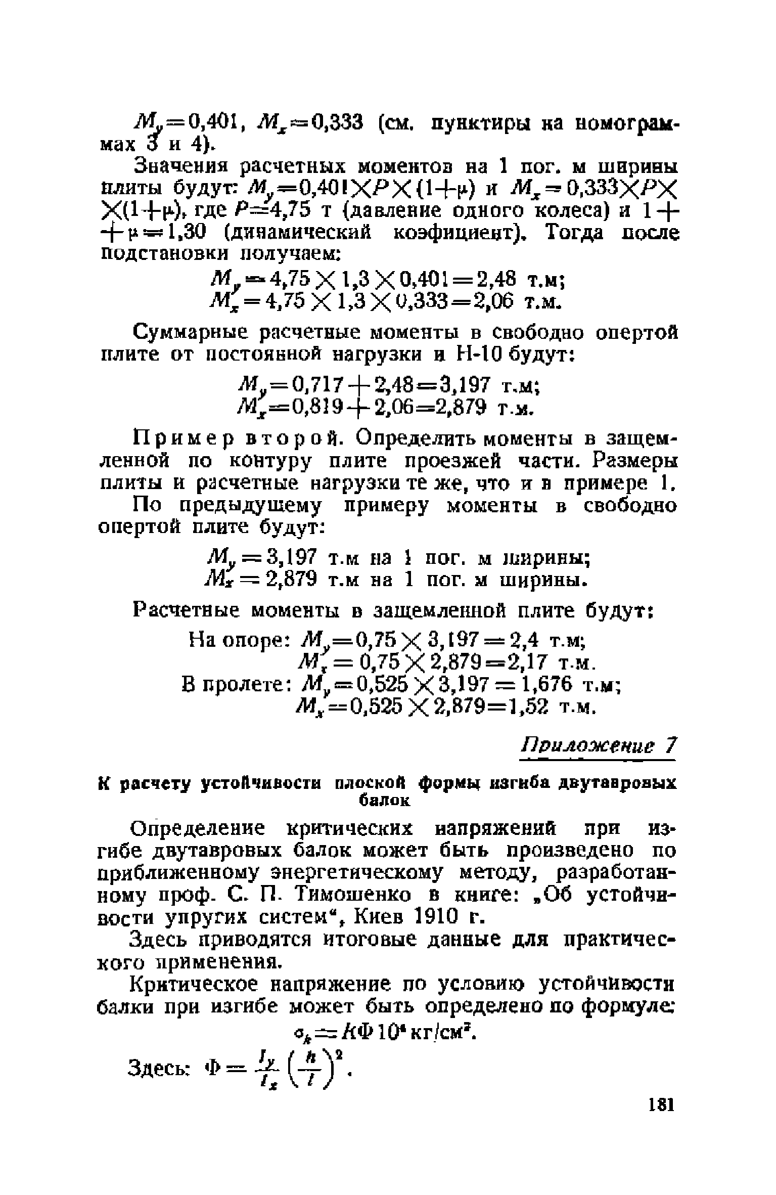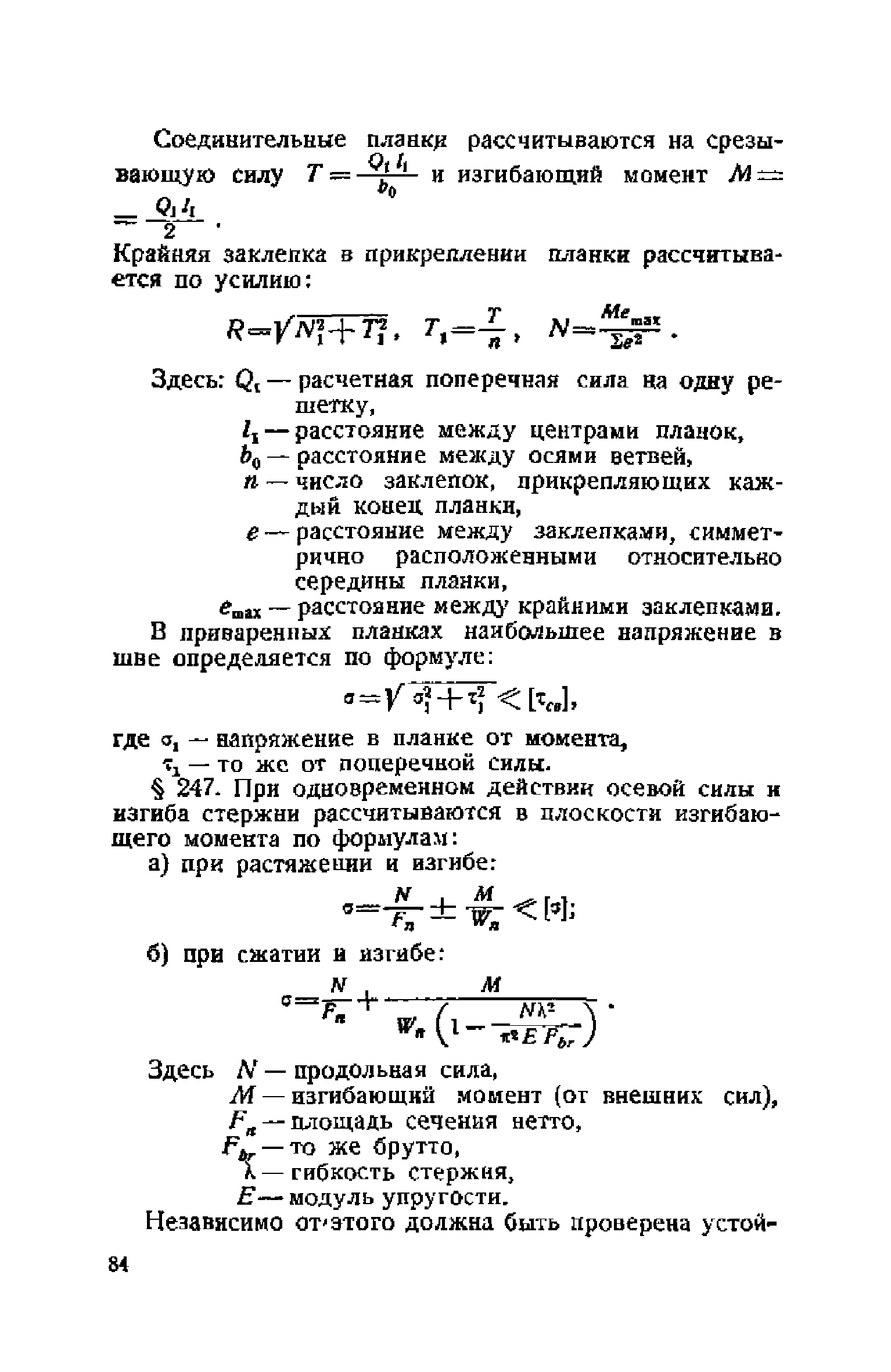 Правила и указания по проектированию железобетонных, металлических, бетонных и каменных искусственных сооружений на автомобильных дорогах| Статус: | не действует | | Название рус.: | Правила и указания по проектированию железобетонных, металлических, бетонных и каменных искусственных сооружений на автомобильных дорогах | | Дата добавления в базу: | 01.01.2021 | | Дата актуализации: | 01.01.2021 | | Область применения: | Документ рекомендуется к применению в организациях системы Гушосдора МВД СССР при проектировании строительства, реконструкции, восстановления, усиления и ремонта искуссственных сооружений | | Оглавление: | Глава I Габариты мостов Глава II Расчетные нагрузки 1. Основные и дополнительные силы 2. Временная вертикальная нагрузка 3. Давление ветра 4. Силы торможения и силы трения, возникающие в опорных частях 5. Сейсмические силы 6. Прочие нагрузки Глава III. Правила проектирования железобетонных мостов и труб 1. Общие положения. Расчетные нагрузки 2. Материалы 3. Допускаемые напряжения 4. Допускаемые прогибы 5. Расчет и конструкция отдельных элементов Плиты Балки Стойки Шарниры и опорные части 6. Основные правила проектирования различных видов мостов и их злементов Проезжая часть Балочные и рамные мосты Балочные мосты больших пролетов и сквозные фермы Арочные мосты Опоры железобетонных мостов Трубы Глава IV. Правила проектирования металлических мостов 1. Общие положения. Расчетные нагрузки 2. Материалы 3. Допускаемые напряжения 4. Допускаемые прогибы 5. Расчет и конструкция отдельных элементов Общие конструктивные и расчетные требования Растянутые стержни Сжатые и сжато-изогнутые стержни Балки 6. Расчет и конструкция соединений элементов Заклепочкые и болтовые соединения Сварные соединения 7. Основные правила проектирования различных видов мостов и их частей Проезжая часть Связи балочных мостов Сквозные фермы Опорные части Арочные пролетные строения Висячне мосты Глава V Правила проектирования каменных сооружений 1. Общие положения 2. Материалы Бетонные конструкции Каменные конструкции 3. Допускаемые напряжения 4. Каменные опоры Общие правила для быков и устоев Устои Быки 5. Каменные мосты 6.Трубы 7. Подпорные стенки Глава VI Правила проектирования фундаментов искусственных сооружений 1. Общие положения. Геологические изыскания 2. Допускаемые давления 3. Неглубокие фундаменты на естественном основании 4. Фундаменты на сваях 5. Глубокие фундаменты Глава VII Правила проектирования деревянных вспомогательных конструкций временного назначения при возведении искусственных сооружений на автомобильных дорогах 1. Общие положения 2. Материалы и допускаемые напряжения 3. Допускаемые прогибы и строительный подъем 4. Расчетные нагрузки 5. Общие указания по расчету н конструированию 6. Общие правила проектирования опалубки железобетонных конструкций 7. Общие правила проектирования кружал для арочных мостов Приложение 1. Таблица комбинаций сил торможения и трения, учитываемые при расчете опор наиболее употребительных схем железобетонных мостов Приложение 2. Карта июльских изотерм Приложение 3. Карта январских изотерм Приложение 4. Графики для определения расчетных температур железобетонных, бетонных и каменных элементов прямоугольного сечения Приложение 5. Таблицы для расчета опертых по контуру плит (проф. Галеркина) Приложение 6. Таблицы