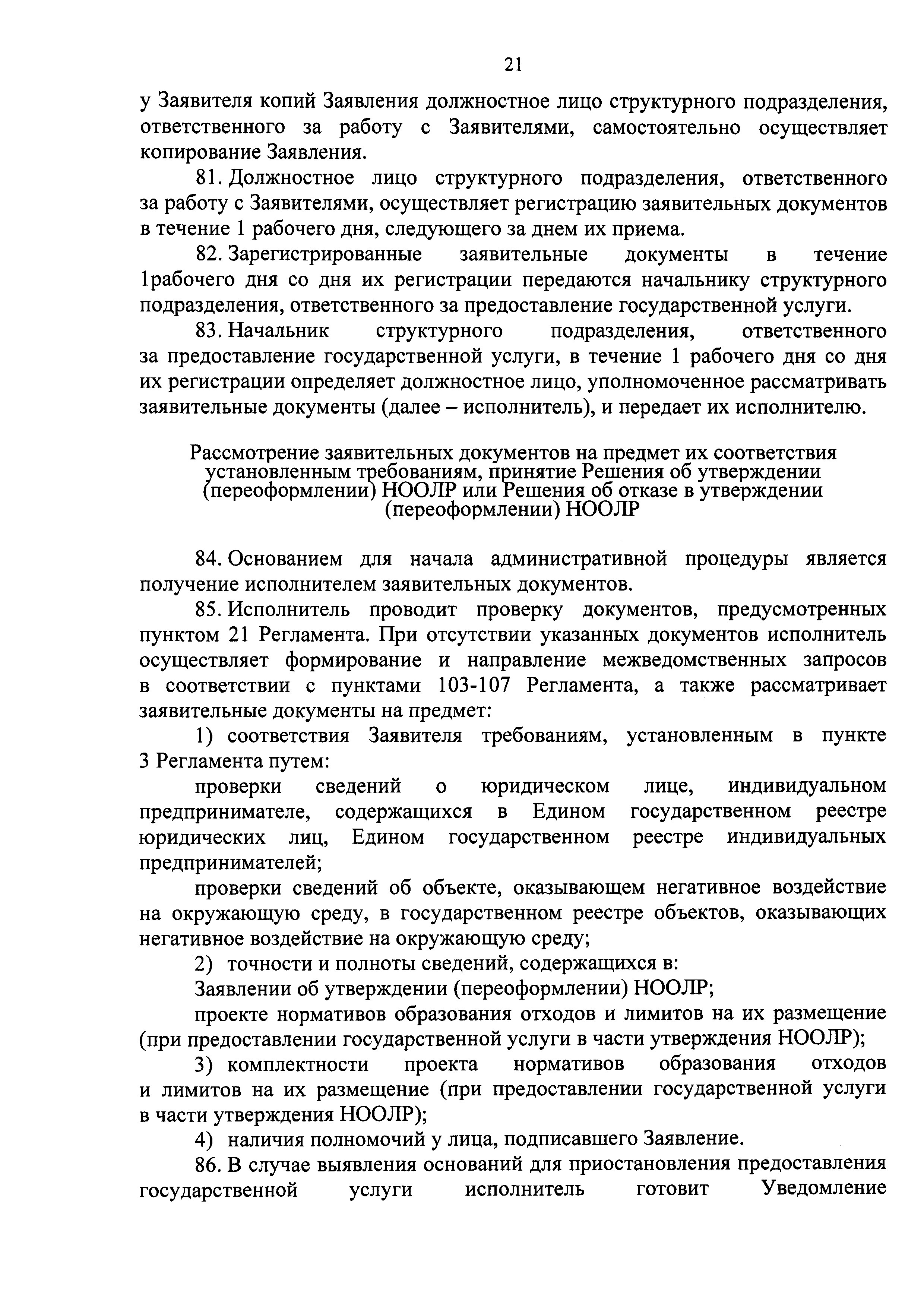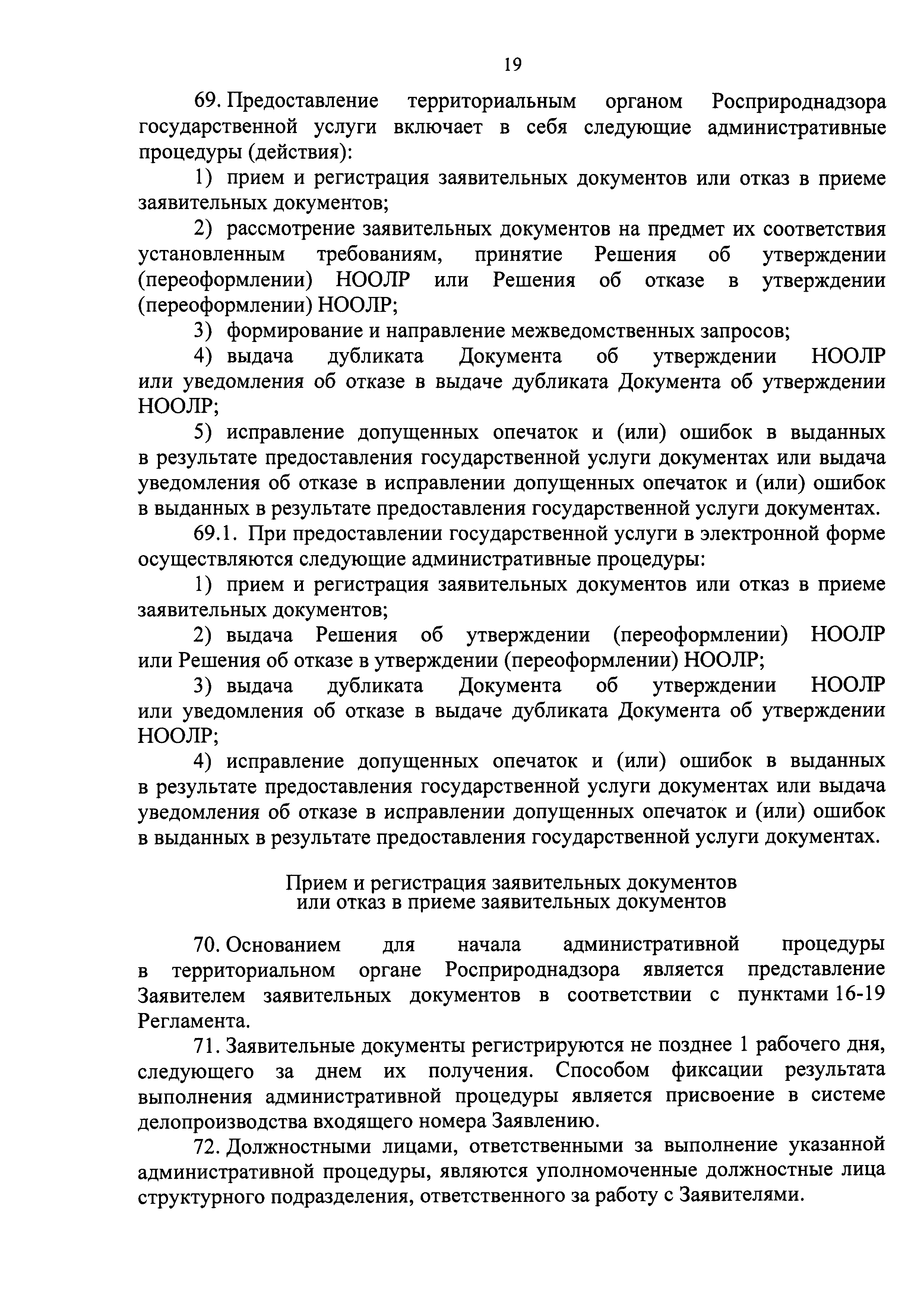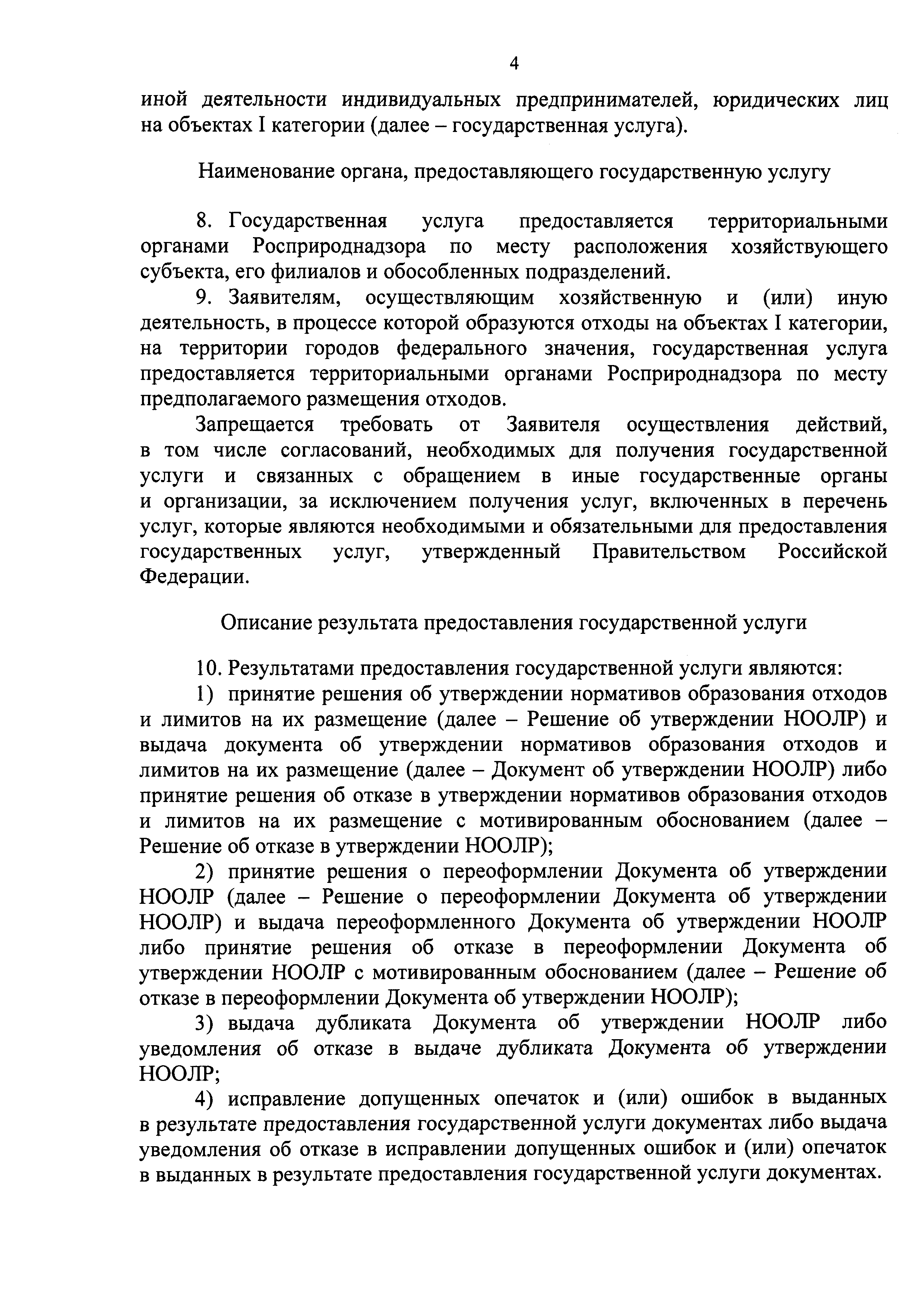 | Оглавление: | I. Общие положения II. Стандарт предоставления государственной услуги III. Состав, последовательность и сроки выполнения административных процедур (действий), требования к порядку их выполнения, в том числе особенности выполнения административных процедур (действий) в электронном виде IV. Формы контроля за предоставлением государственной услуги V. Досудебный (внесудебный) порядок обжалования решений и действий (бездействия) органа, предоставляющего государственную услугу, а также его должностных лиц Приложение 1. Заявление о выдаче Документа об утверждении нормативов образования отходов и лимитов на их размещение на объектах I категории Приложение 2. Заявление о переоформлении Документа об утверждении нормативов образования отходов и лимитов на их размещение на объектах I категории Приложение 3. Заявление о выдаче дубликата Документа об утверждении нормативов образования отходов и лимитов на их размещение на объектах I категории Приложение 4. Заявление об исправлении допущенных опечаток и (или) ошибок в выданных в результате предоставления государственной услуги документах |