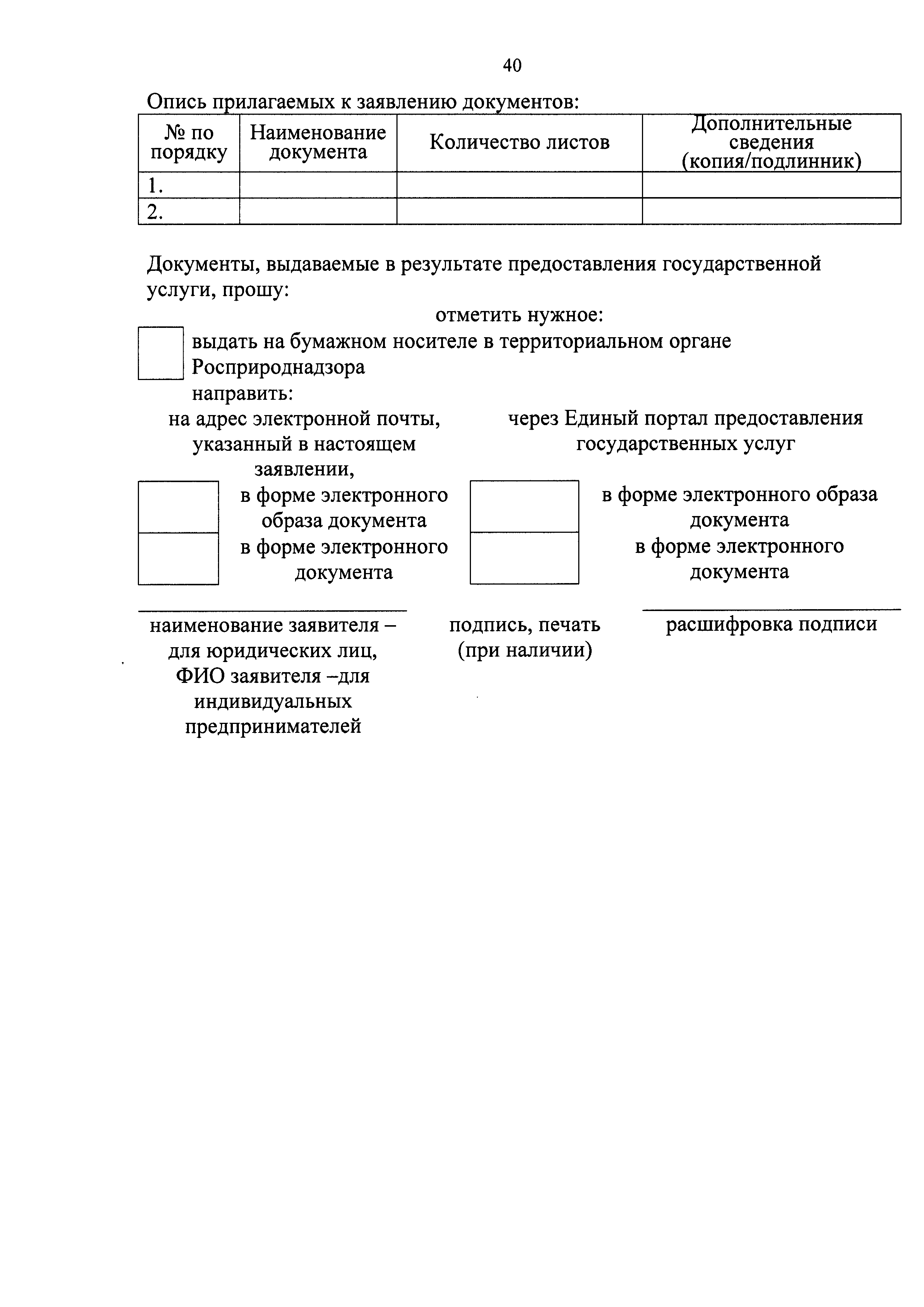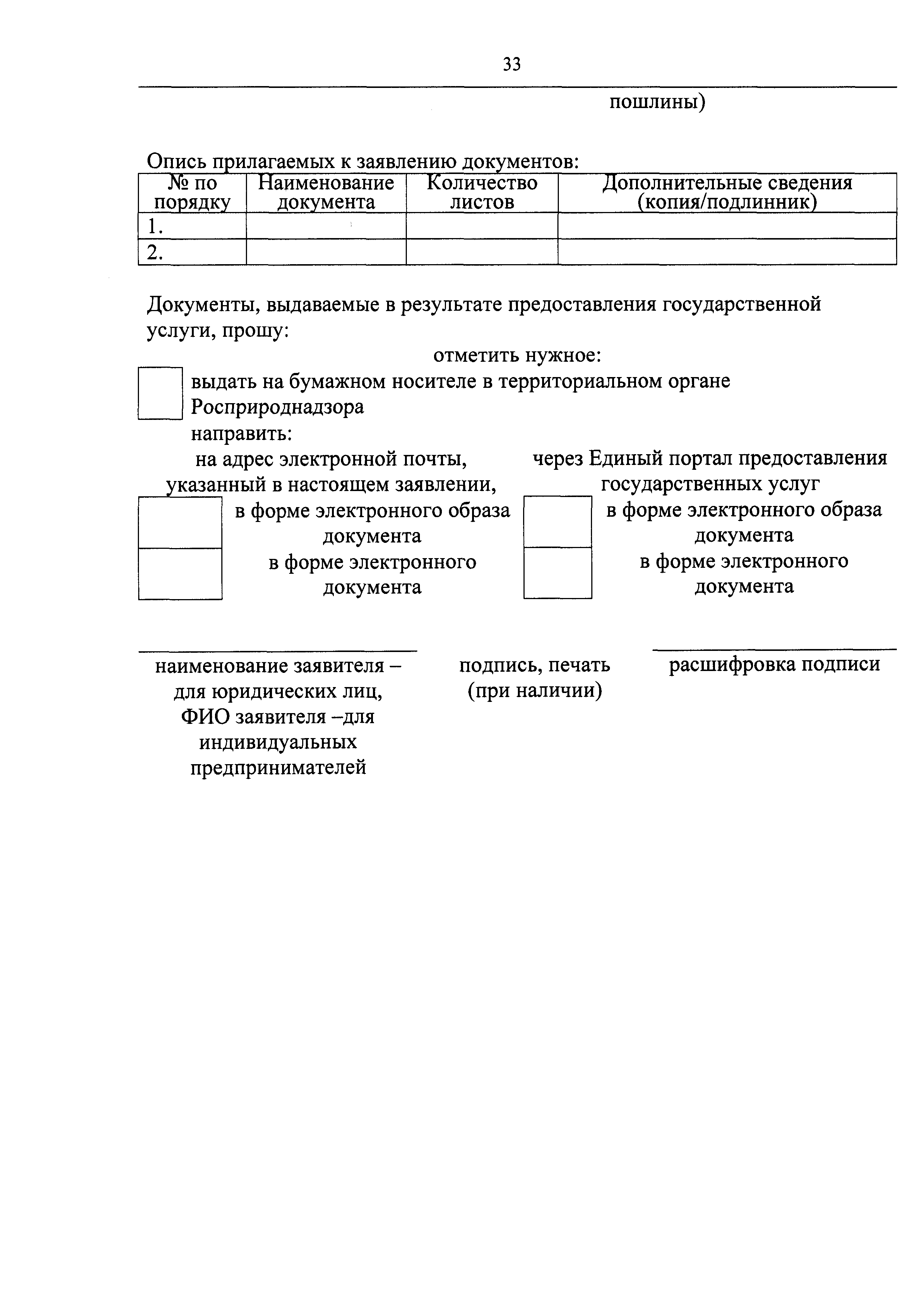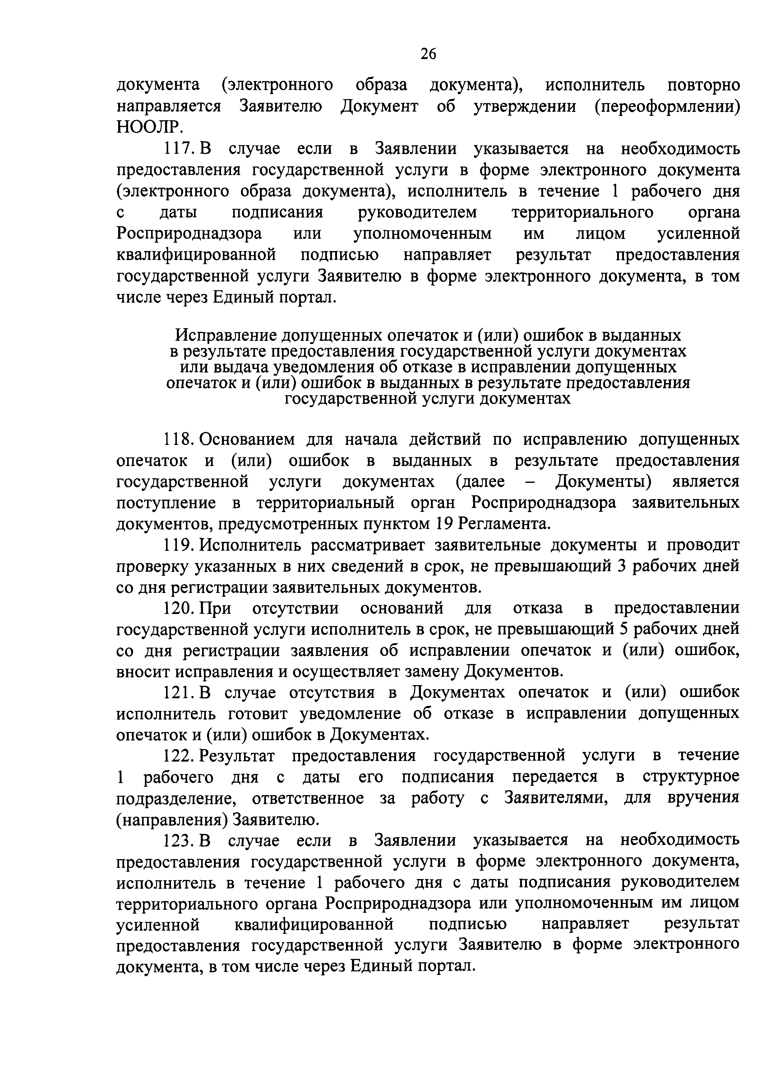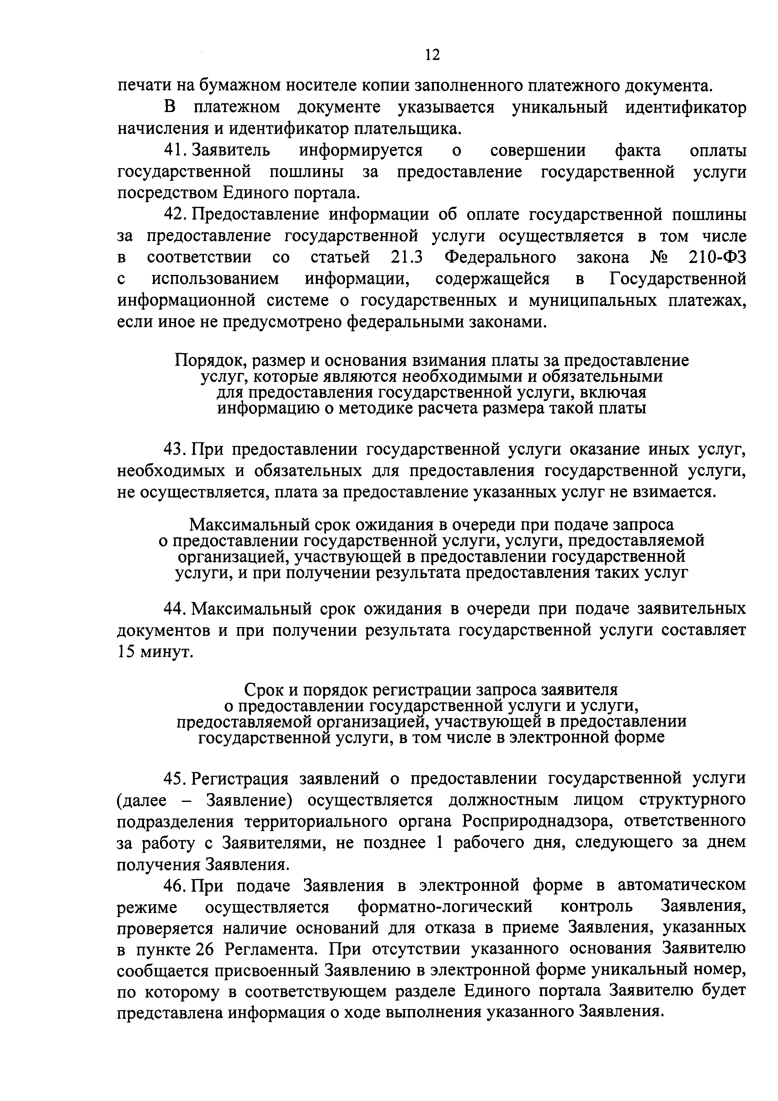 | Оглавление: | I. Общие положения II. Стандарт предоставления государственной услуги III. Состав, последовательность и сроки выполнения административных процедур (действий), требования к порядку их выполнения, в том числе особенности выполнения административных процедур (действий) в электронном виде IV. Формы контроля за предоставлением государственной услуги V. Досудебный (внесудебный) порядок обжалования решений и действий (бездействия) органа, предоставляющего государственную услугу, а также его должностных лиц Приложение 1. Заявление о выдаче Документа об утверждении нормативов образования отходов и лимитов на их размещение на объектах I категории Приложение 2. Заявление о переоформлении Документа об утверждении нормативов образования отходов и лимитов на их размещение на объектах I категории Приложение 3. Заявление о выдаче дубликата Документа об утверждении нормативов образования отходов и лимитов на их размещение на объектах I категории Приложение 4. Заявление об исправлении допущенных опечаток и (или) ошибок в выданных в результате предоставления государственной услуги документах |