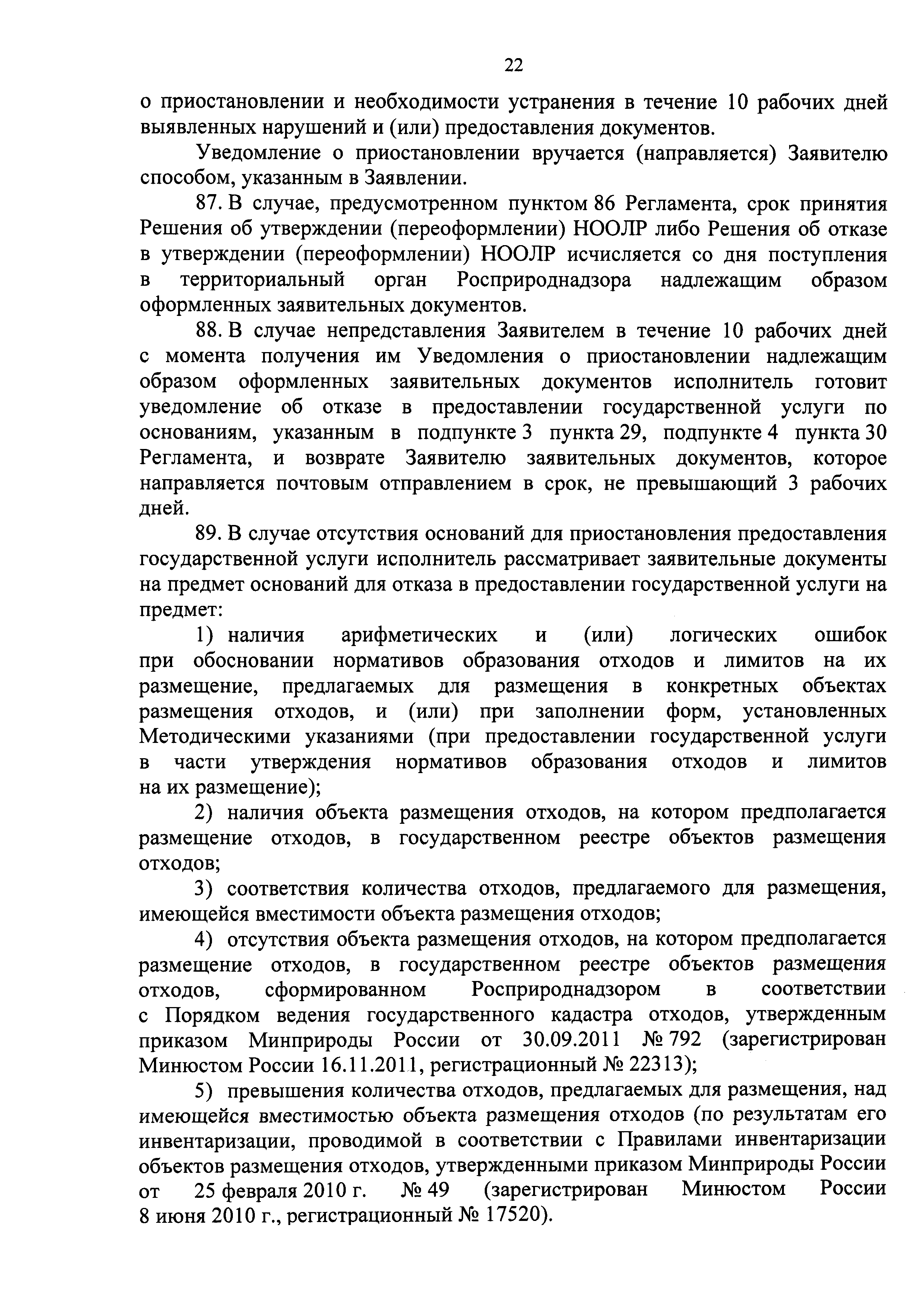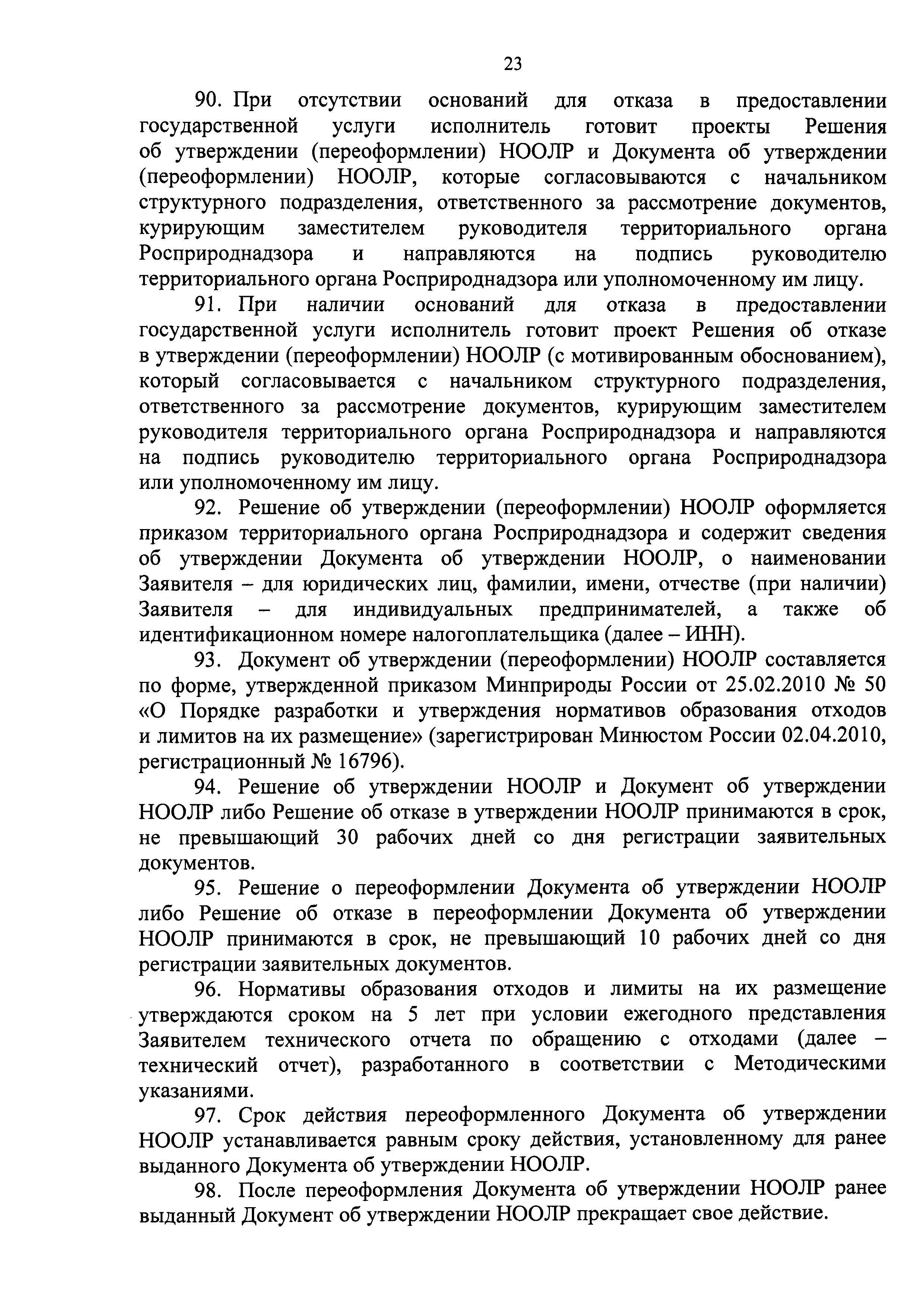 | Область применения: | Административный регламент Федеральной службы по надзору в сфере природопользования предоставления государственной услуги по утверждению нормативов образования отходов и лимитов на их размещение применительно к хозяйственной и (или) иной деятельности индивидуальных предпринимателей, юридических лиц на объектах I категории определяет сроки, последовательность административных процедур (действий) и принятия решений территориальными органами Федеральной службы по надзору в сфере природопользования, а также порядок взаимодействия между структурными подразделениями территориального органа Росприроднадзора, должностными лицами территориального органа Росприроднадзора с заявителями при предоставлении государственной услуги по утверждению нормативов образования отходов и лимитов на их размещение применительно к хозяйственной и (или) иной деятельности индивидуальных предпринимателей, юридических лиц на объектах I категории. Действие Регламента не распространяется на отношения в области обращения с радиоактивными, биологическими и медицинскими отходами |