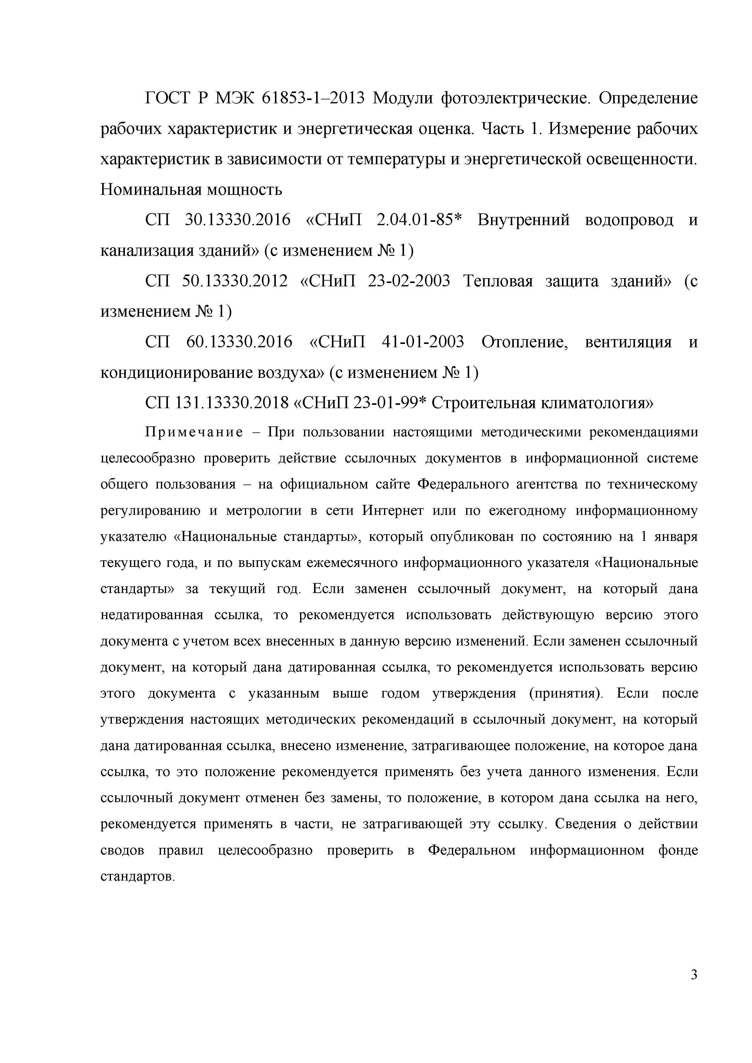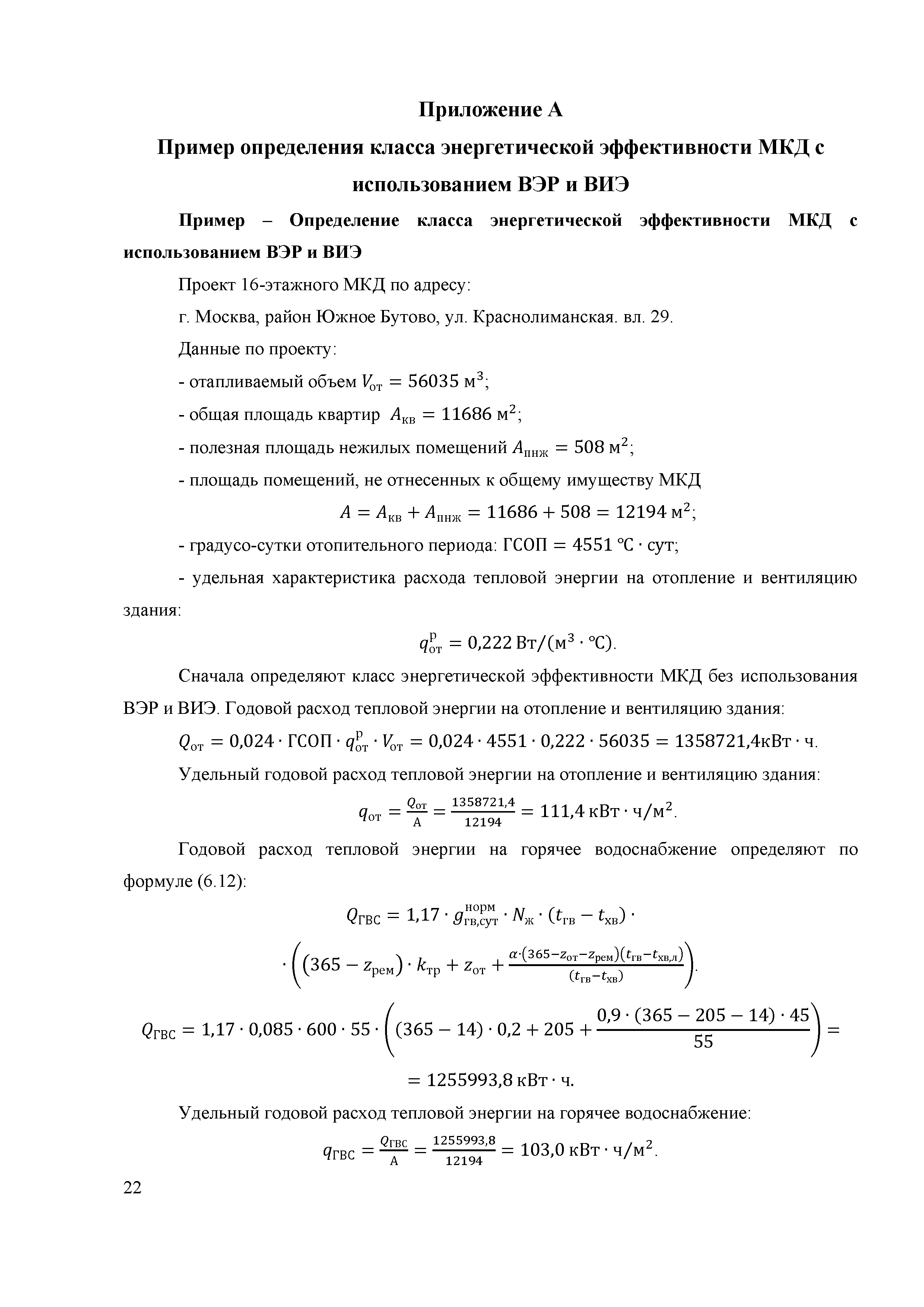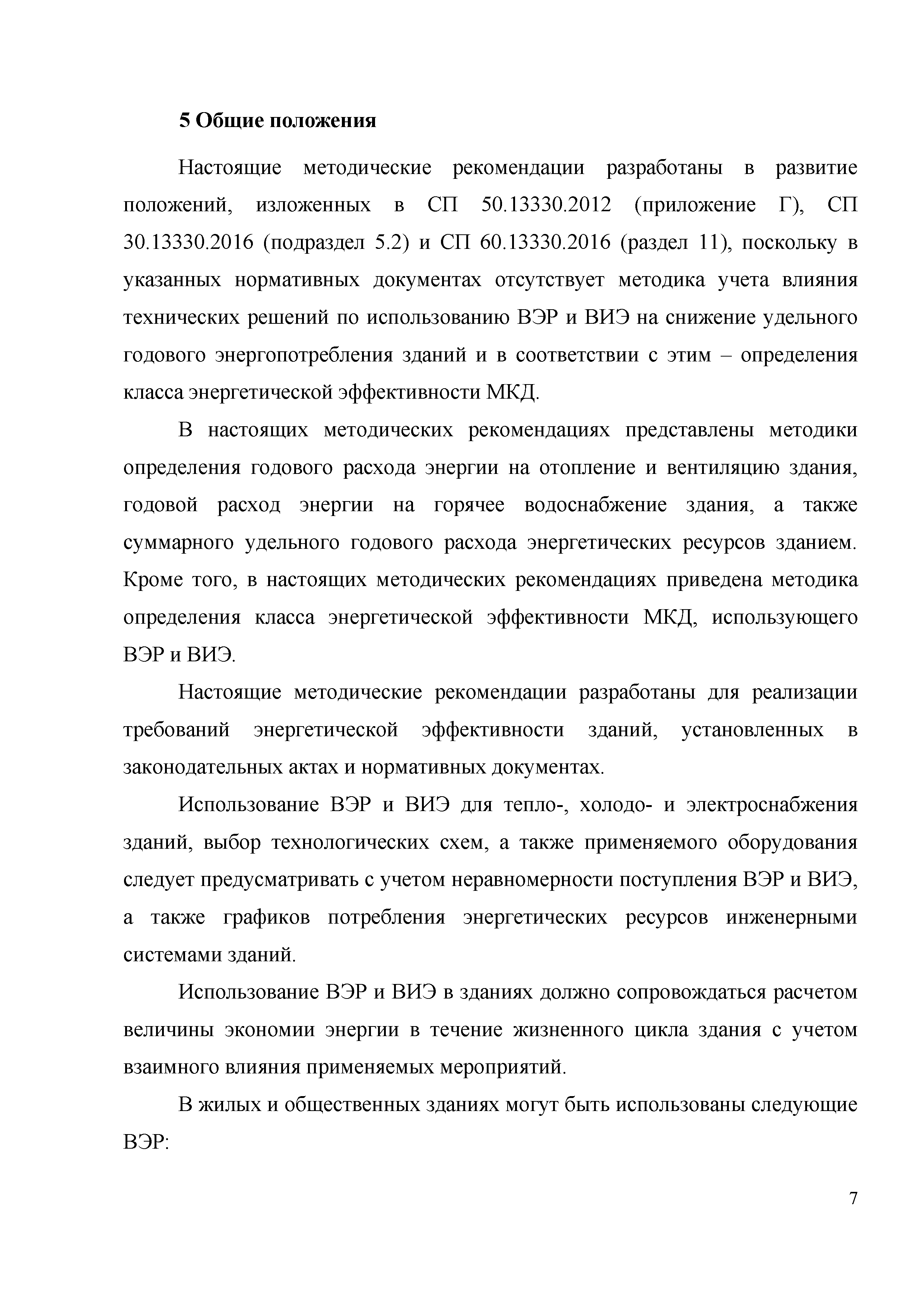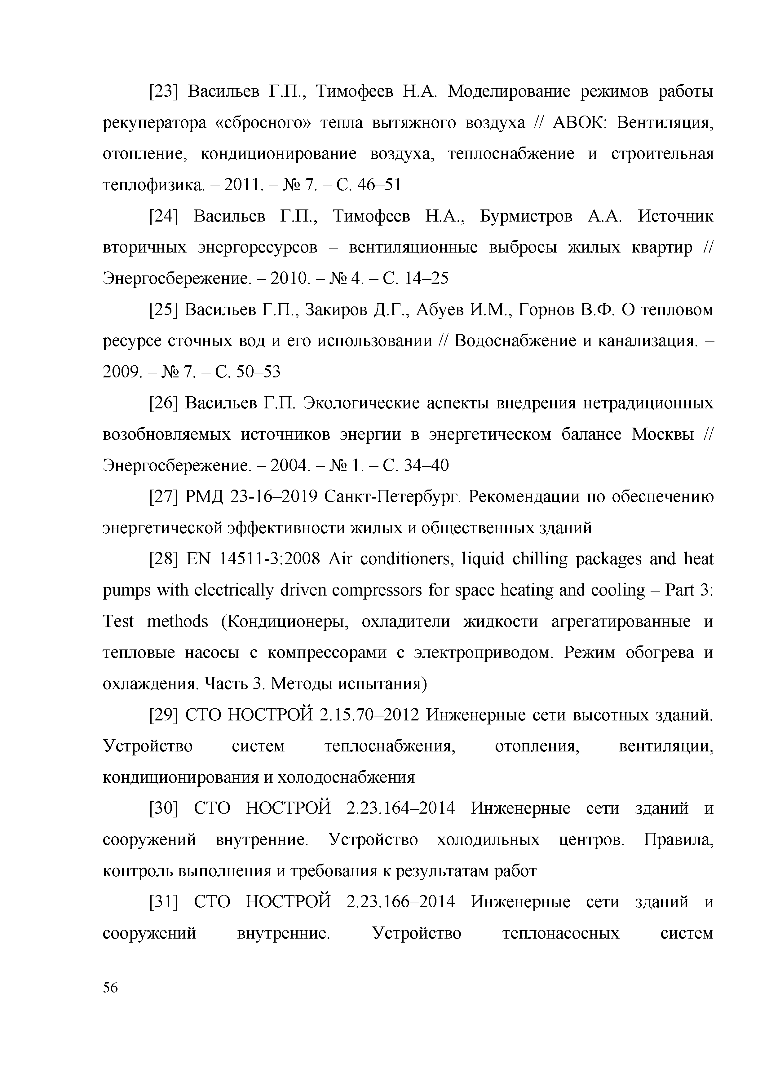 | | Нормативные ссылки: |   «Положение о составе разделов проектной документации и требованиях к их содержанию» Технический регламент «Технический регламент о безопасности зданий и сооружений»  Федеральный закон 261-ФЗ «Об энергосбережении и о повышении энергетической эффективности и о внесении изменений в отдельные законодательные акты Российской Федерации»  СП 50.13330.2012 «Тепловая защита зданий»  ГОСТ Р 54418.12.1-2011 «Возобновляемая энергетика. Ветроэнергетика. Установки ветроэнергетические. Часть 12-1. Измерение мощности, вырабатываемой ветроэлектрическими установками»  ГОСТ Р 54856-2011 «Теплоснабжение зданий. Методика расчета энергопотребности и эффективности системы теплогенерации с солнечными установками»  ГОСТ Р 54865-2011 «Теплоснабжение зданий. Методика расчета энергопотребности и эффективности системы теплогенерации с тепловыми насосами» ГОСТ Р 54539-2011 «Кондиционеры, агрегатированные охладители жидкости и тепловые насосы с компрессорами с электроприводом для обогрева и охлаждения помещений. Методы испытаний функциональных характеристик»  ГОСТ 30494-2011 «Здания жилые и общественные. Параметры микроклимата в помещениях» ГОСТ Р 54531-2011 «Нетрадиционные технологии. Возобновляемые и альтернативные источники энергии. Термины и определения» ГОСТ Р 54418.12.3-2012 «Возобновляемая энергетика. Ветроэнергетика. Установки ветроэнергетические. Часть 12-3. Методы испытаний для определения количества вырабатываемой электроэнергии» ГОСТ Р МЭК 61853-1-2013 «Модули фотоэлектрические. Определение рабочих характеристик и энергетическая оценка. Часть 1. Измерение рабочих характеристик в зависимости от температуры и энергетической освещенности. Номинальная мощность» СТО НОСТРОЙ 2.15.70-2012 «Инженерные сети высотных зданий. Устройство систем теплоснабжения, отопления, вентиляции, кондиционирования и холодоснабжения»  СМП НОСТРОЙ 3.32.1-2014 «Справочно-методическое пособие "Порядок организации и проведения строительного контроля при строительстве сооружений связи"» СТО НОСТРОЙ 2.23.164-2014 «Инженерные сети зданий и сооружений внутренние. Устройство холодильных центров. Правила, контроль выполнения, требования к результатам работ» СТО НОСТРОЙ 2.23.166-2014 «Инженерные сети зданий и сооружений внутренние. Устройство теплонасосных систем теплохладоснабжения зданий. Правила, контроль выполнения и требования к результатам работ»  Постановление 29 «Об утверждении требований по обеспечению транспортной безопасности объектов транспортной инфраструктуры по видам транспорта на этапе их проектирования и строительства и требований по обеспечению транспортной безопасности объектов (строений, зданий, сооружений), не являющихся объектами транспортной инфраструктуры и расположенных на земельных участках, прилегающих к объектам транспортной инфраструктуры и отнесенных в соответствии с земельным законодательством Российской Федерации к охранным зонам земель транспорта и о внесении изменений в Положение о составе разделов проектной документации и требованиях к их содержанию»  СП 30.13330.2016 «Внутренний водопровод и канализация зданий»  СП 60.13330.2016 «Отопление, вентиляция и кондиционирование воздуха» Письмо 28242-ЕС/04 «О порядке определения классов энергетической эффективности»  СП 131.13330.2018 «Строительная климатология» РМД 23-16-2019 Санкт-Петербург «Рекомендации по обесп