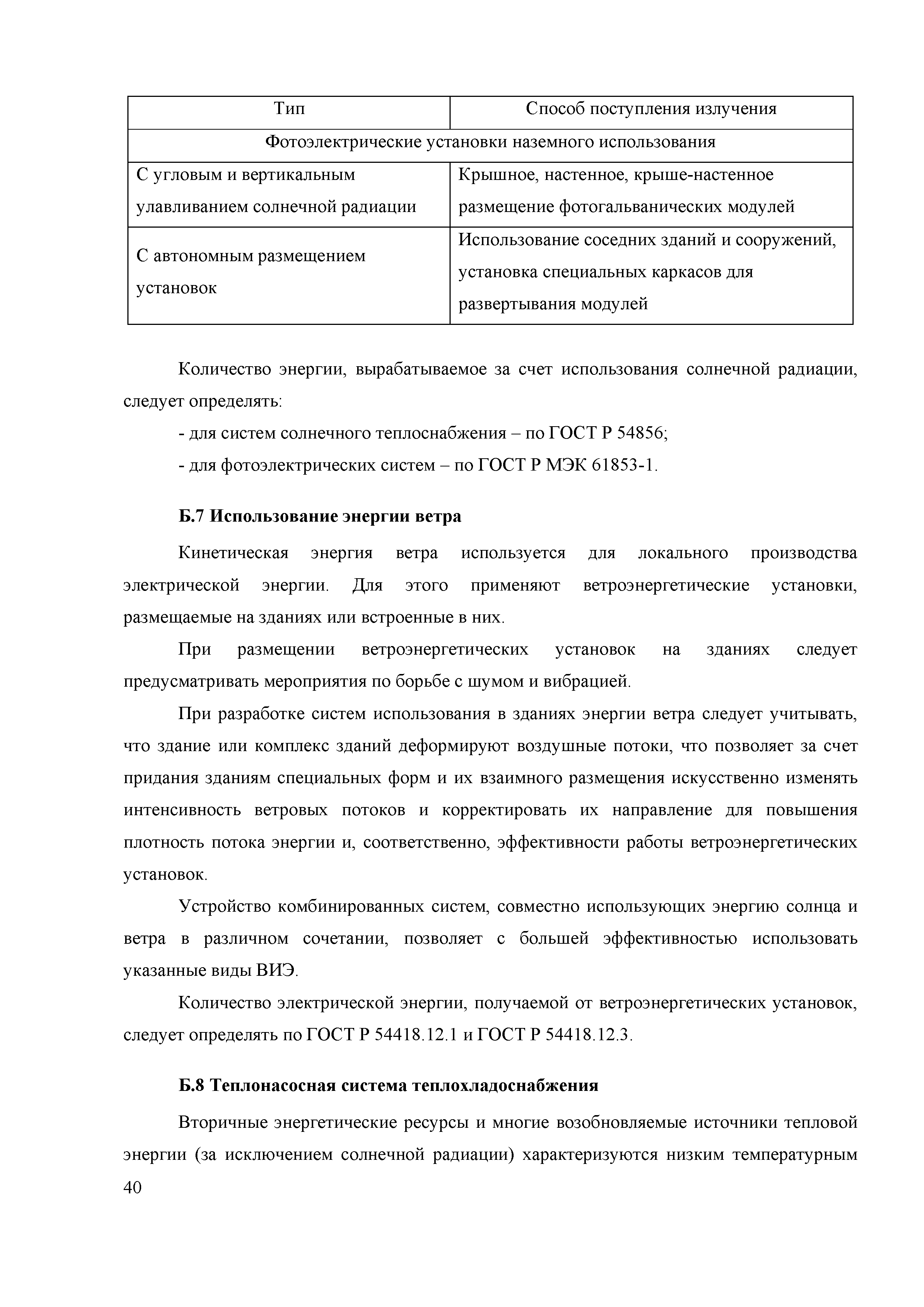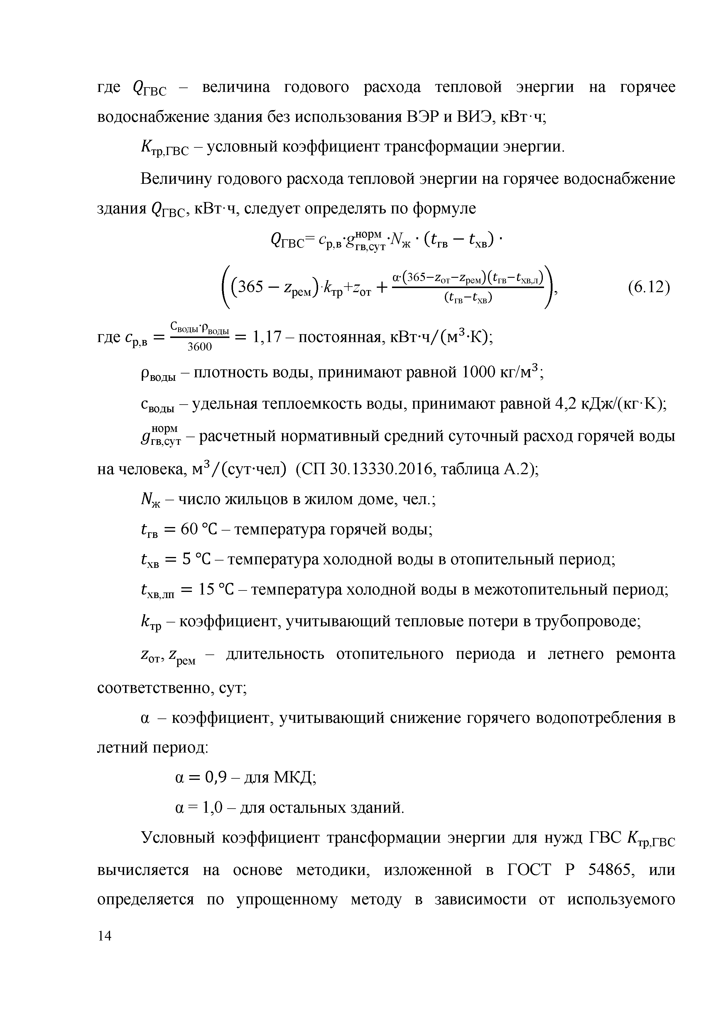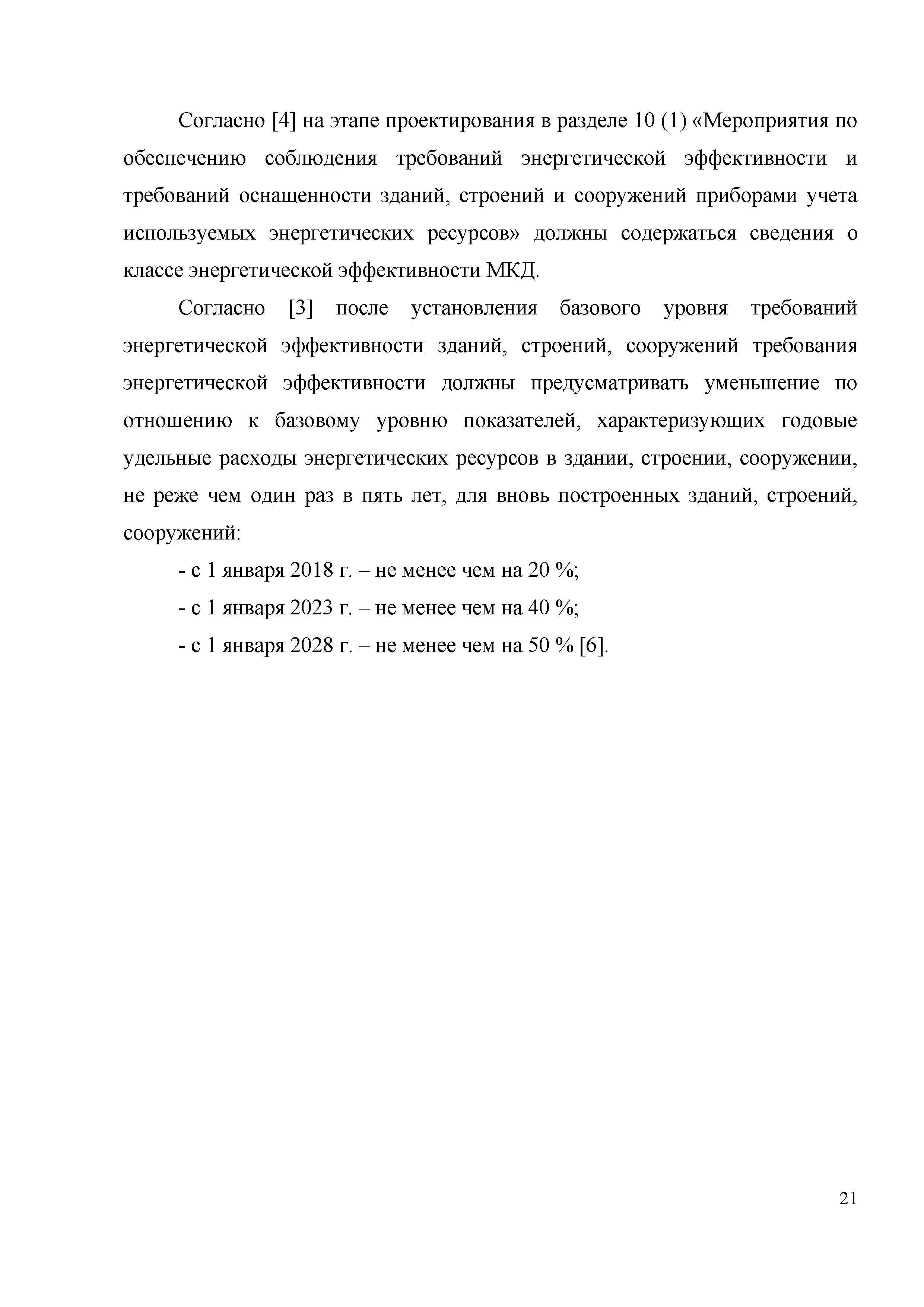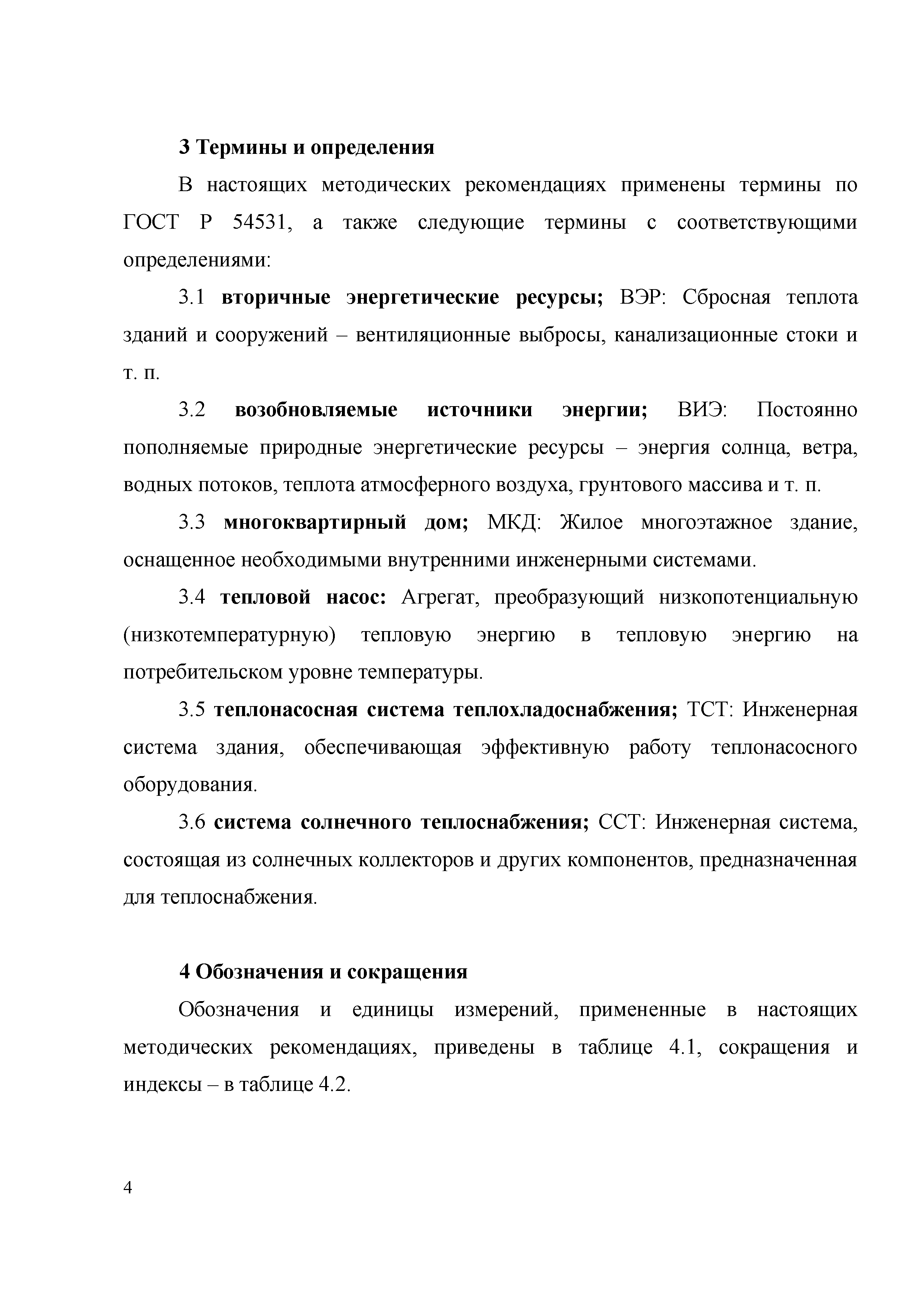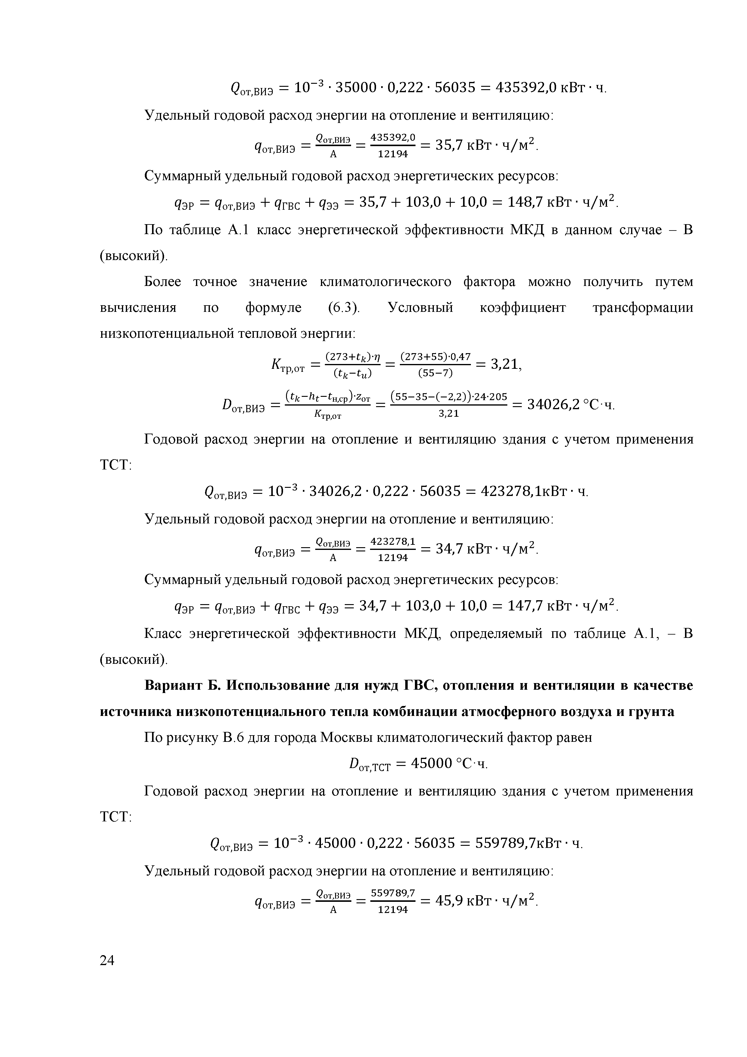 | | Нормативные ссылки: |   «Положение о составе разделов проектной документации и требованиях к их содержанию» Технический регламент «Технический регламент о безопасности зданий и сооружений»  Федеральный закон 261-ФЗ «Об энергосбережении и о повышении энергетической эффективности и о внесении изменений в отдельные законодательные акты Российской Федерации»  СП 50.13330.2012 «Тепловая защита зданий»  ГОСТ Р 54418.12.1-2011 «Возобновляемая энергетика. Ветроэнергетика. Установки ветроэнергетические. Часть 12-1. Измерение мощности, вырабатываемой ветроэлектрическими установками»  ГОСТ Р 54856-2011 «Теплоснабжение зданий. Методика расчета энергопотребности и эффективности системы теплогенерации с солнечными установками»  ГОСТ Р 54865-2011 «Теплоснабжение зданий. Методика расчета энергопотребности и эффективности системы теплогенерации с тепловыми насосами» ГОСТ Р 54539-2011 «Кондиционеры, агрегатированные охладители жидкости и тепловые насосы с компрессорами с электроприводом для обогрева и охлаждения помещений. Методы испытаний функциональных характеристик»  ГОСТ 30494-2011 «Здания жилые и общественные. Параметры микроклимата в помещениях» ГОСТ Р 54531-2011 «Нетрадиционные технологии. Возобновляемые и альтернативные источники энергии. Термины и определения» ГОСТ Р 54418.12.3-2012 «Возобновляемая энергетика. Ветроэнергетика. Установки ветроэнергетические. Часть 12-3. Методы испытаний для определения количества вырабатываемой электроэнергии» ГОСТ Р МЭК 61853-1-2013 «Модули фотоэлектрические. Определение рабочих характеристик и энергетическая оценка. Часть 1. Измерение рабочих характеристик в зависимости от температуры и энергетической освещенности. Номинальная мощность» СТО НОСТРОЙ 2.15.70-2012 «Инженерные сети высотных зданий. Устройство систем теплоснабжения, отопления, вентиляции, кондиционирования и холодоснабжения»  СМП НОСТРОЙ 3.32.1-2014 «Справочно-методическое пособие "Порядок организации и проведения строительного контроля при строительстве сооружений связи"» СТО НОСТРОЙ 2.23.164-2014 «Инженерные сети зданий и сооружений внутренние. Устройство холодильных центров. Правила, контроль выполнения, требования к результатам работ» СТО НОСТРОЙ 2.23.166-2014 «Инженерные сети зданий и сооружений внутренние. Устройство теплонасосных систем теплохладоснабжения зданий. Правила, контроль выполнения и требования к результатам работ»  Постановление 29 «Об утверждении требований по обеспечению транспортной безопасности объектов транспортной инфраструктуры по видам транспорта на этапе их проектирования и строительства и требований по обеспечению транспортной безопасности объектов (строений, зданий, сооружений), не являющихся объектами транспортной инфраструктуры и расположенных на земельных участках, прилегающих к объектам транспортной инфраструктуры и отнесенных в соответствии с земельным законодательством Российской Федерации к охранным зонам земель транспорта и о внесении изменений в Положение о составе разделов проектной документации и требованиях к их содержанию»  СП 30.13330.2016 «Внутренний водопровод и канализация зданий»  СП 60.13330.2016 «Отопление, вентиляция и кондиционирование воздуха» Письмо 28242-ЕС/04 «О порядке определения классов энергетической эффективности»  СП 131.13330.2018 «Строительная климатология» РМД 23-16-2019 Санкт-Петербург «Рекомендации по обесп