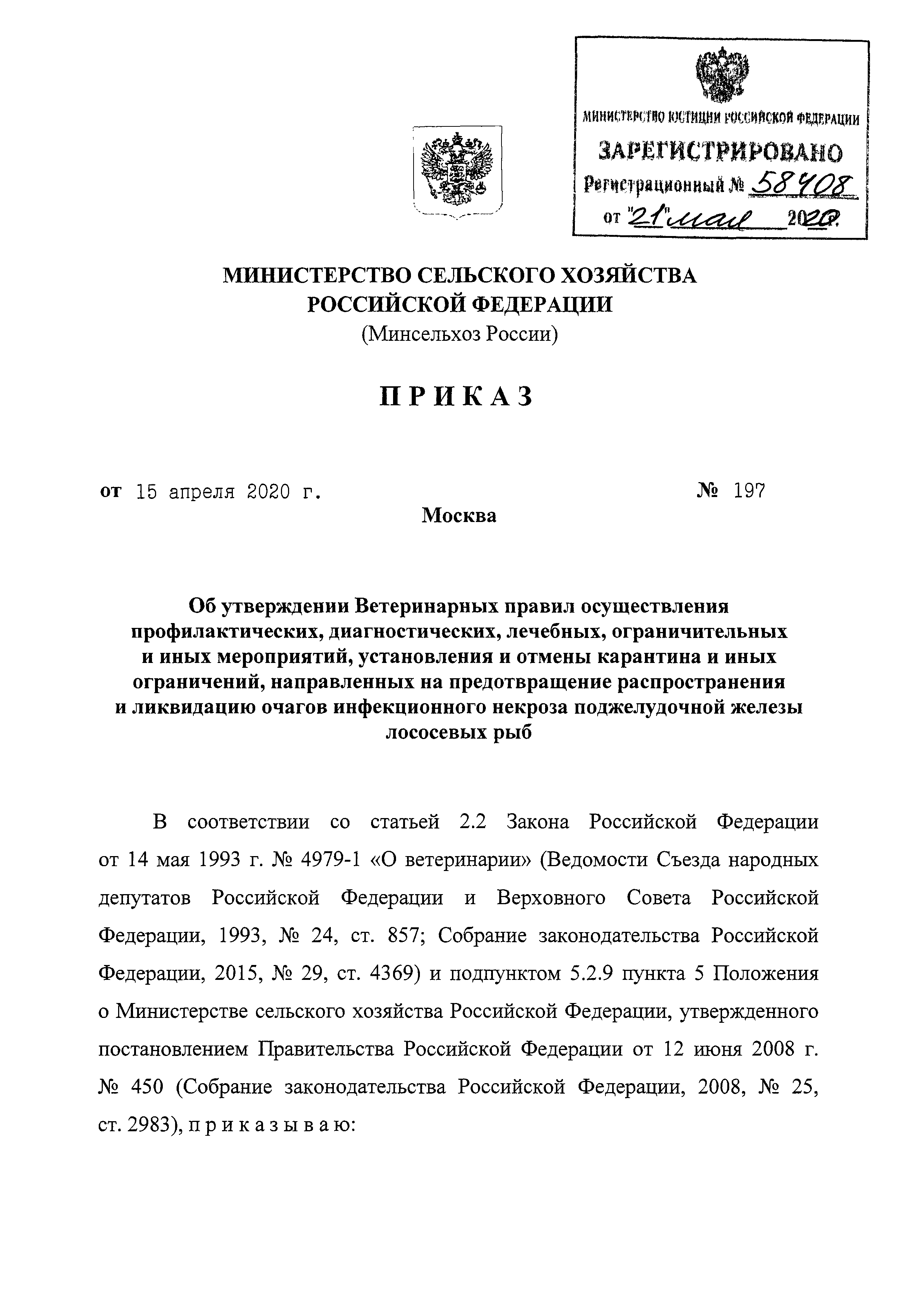 | Утверждён: | 15.04.2020 Министерство сельского хозяйства Российской Федерации (197) |