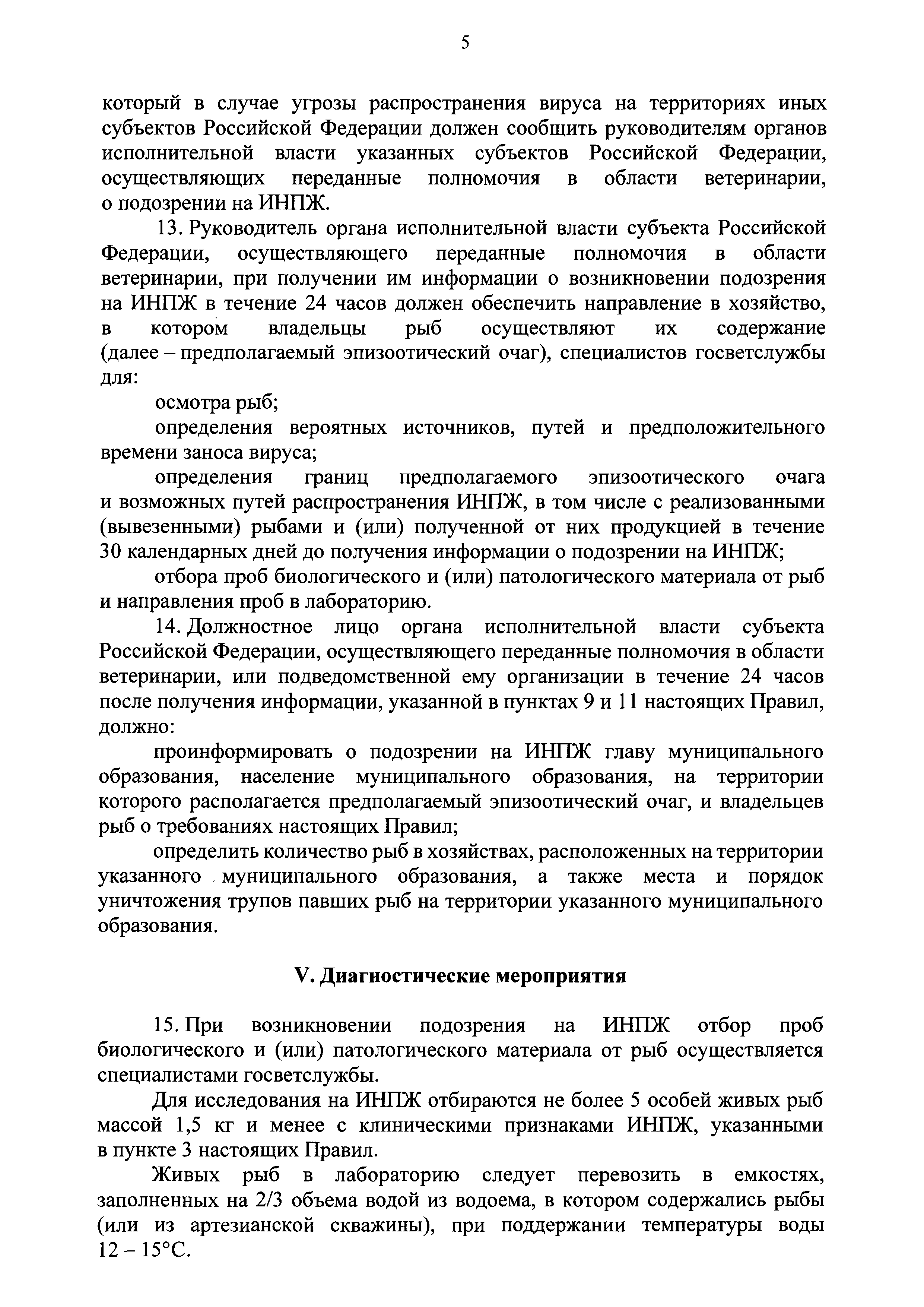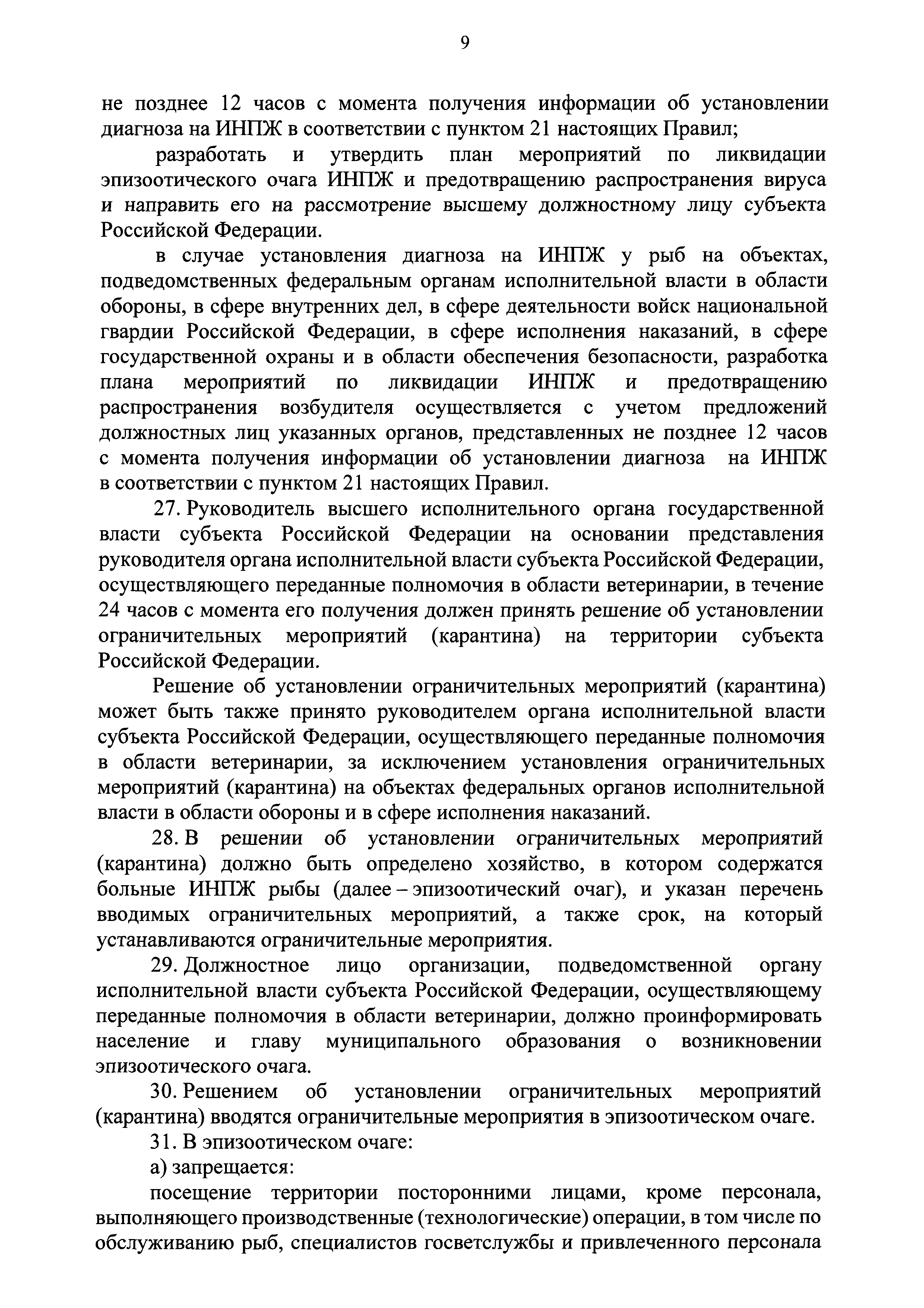 | Название рус.: | Ветеринарные правила осуществления профилактических, диагностических, лечебных, ограничительных и иных мероприятий, установления и отмены карантина и иных ограничений, направленных на предотвращение распространения и ликвидацию очагов инфекционного некроза поджелудочной железы лососевых рыб |
