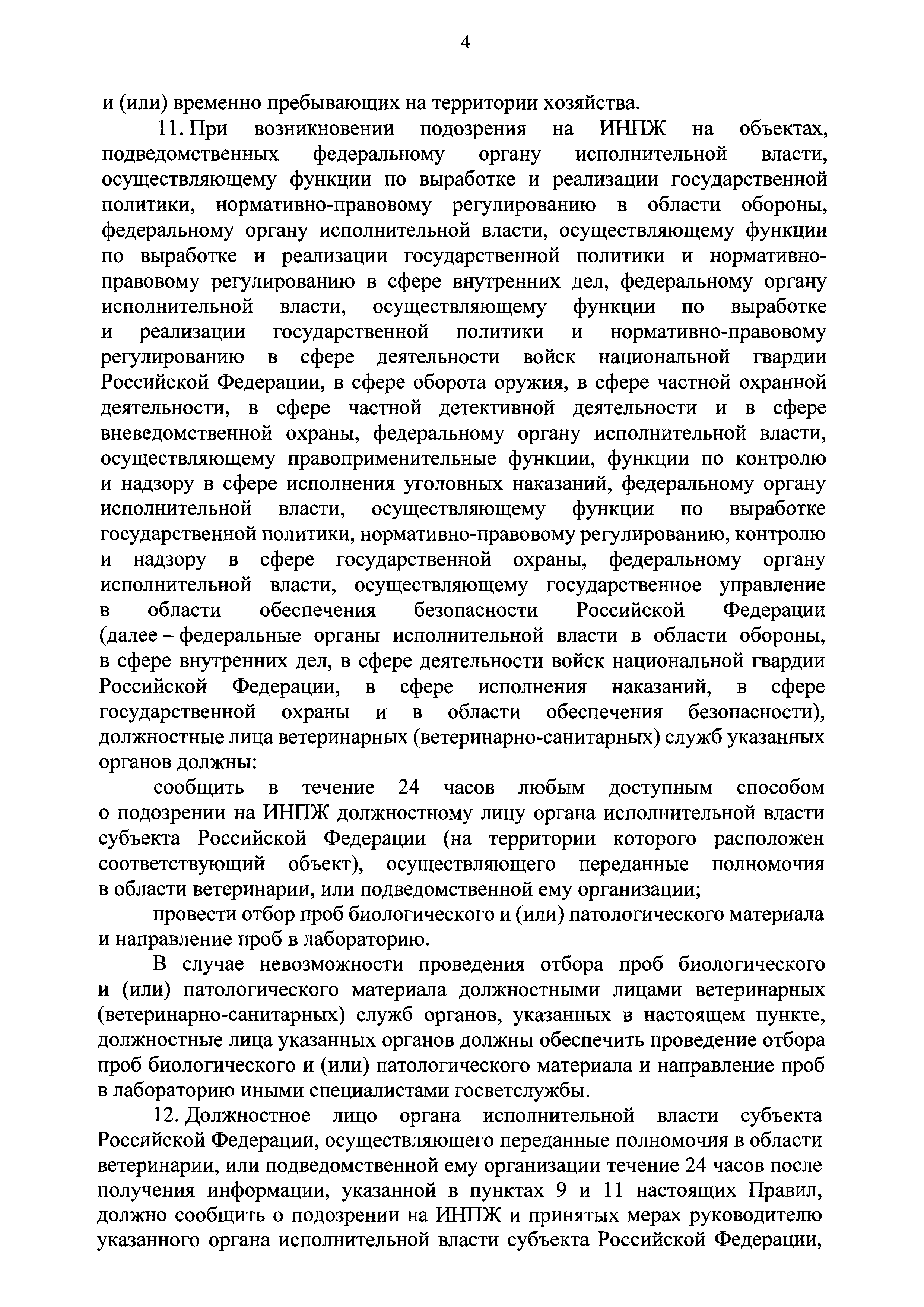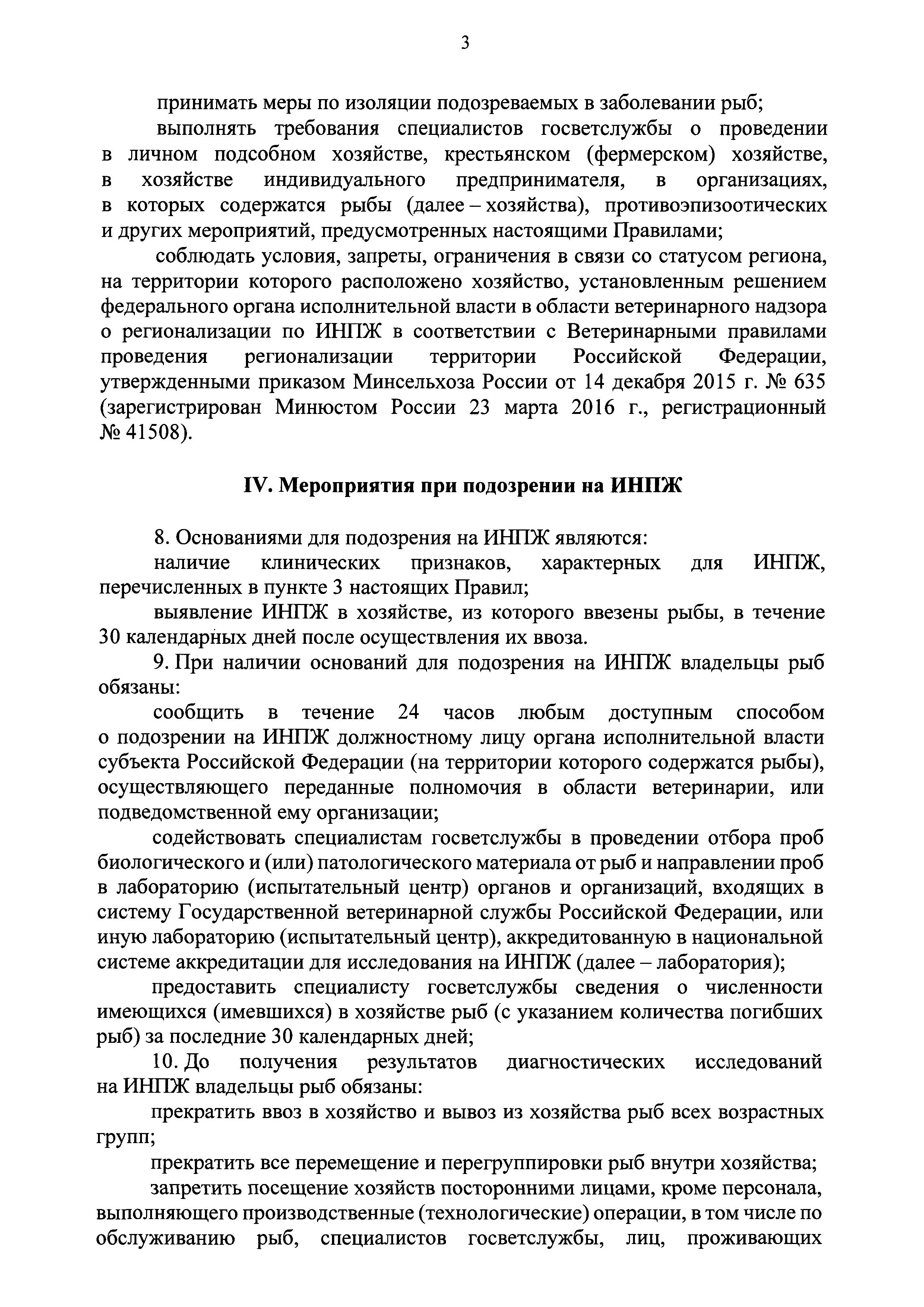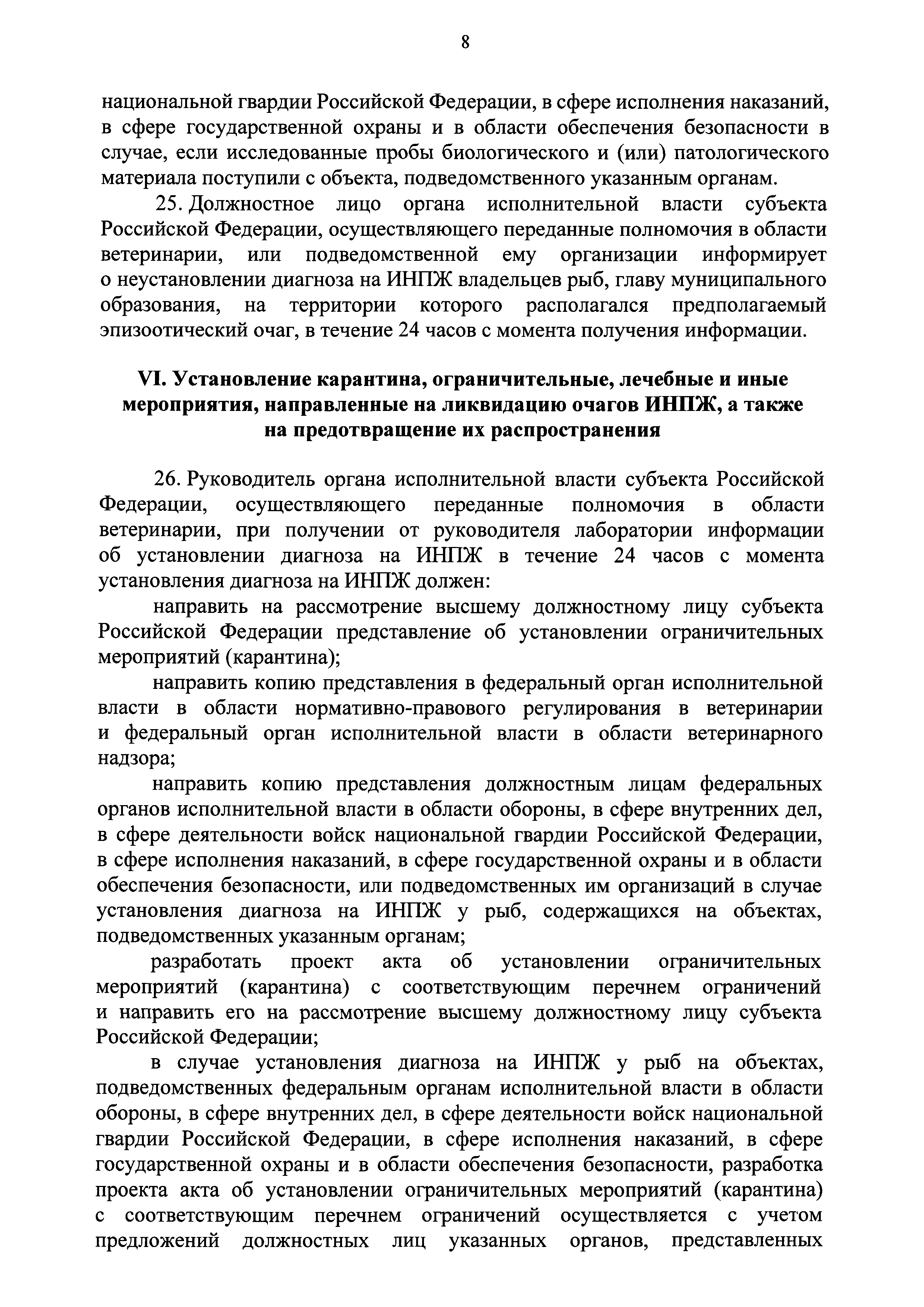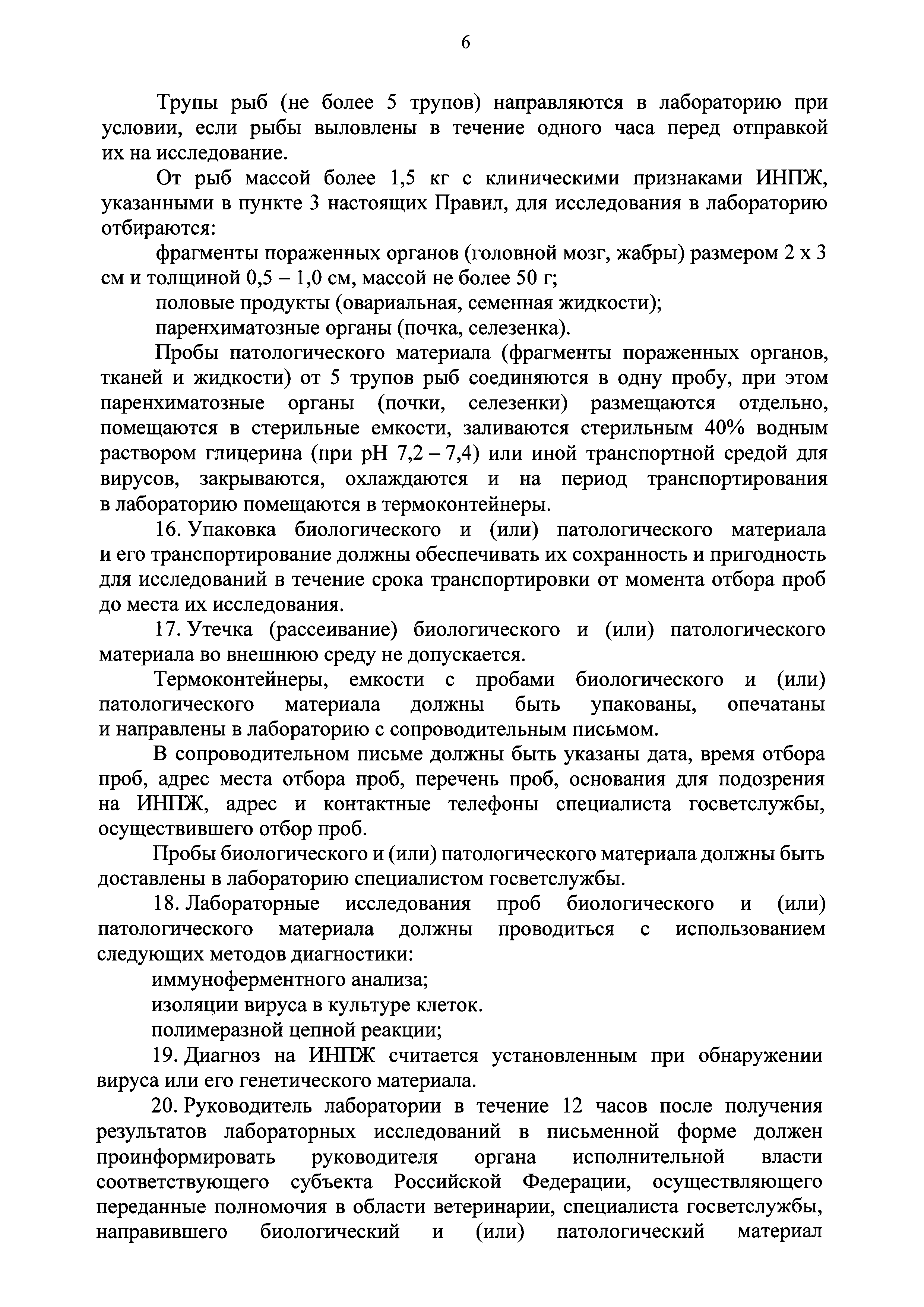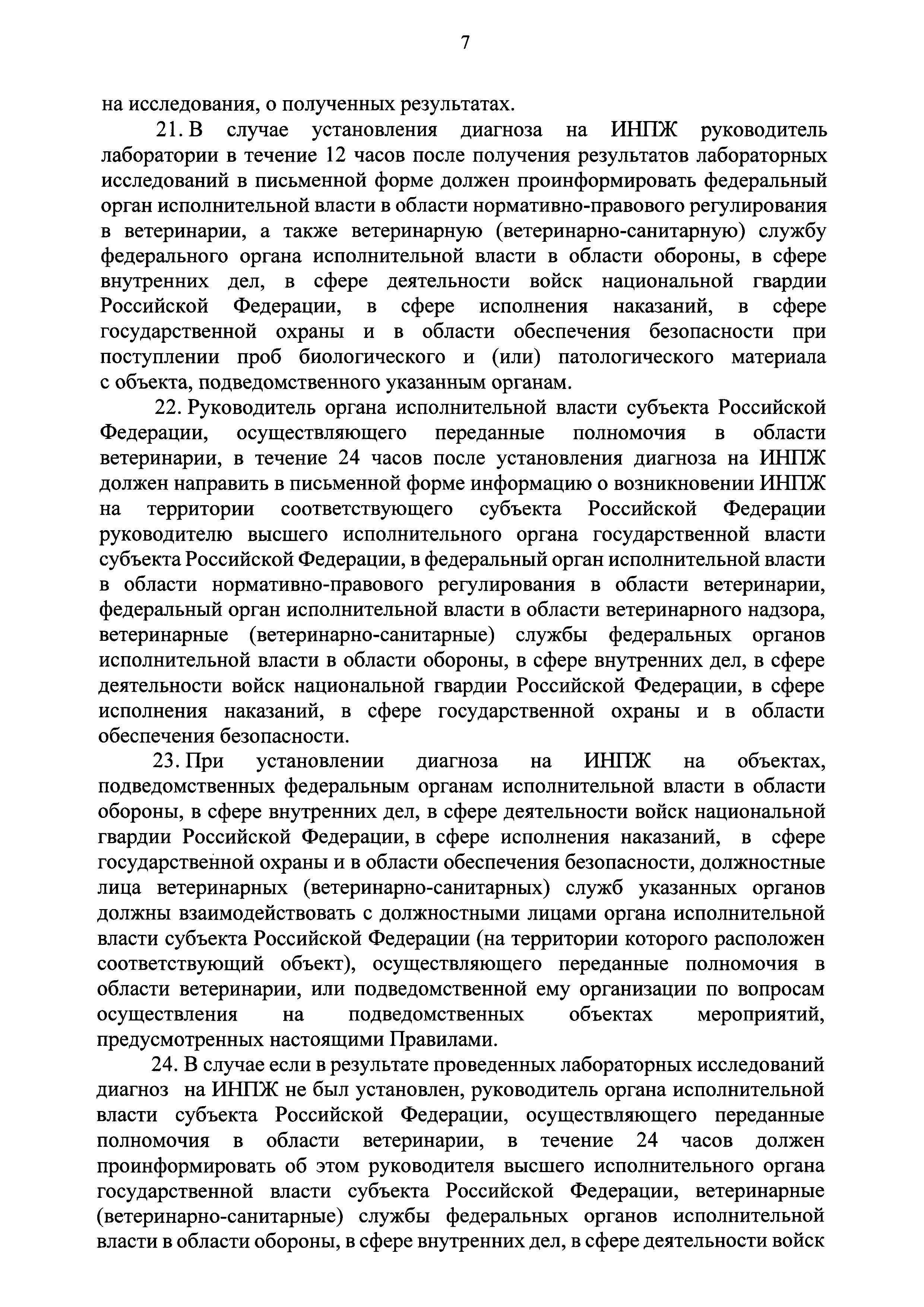 | Оглавление: | I Область применения II Общая характеристика ИНПЖ III Профилактические мероприятия IV Мероприятия при подозрении на ИНПЖ V Диагностические мероприятия VI Установление карантина, ограничительные, лечебные и иные мероприятия, направленные на ликвидацию очагов ИНПЖ, а также на предотвращение их распространения VII Отмена карантина |