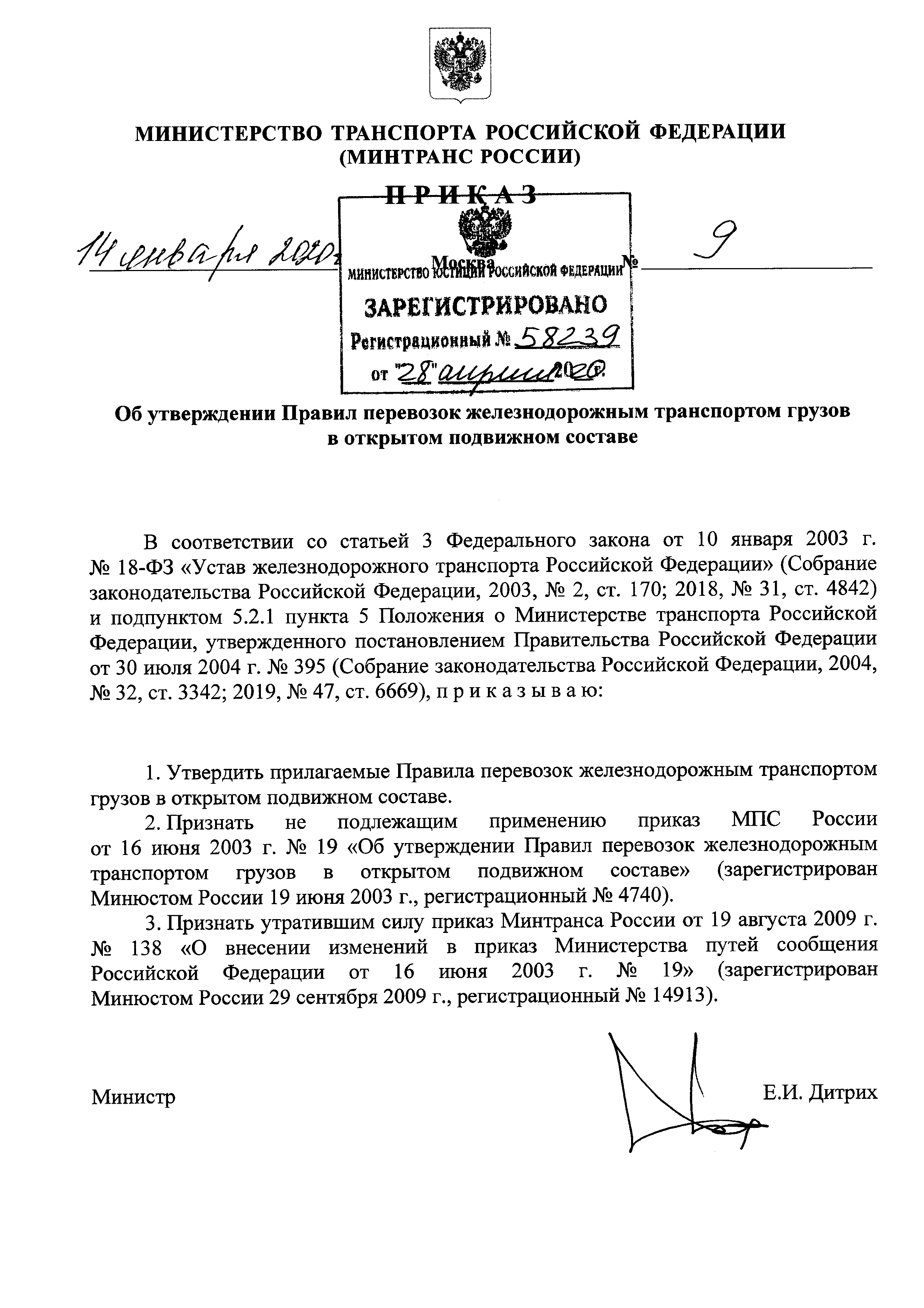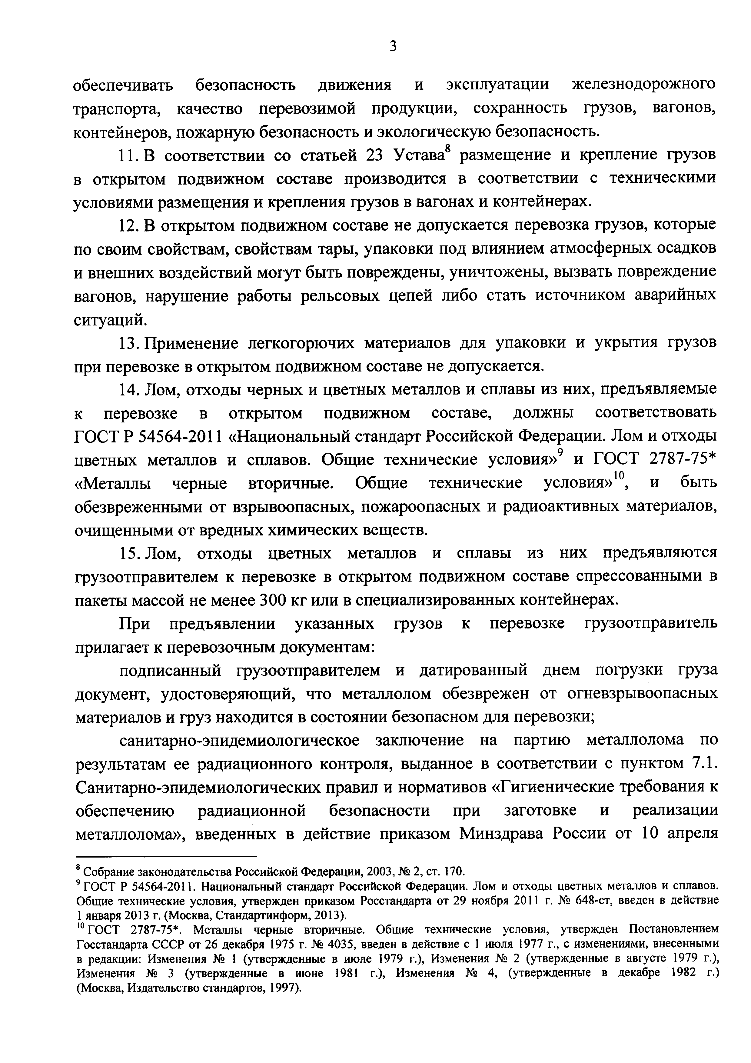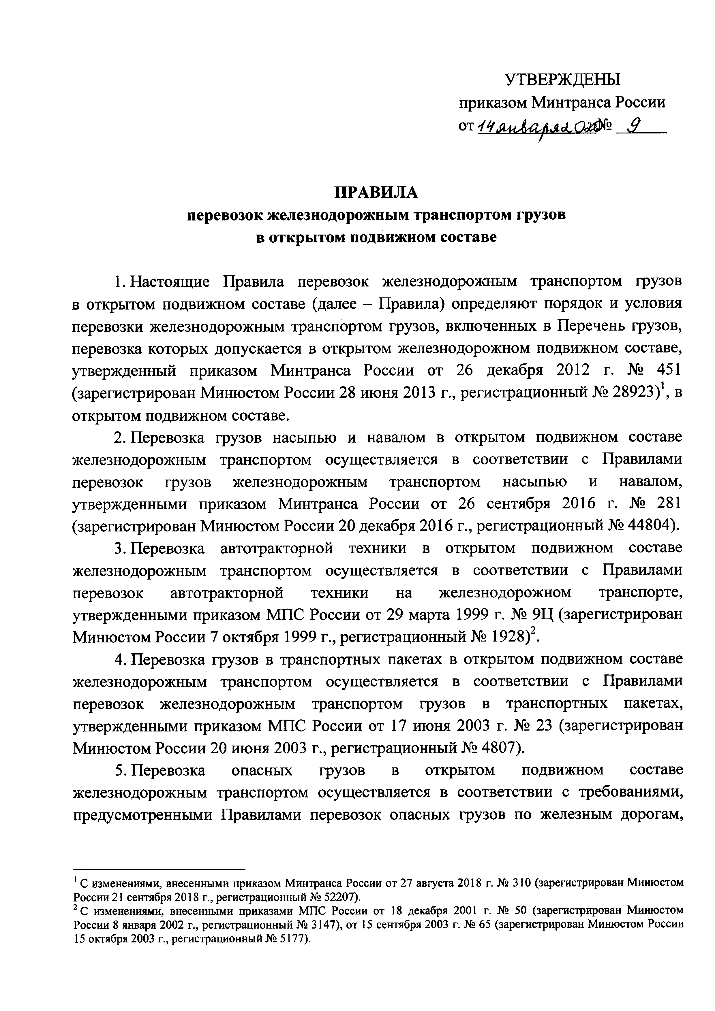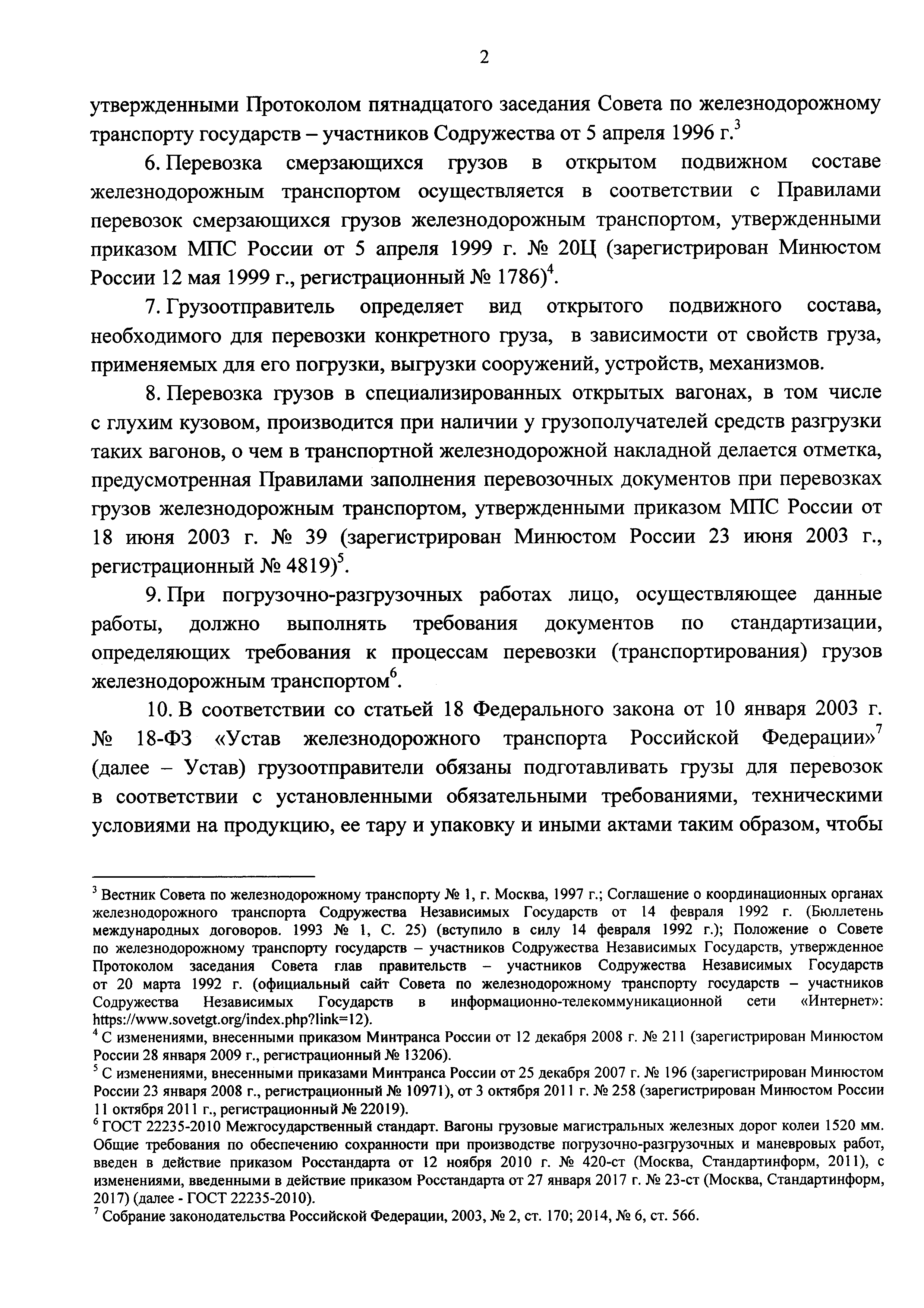 | Область применения: | Правила перевозок железнодорожным транспортом грузов в открытом подвижном составе определяют порядок и условия перевозки железнодорожным транспортом грузов, включенных в Перечень грузов, перевозка которых допускается в открытом железнодорожном подвижном составе, утвержденный приказом Минтранса России от 26 декабря 2012 г. № 451, в открытом подвижном составе |