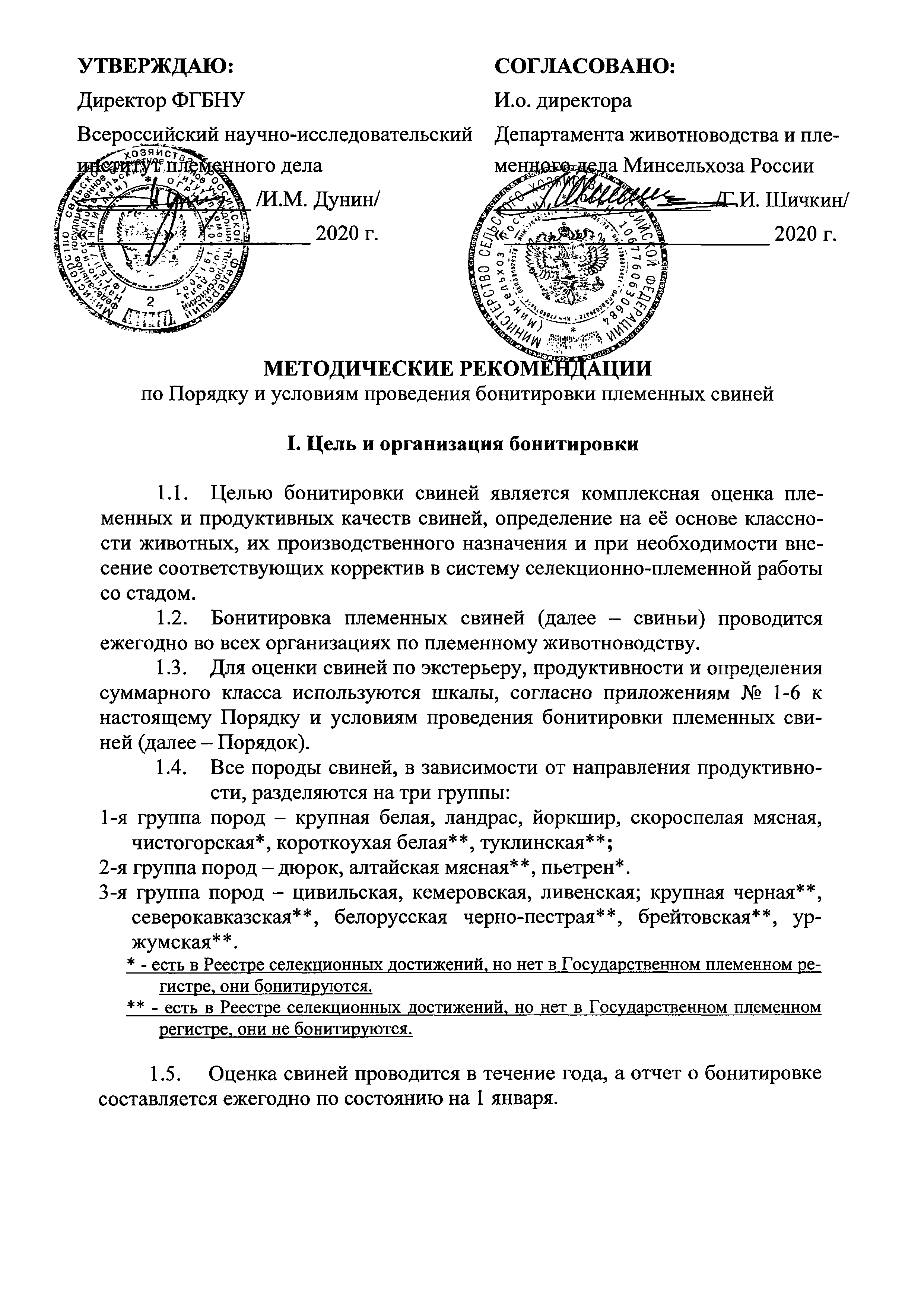 | Область применения: | Документ содержит методические рекомендации по порядку и условиям проведения бонитировки племенных свиней |
