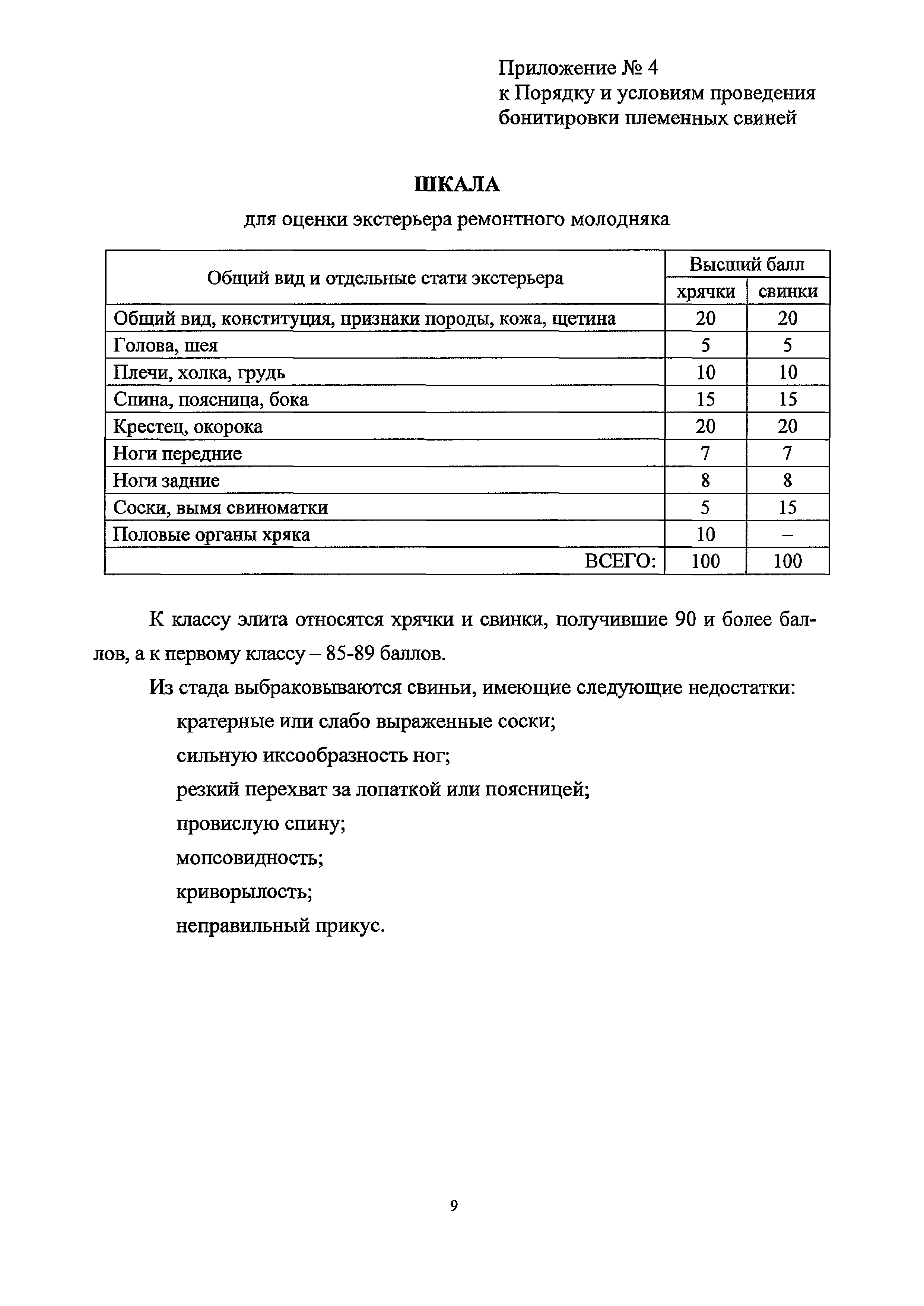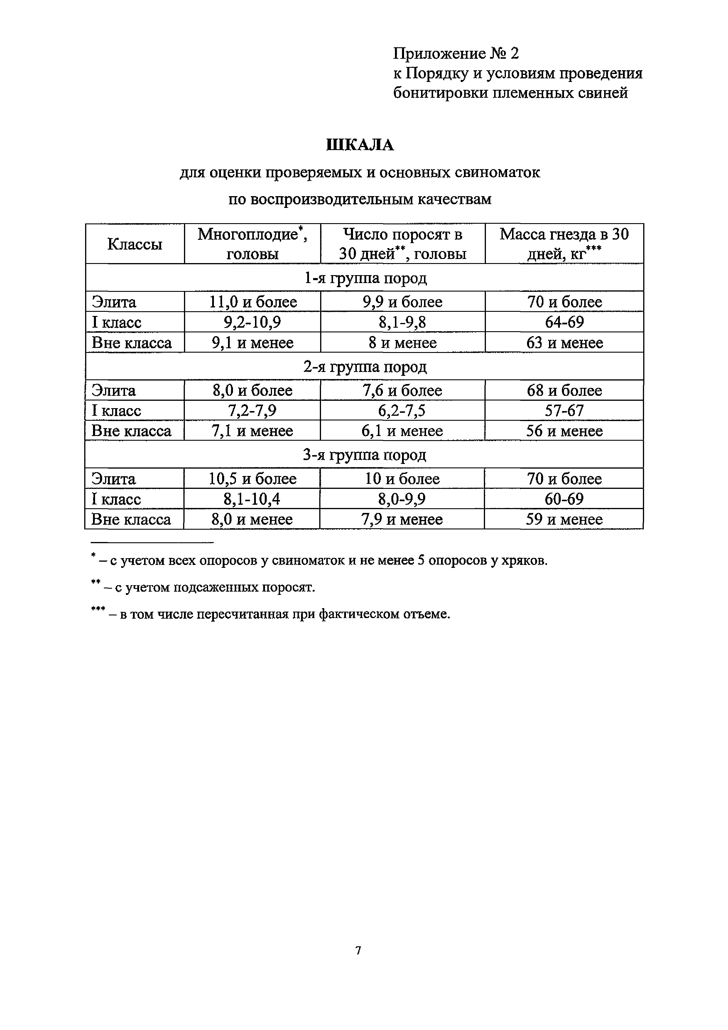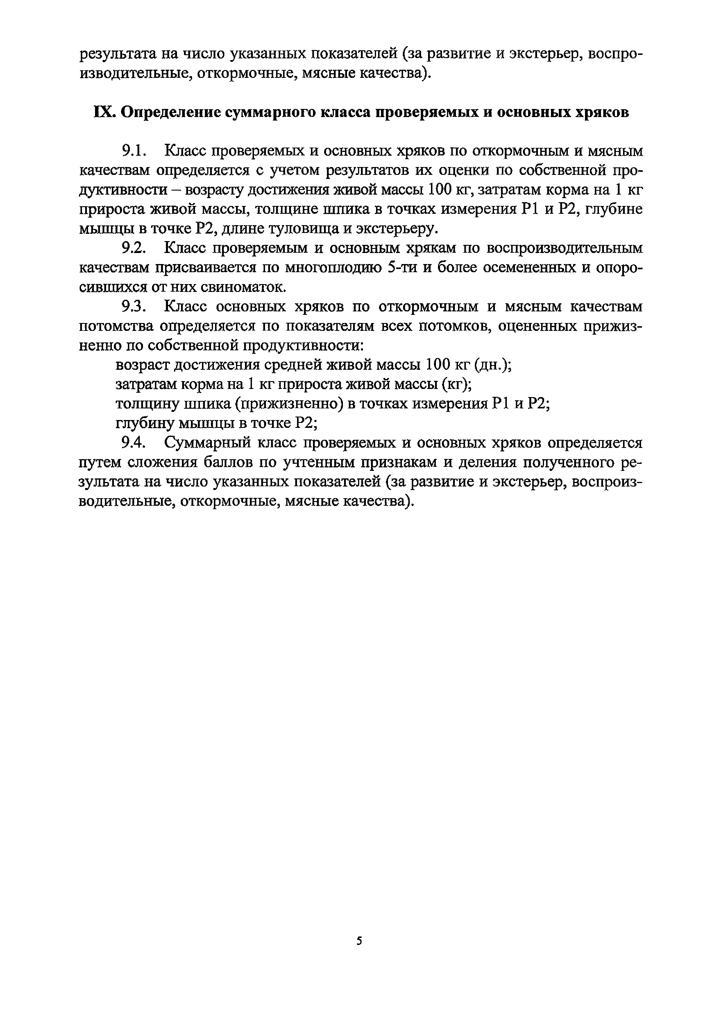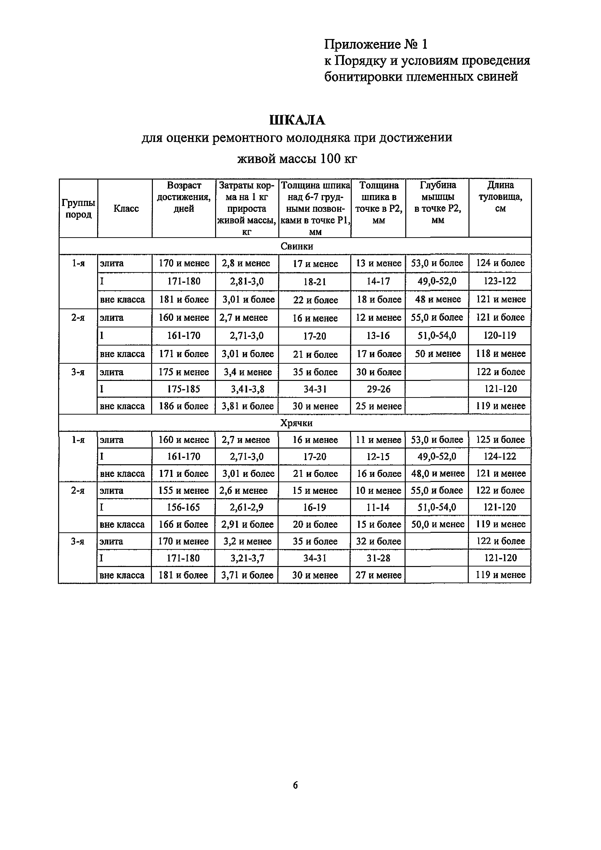 | Оглавление: | 1 Цель и организация бонитировки 2 Оценка ремонтного молодняка 3 Оценка продуктивности проверяемых и основных свиноматок 4 Оценка продуктивности проверяемых и основных хряков 5 Обработка показателей оценки свиней 6 Определение суммарного класса племенных свиней 7 Определение суммарного класса ремонтного молодняка 8 Определение суммарного класса проверяемых и основных свиноматок 9 Определение суммарного класса проверяемых и основных хряков Приложение 1. Шкала для оценки ремонтного молодняка при достижении живой массы 100 кг Приложение 2. Шкала для оценки проверяемых и основных свиноматок по воспроизводительным качествам Приложение 3. Шкала для оценки проверяемых и основных хряков и свиноматок по откормочным и мясным качествам потомства Приложение 4. Шкала для оценки экстерьера ремонтного молодняка Приложение 5. Шкала для оценки суммарного класса по среднему баллу Приложение 6. Поправочные коэффициенты для пересчета живой массы гнезда при отъеме в 30 дней |