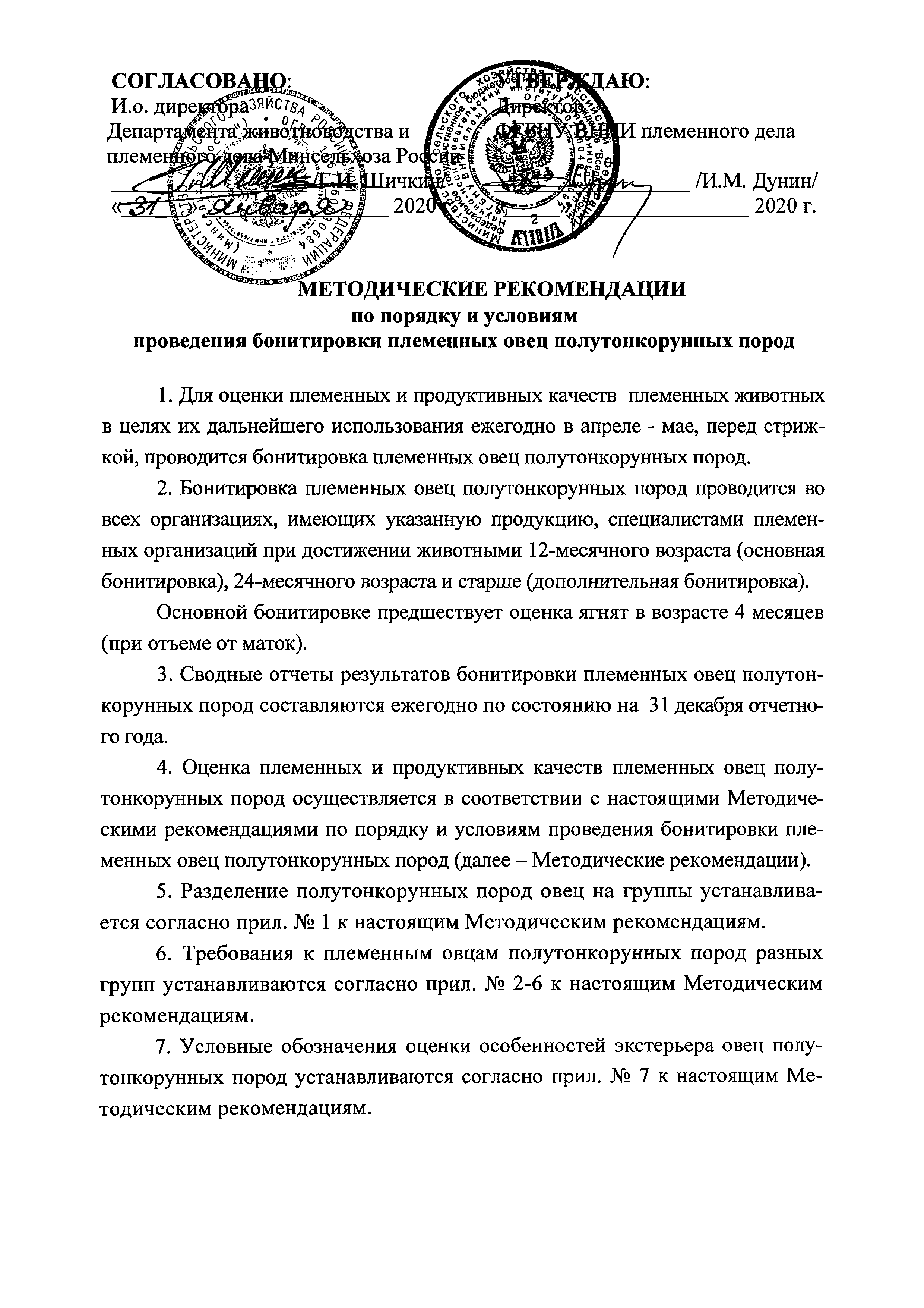 | Принят: | 31.01.2020 Департамент животноводства и племенного дела Минсельхоза России (Department of Animal Husbandry and Breeding, Russian Federation Minselkhoz )